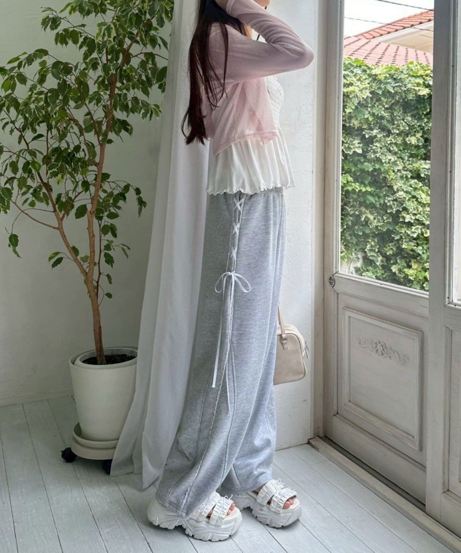 ・デニムやスウェットパンツと合わせてカジュアルにまとめるのもかわいいです。