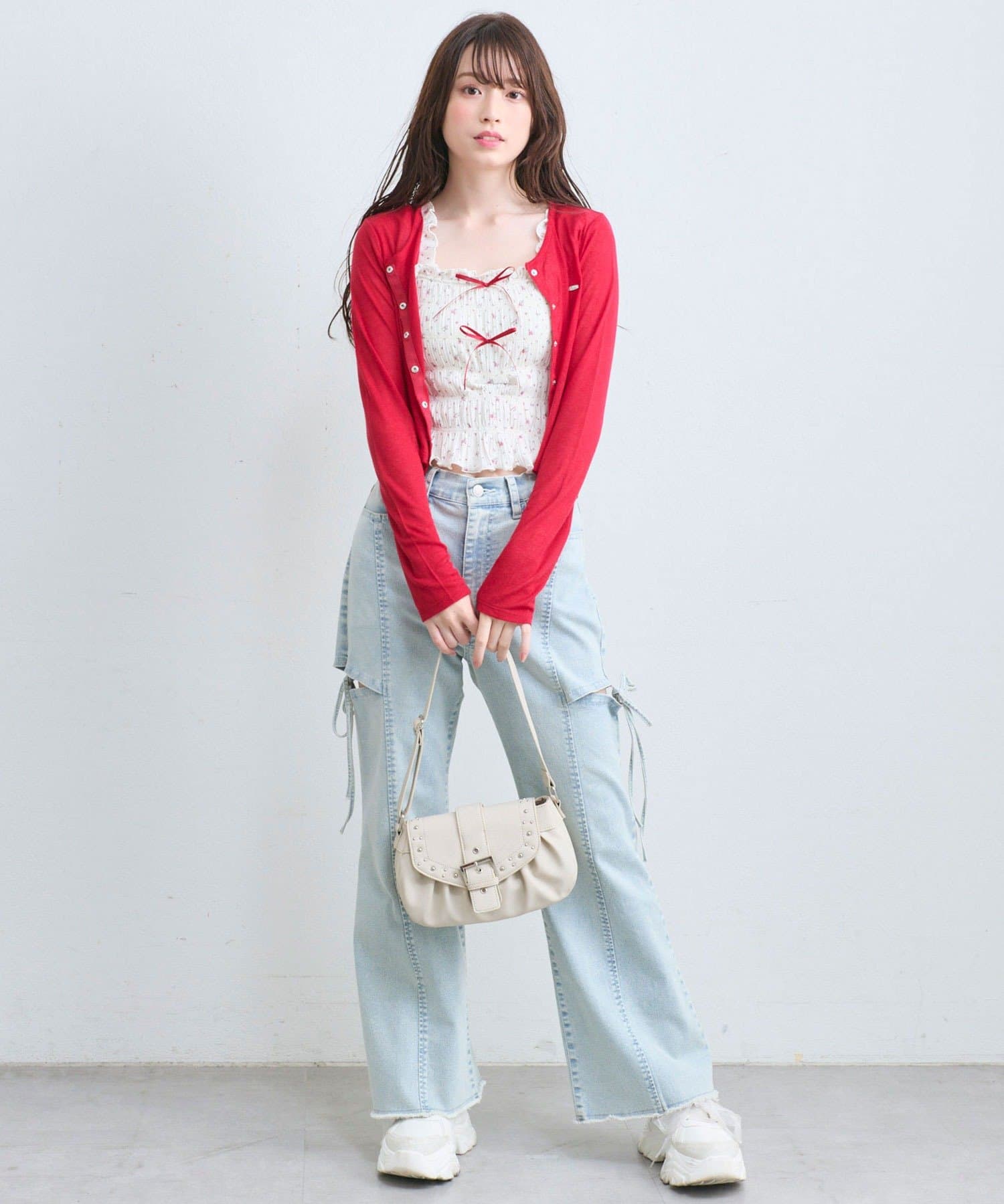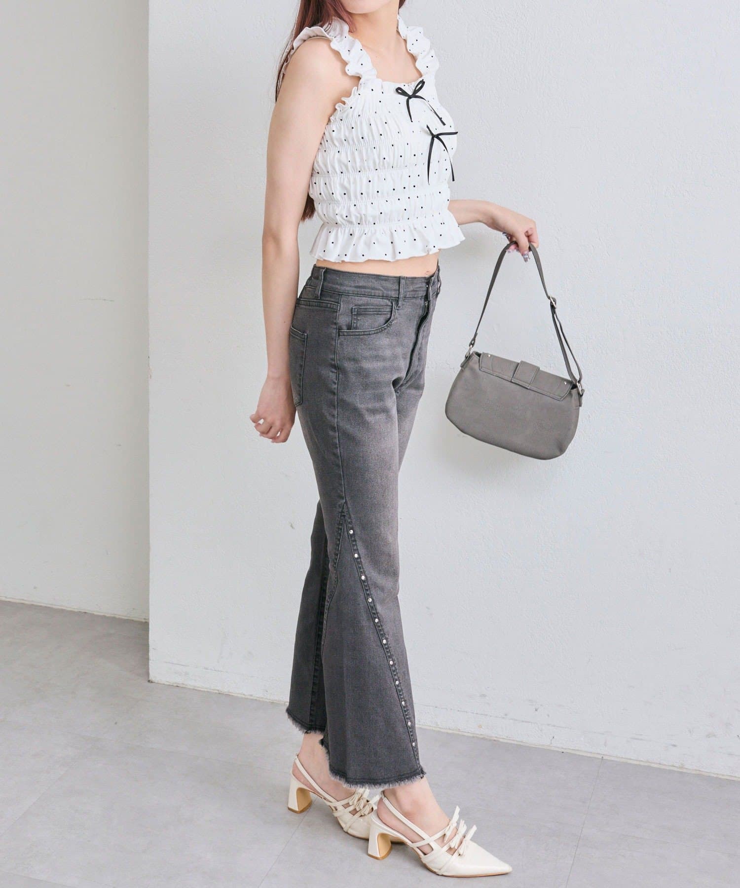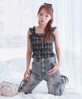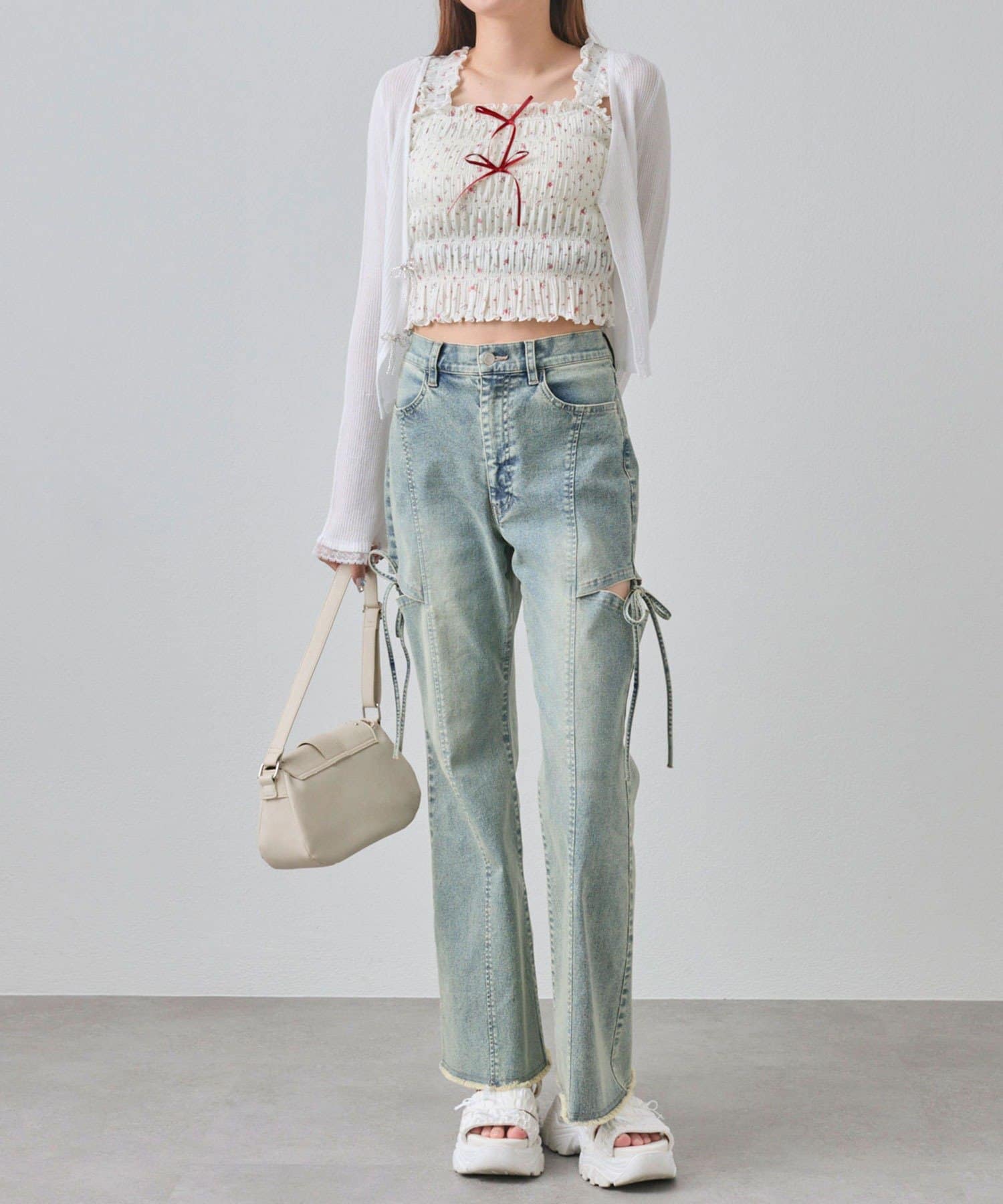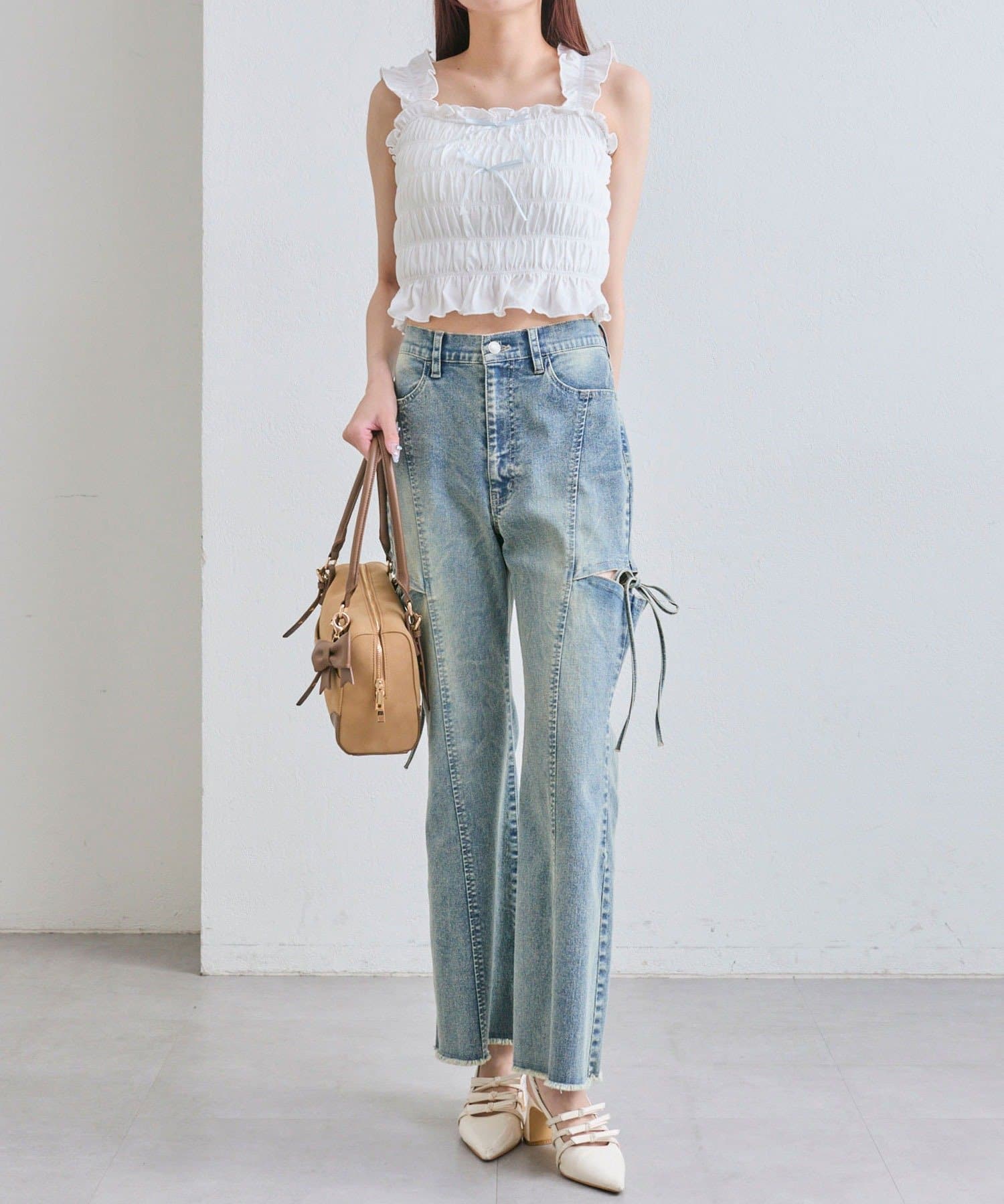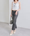 ・デニムパンツを合わせてカジュアルガーリーな着こなしがおすすめ。