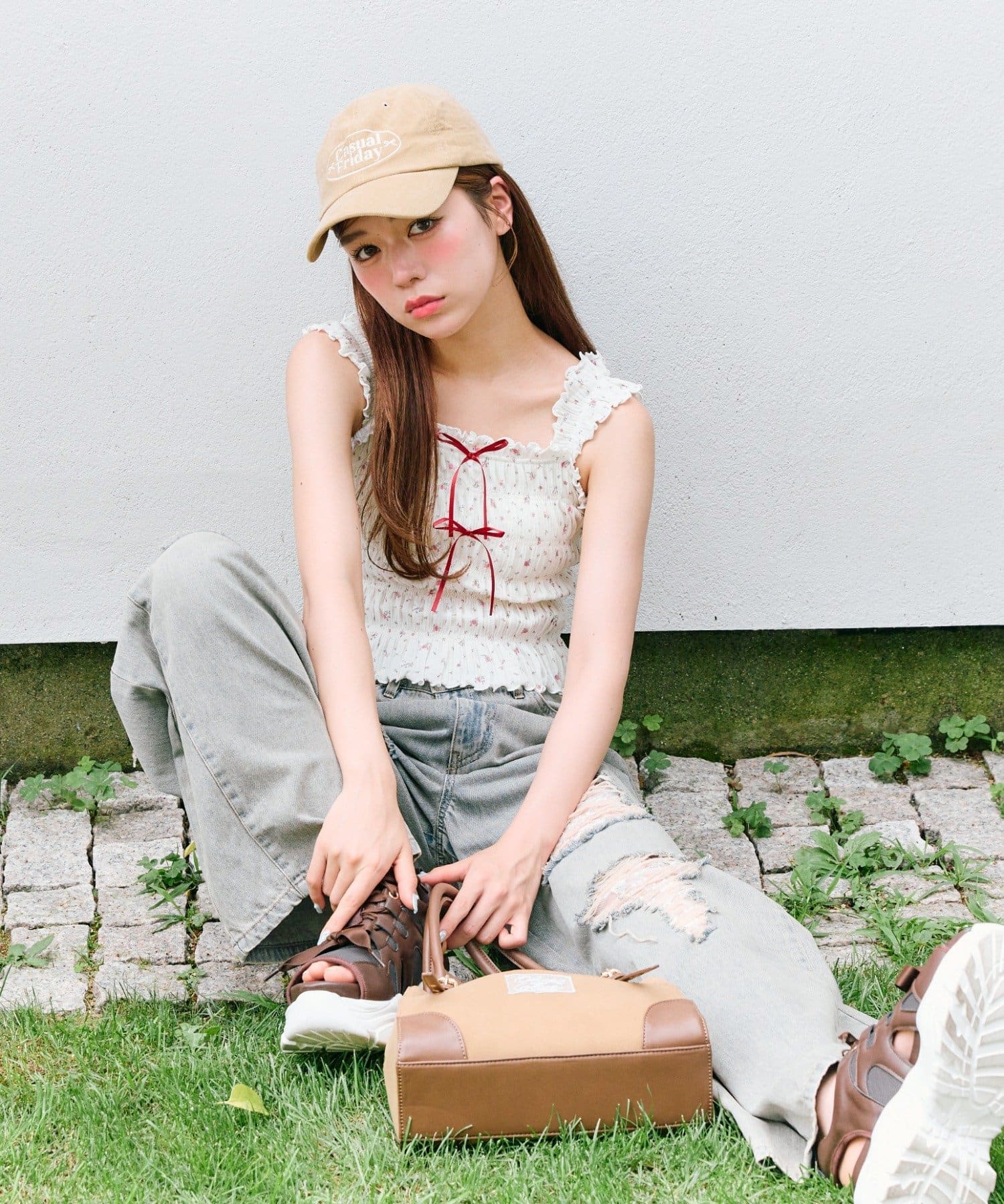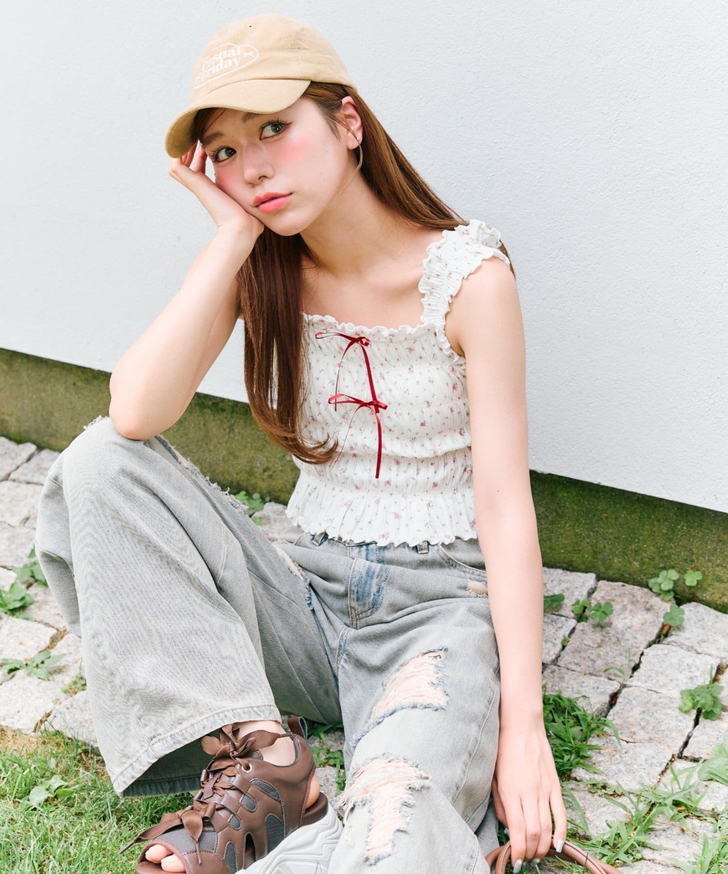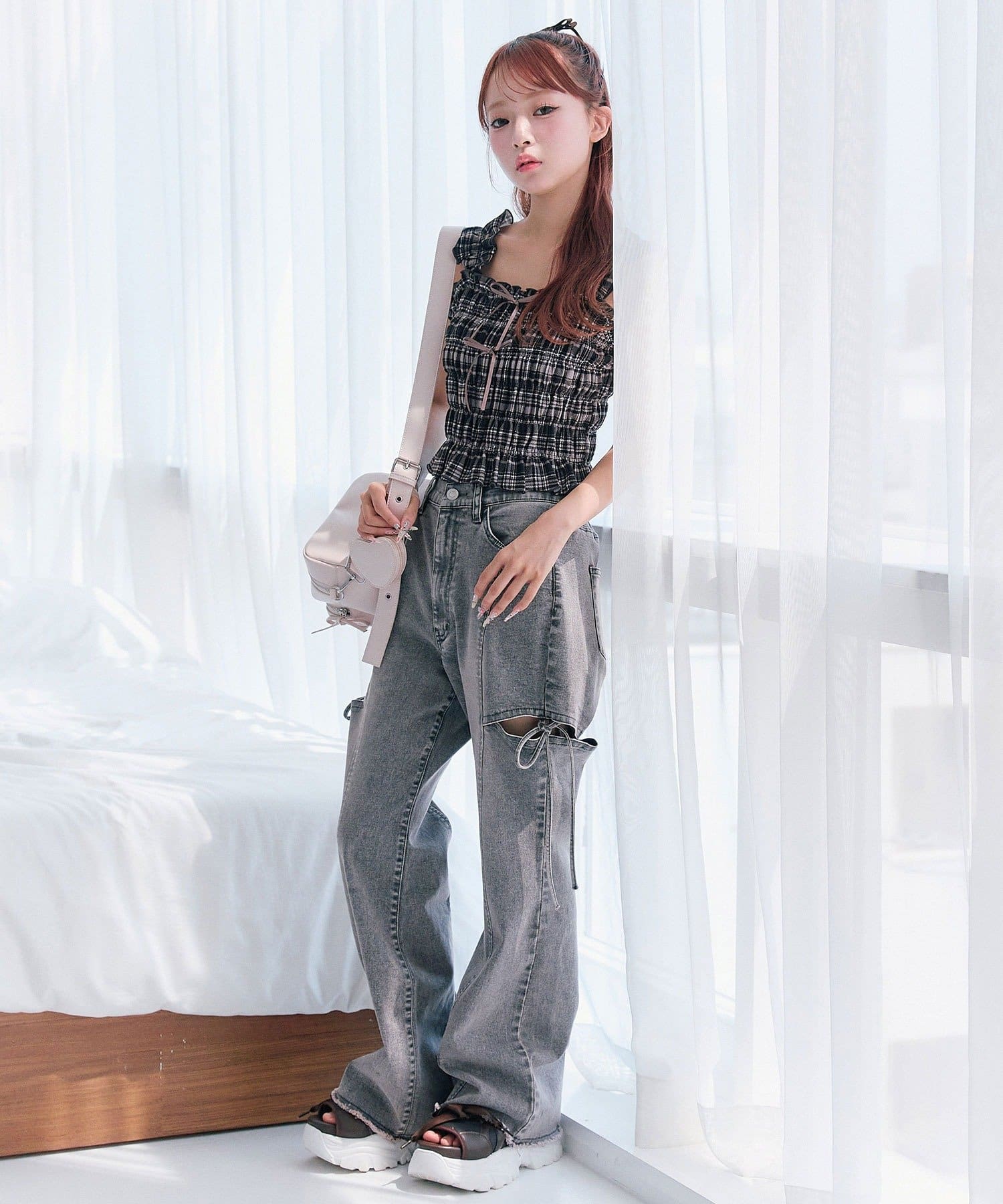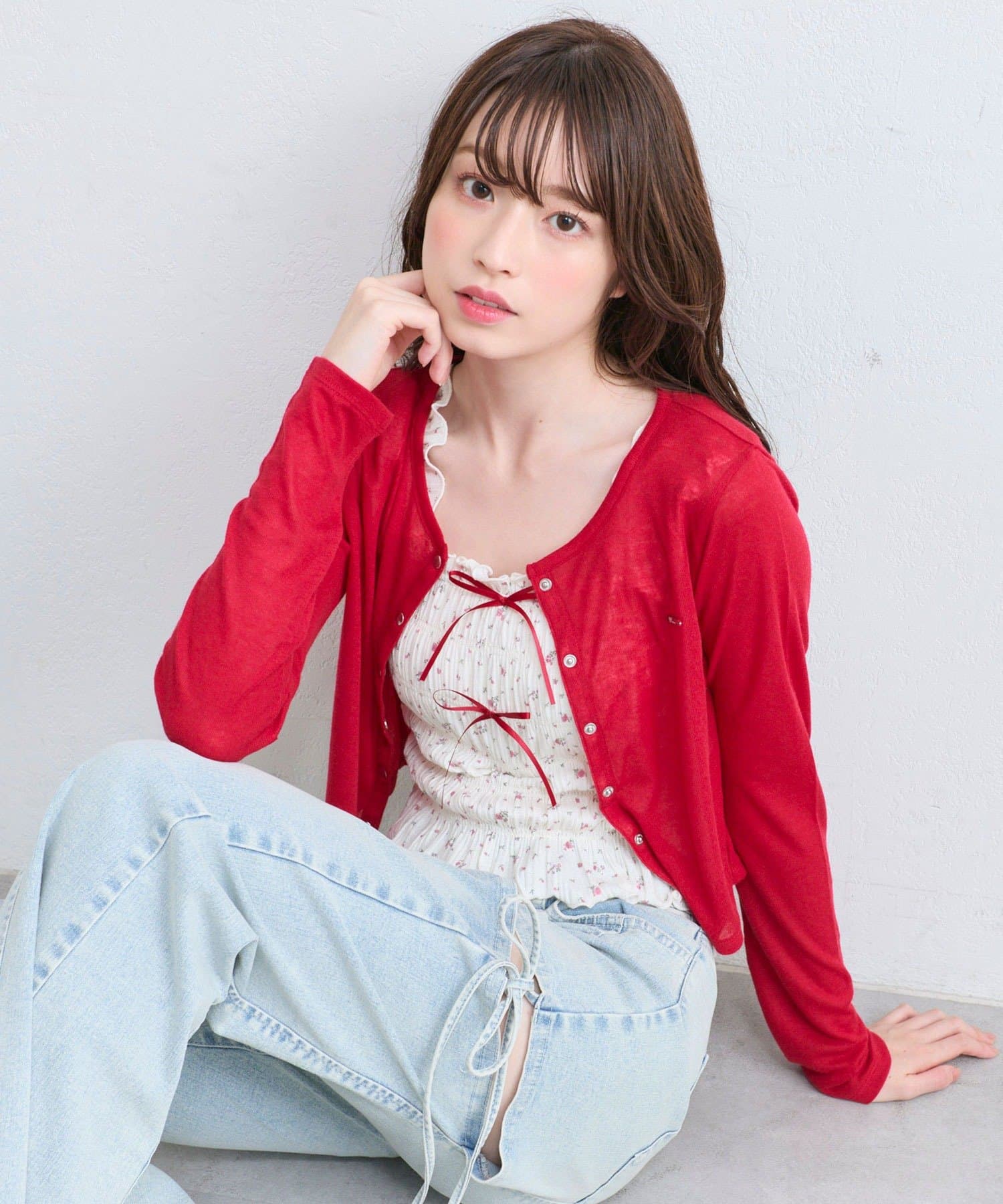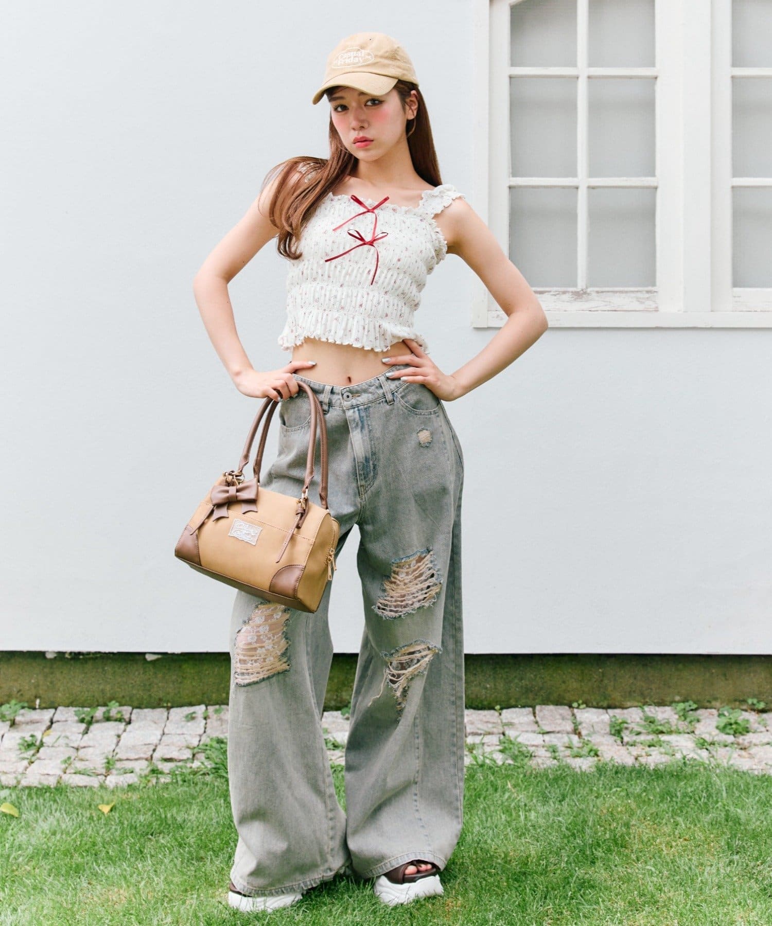 ・デニムパンツを合わせてカジュアルガーリーな着こなしがおすすめ。