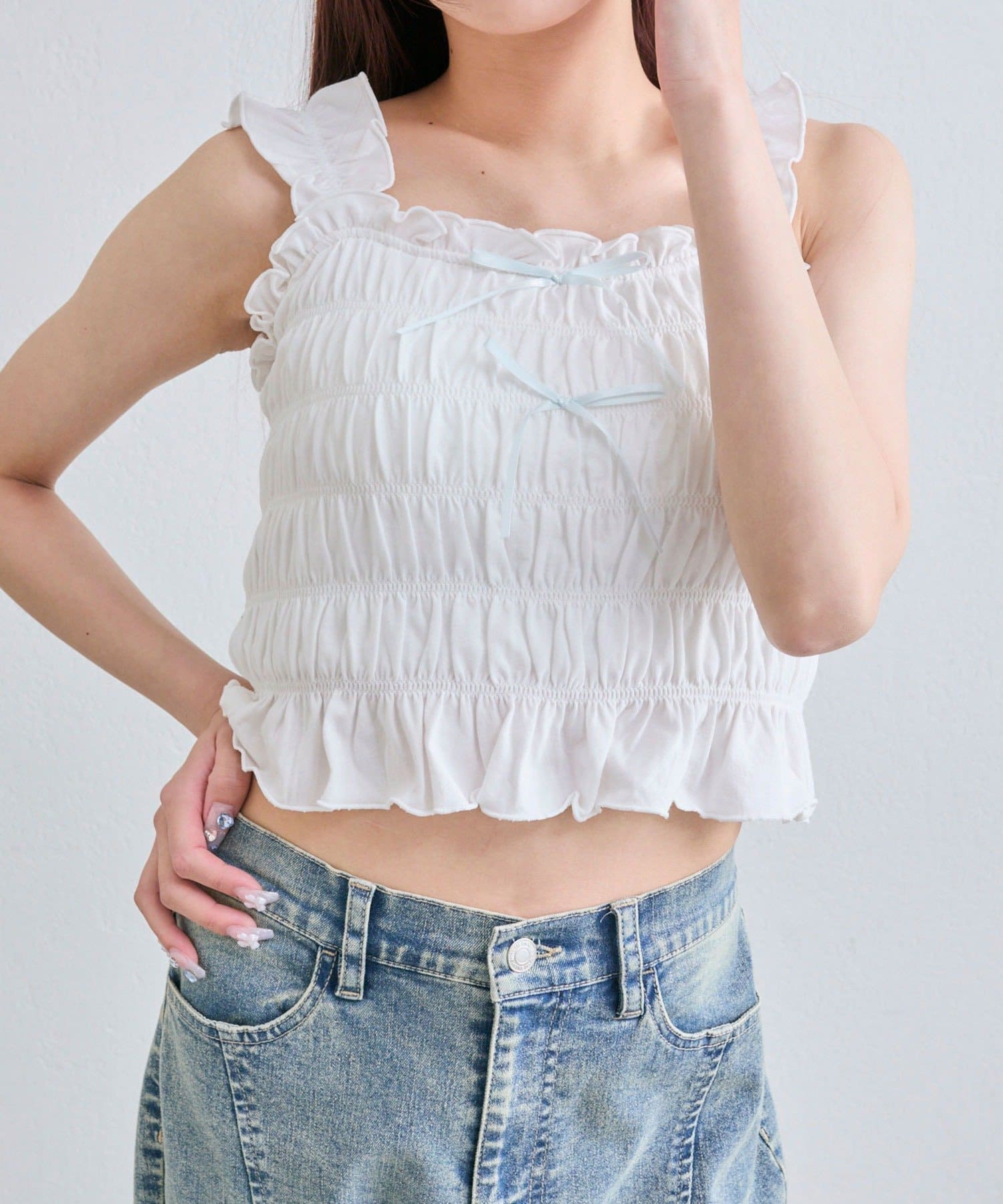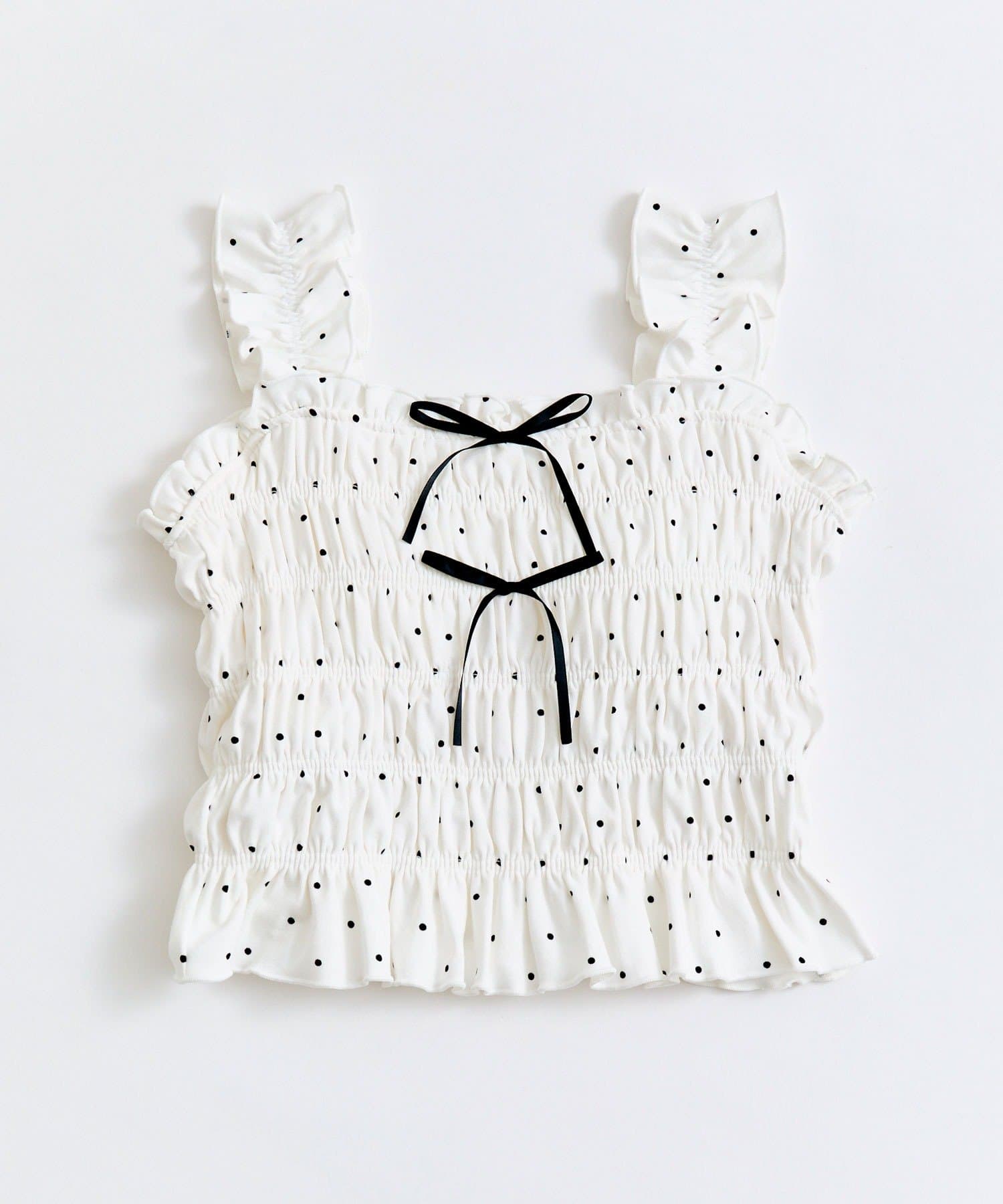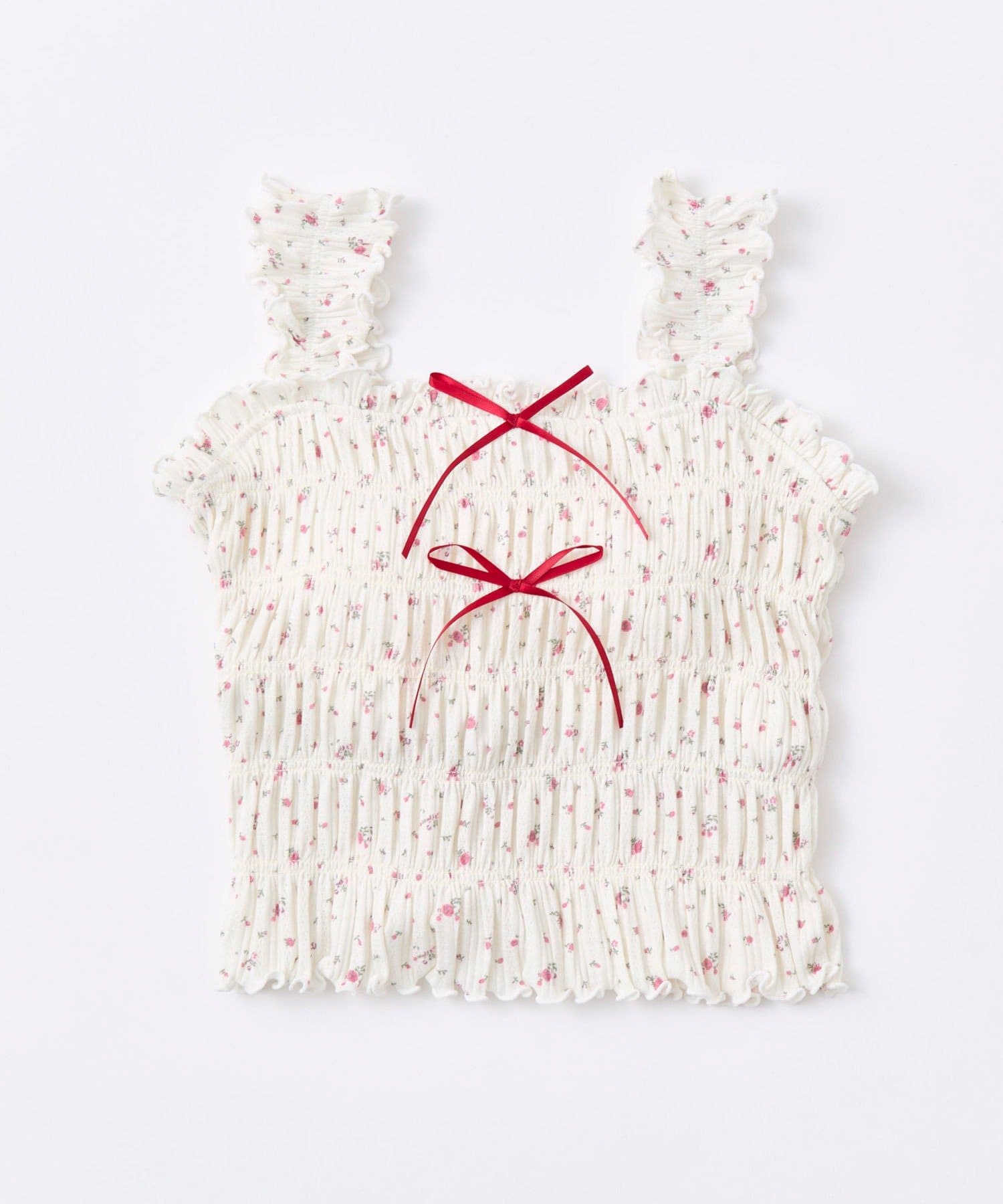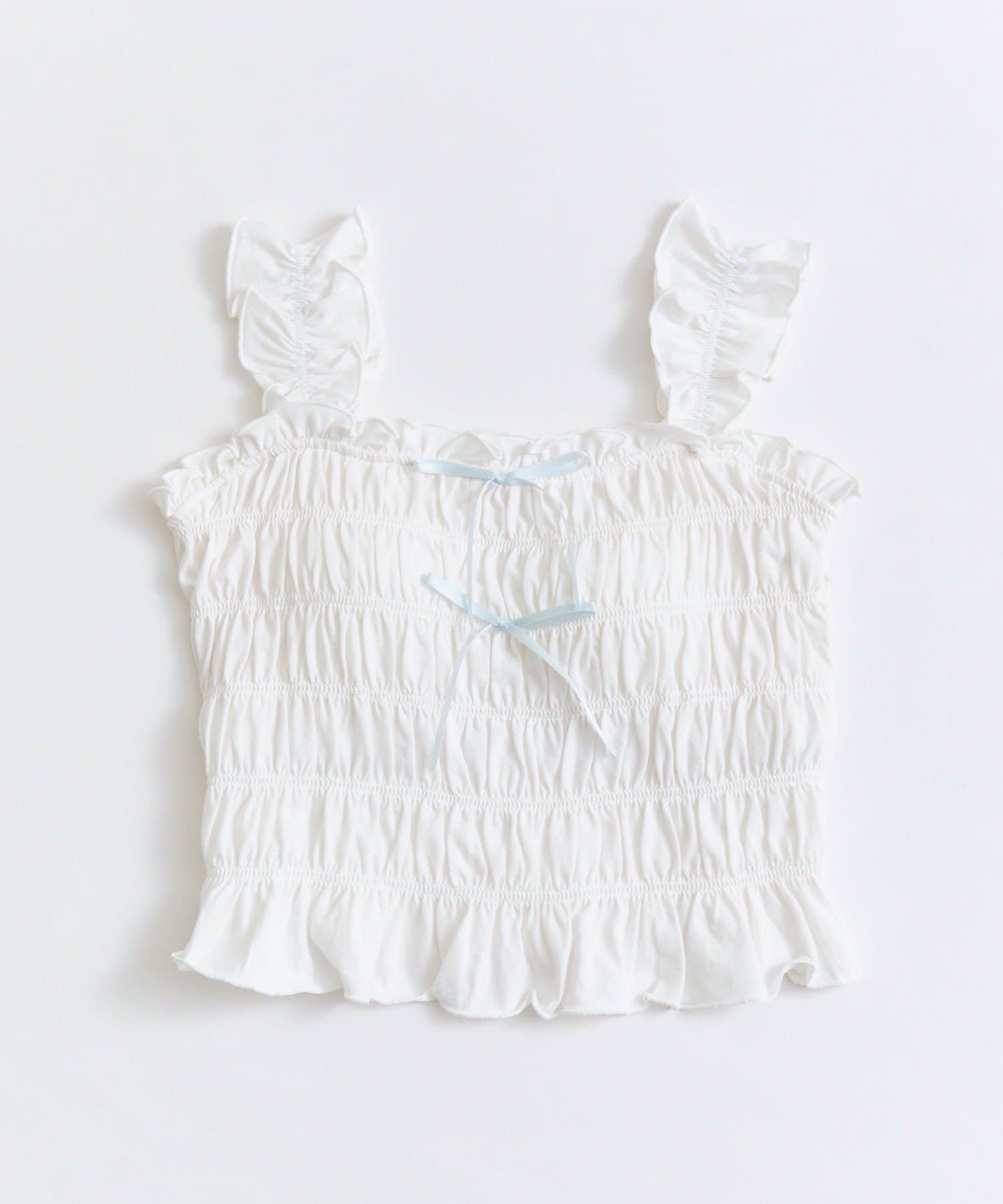 肩フリルシャーリングキャミ