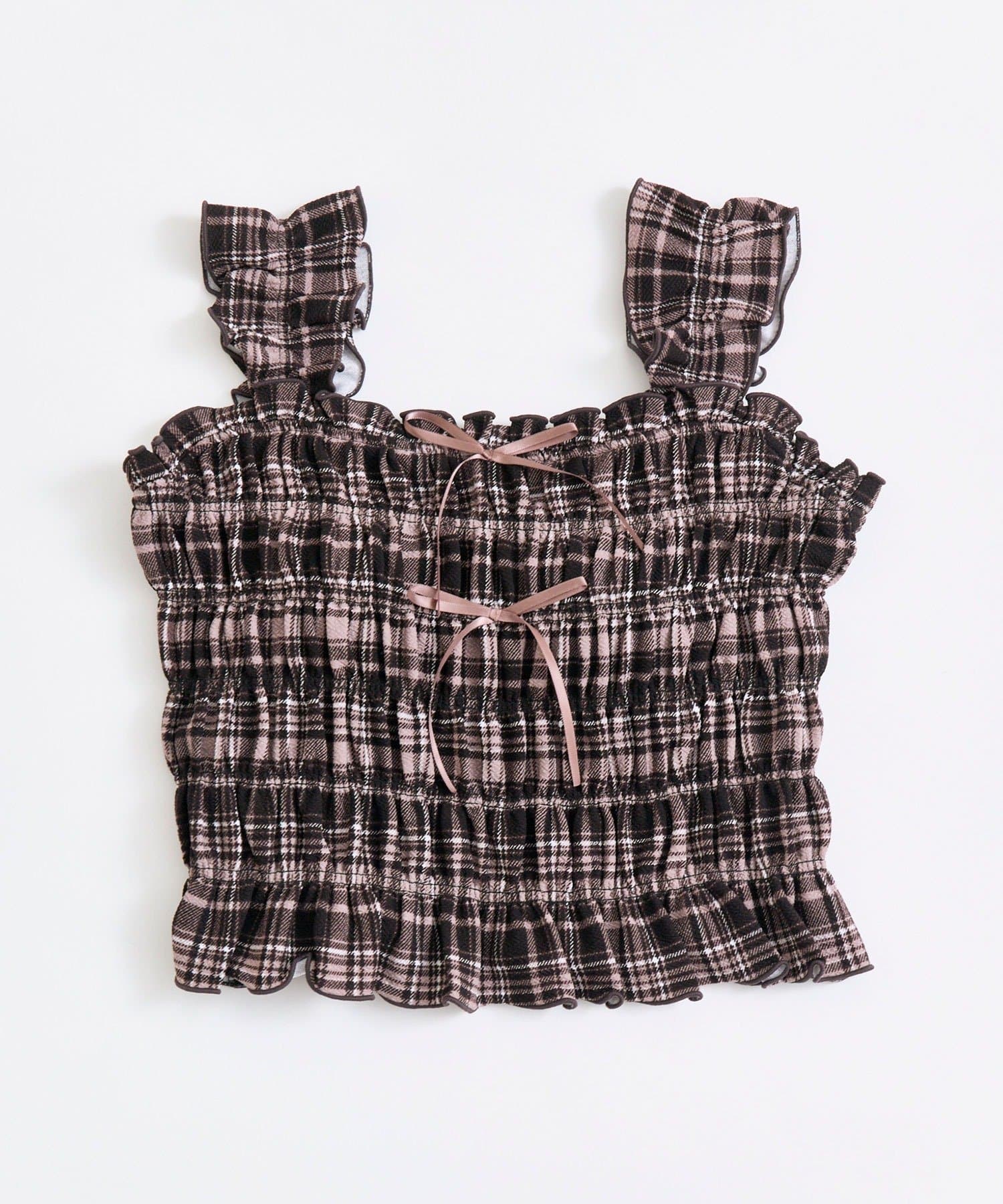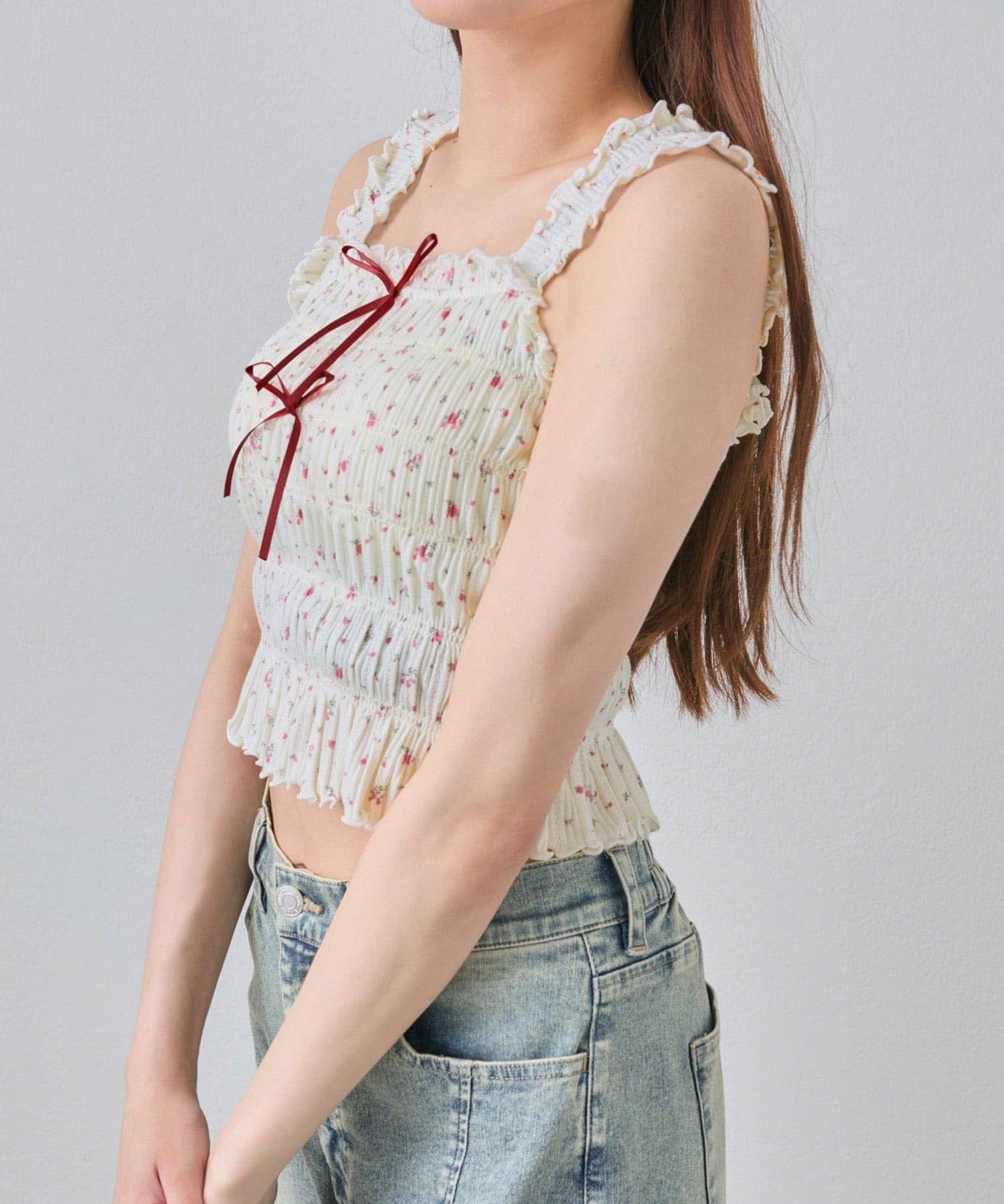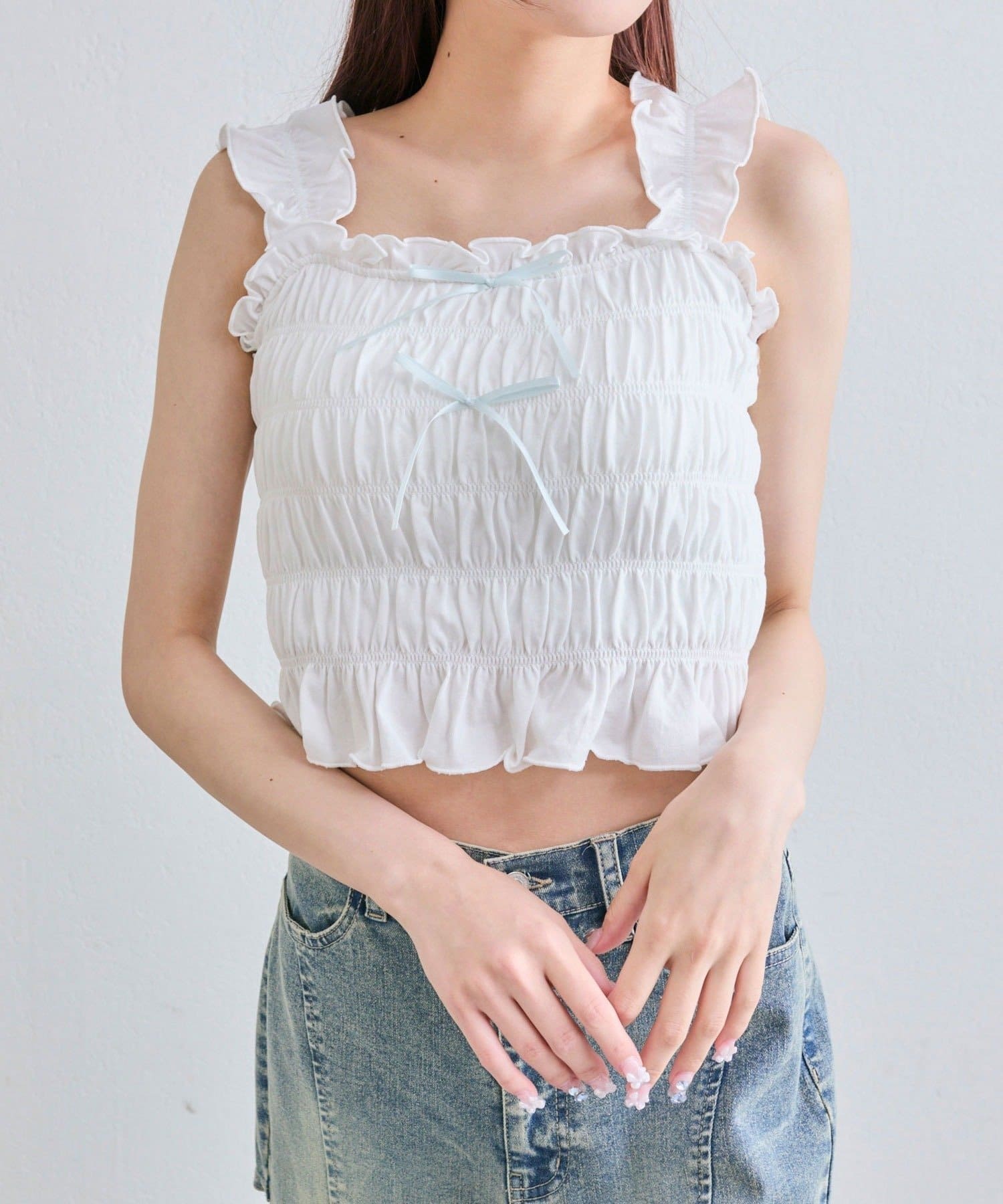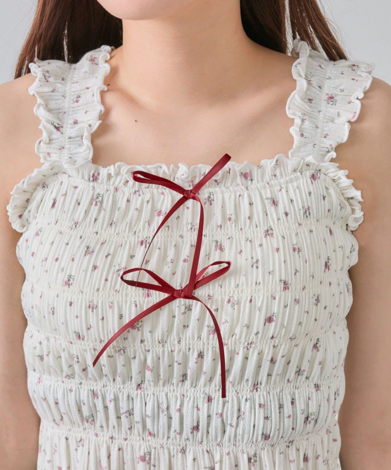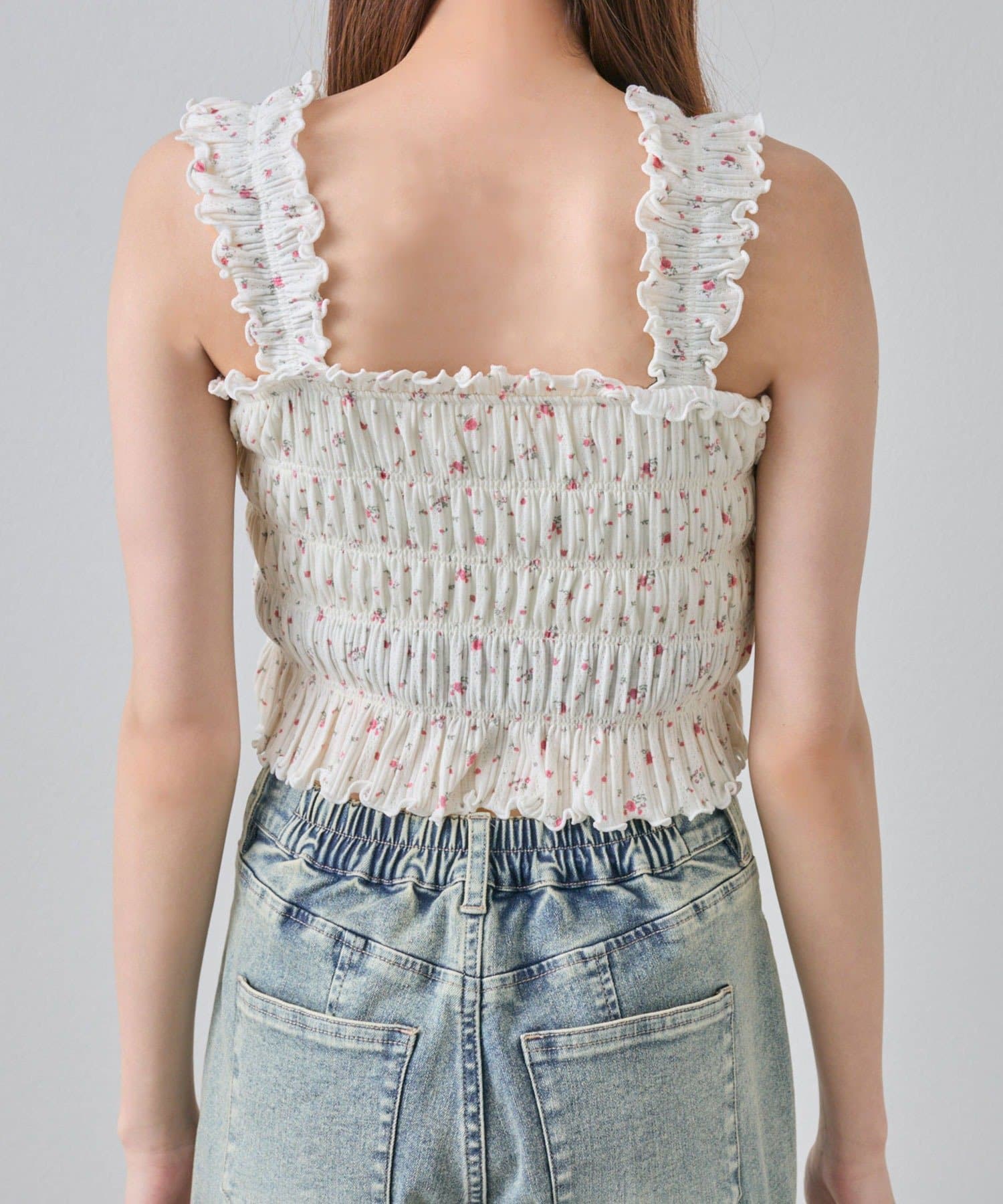肩フリルシャーリングキャミ