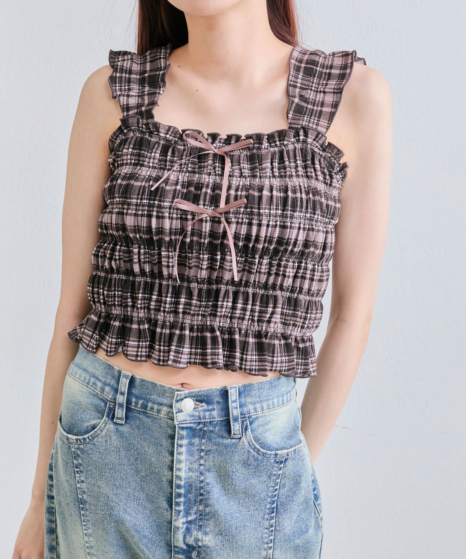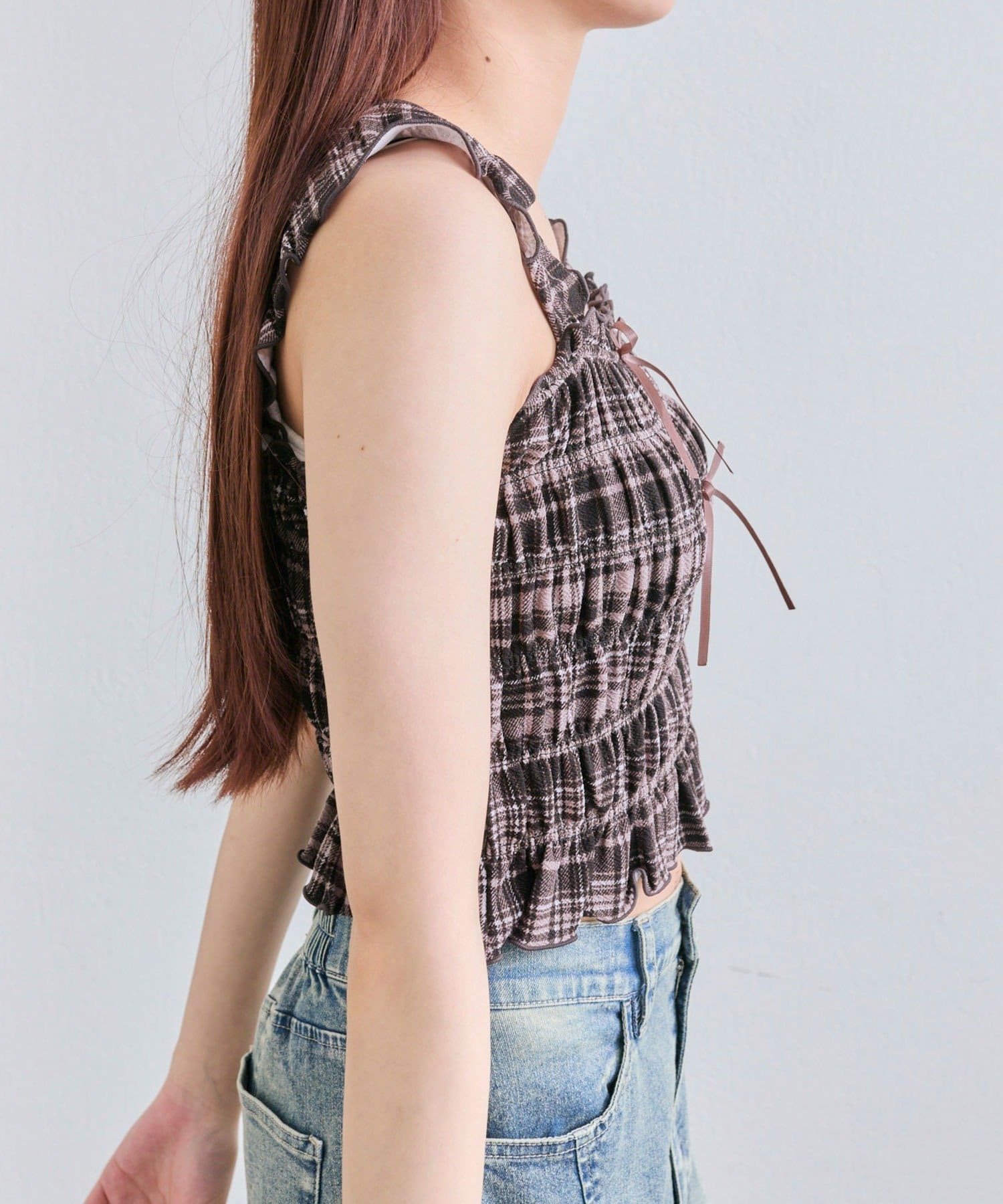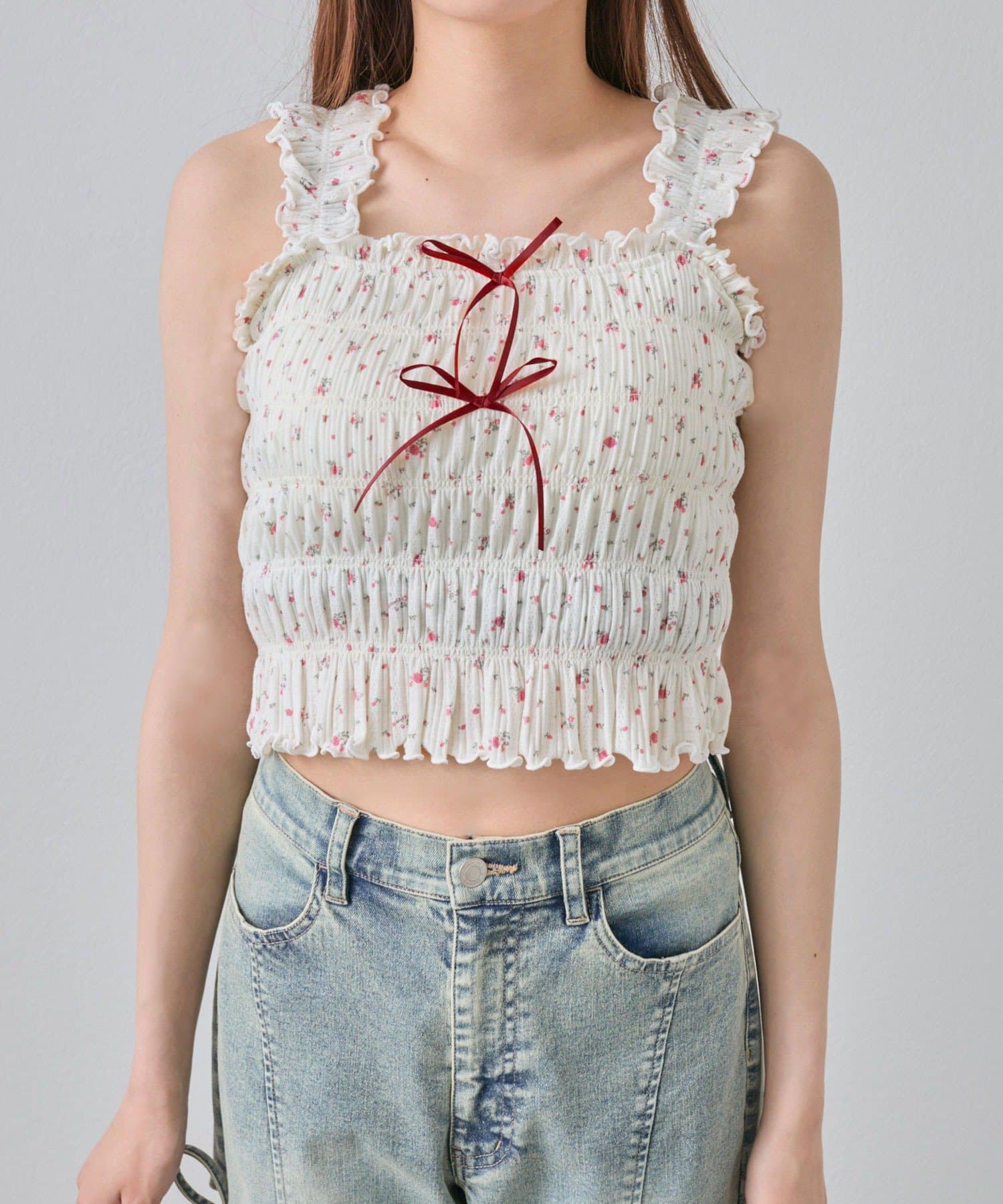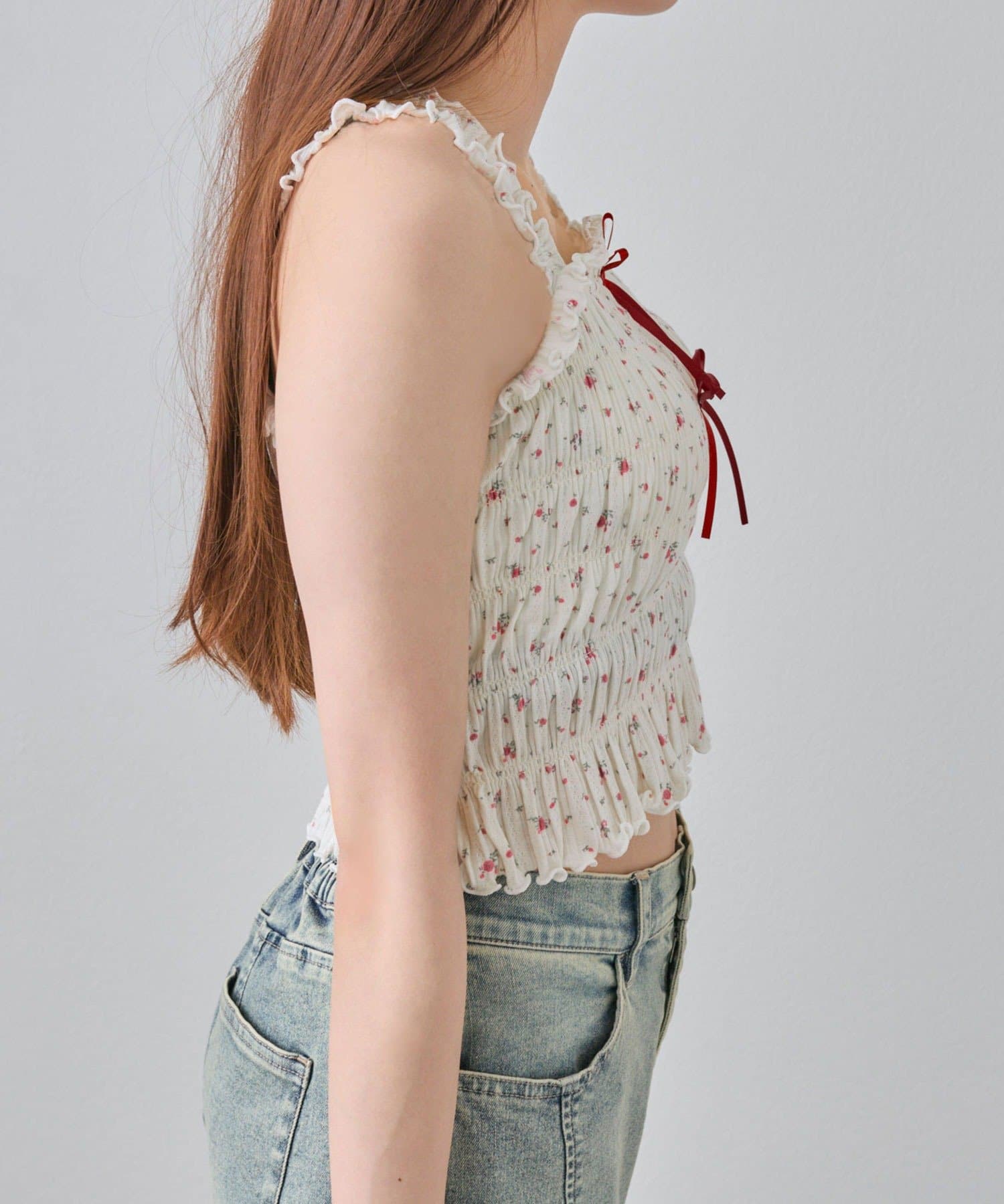 肩フリルシャーリングキャミ