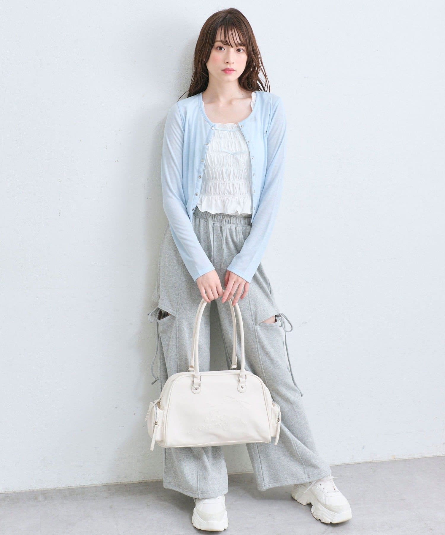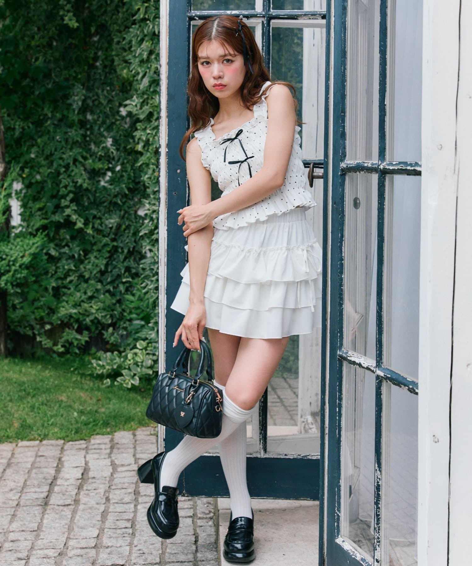 ・スカート合わせでガーリーにまとめるのもかわいいです。