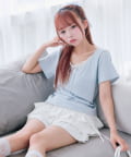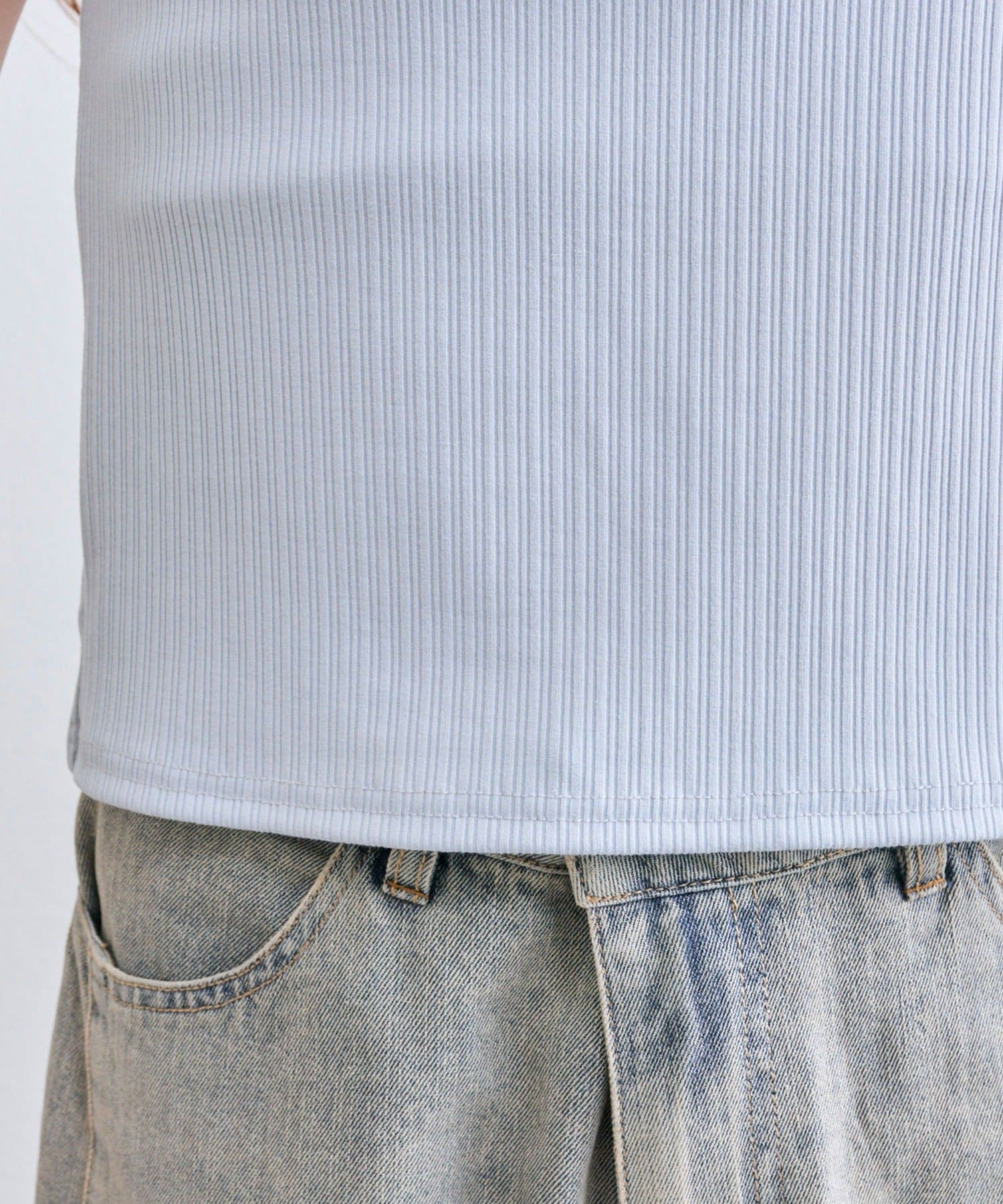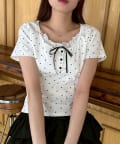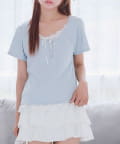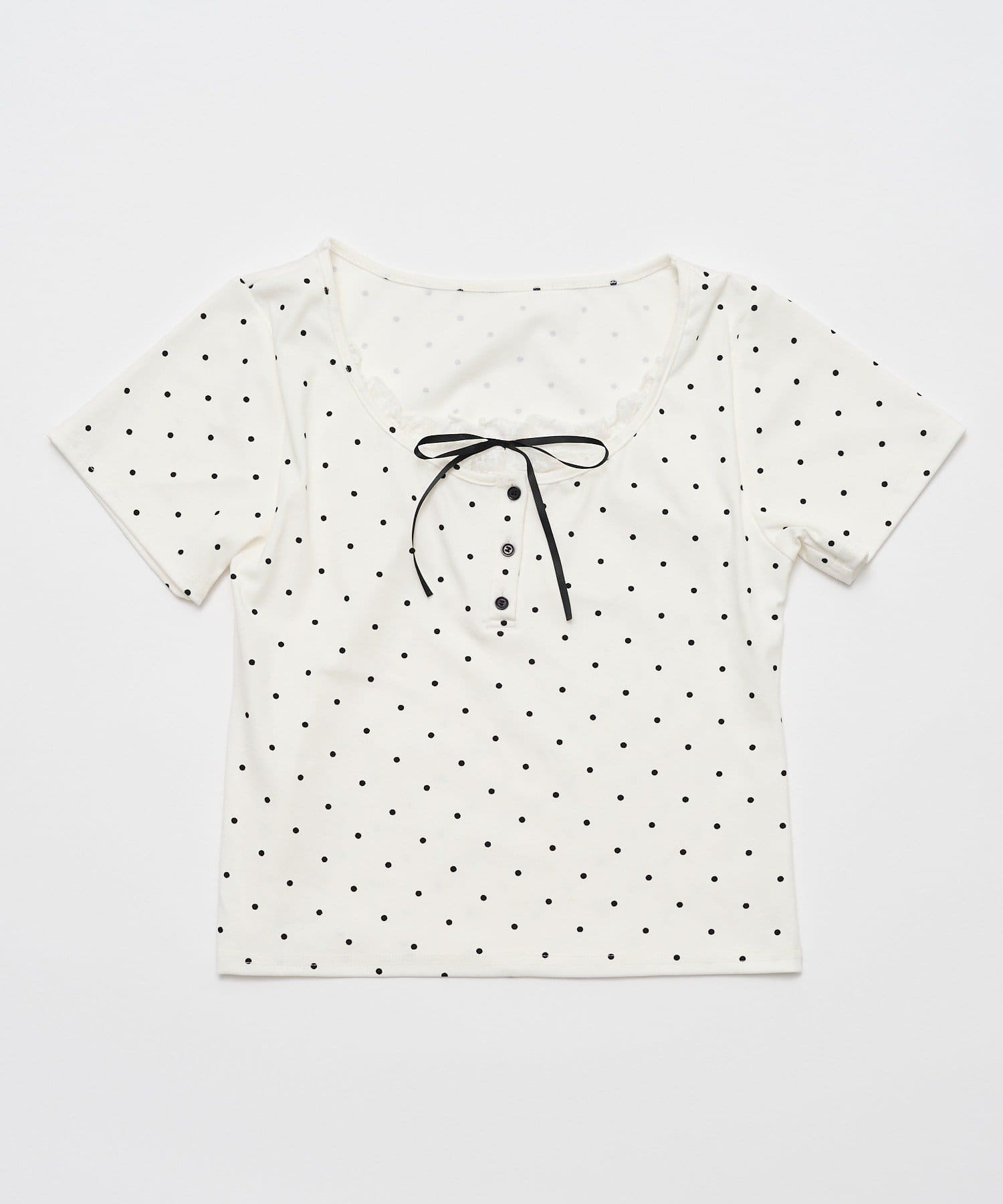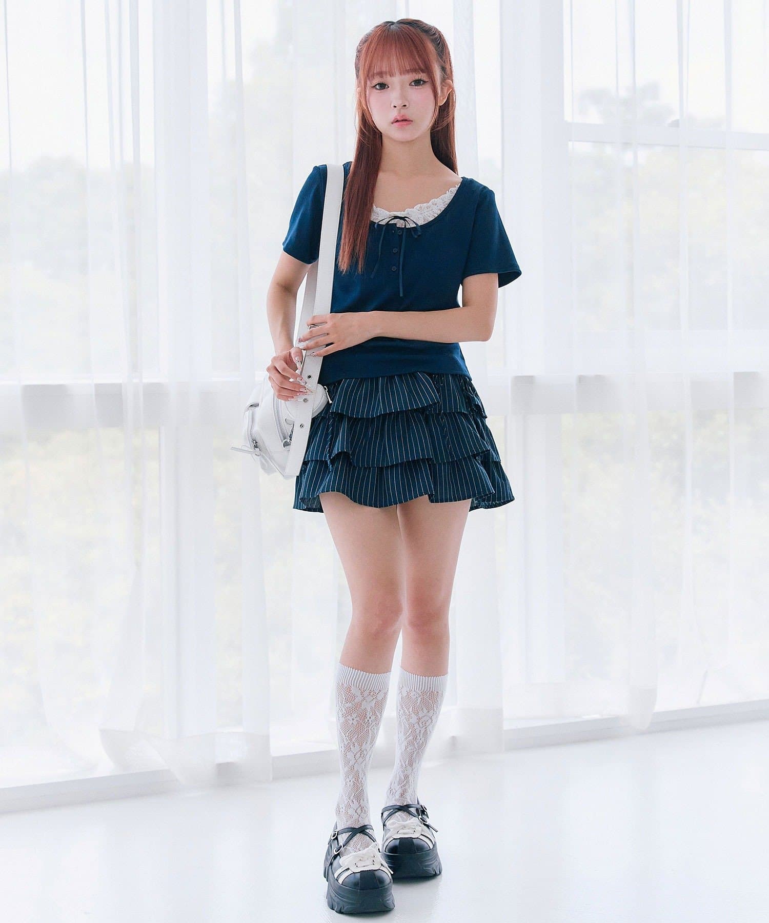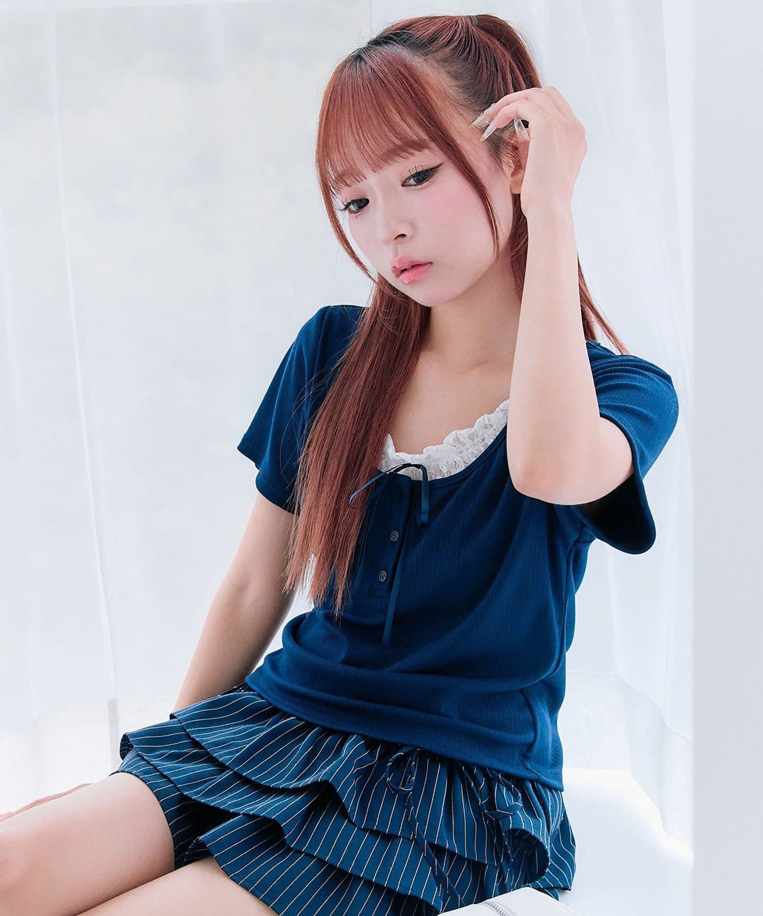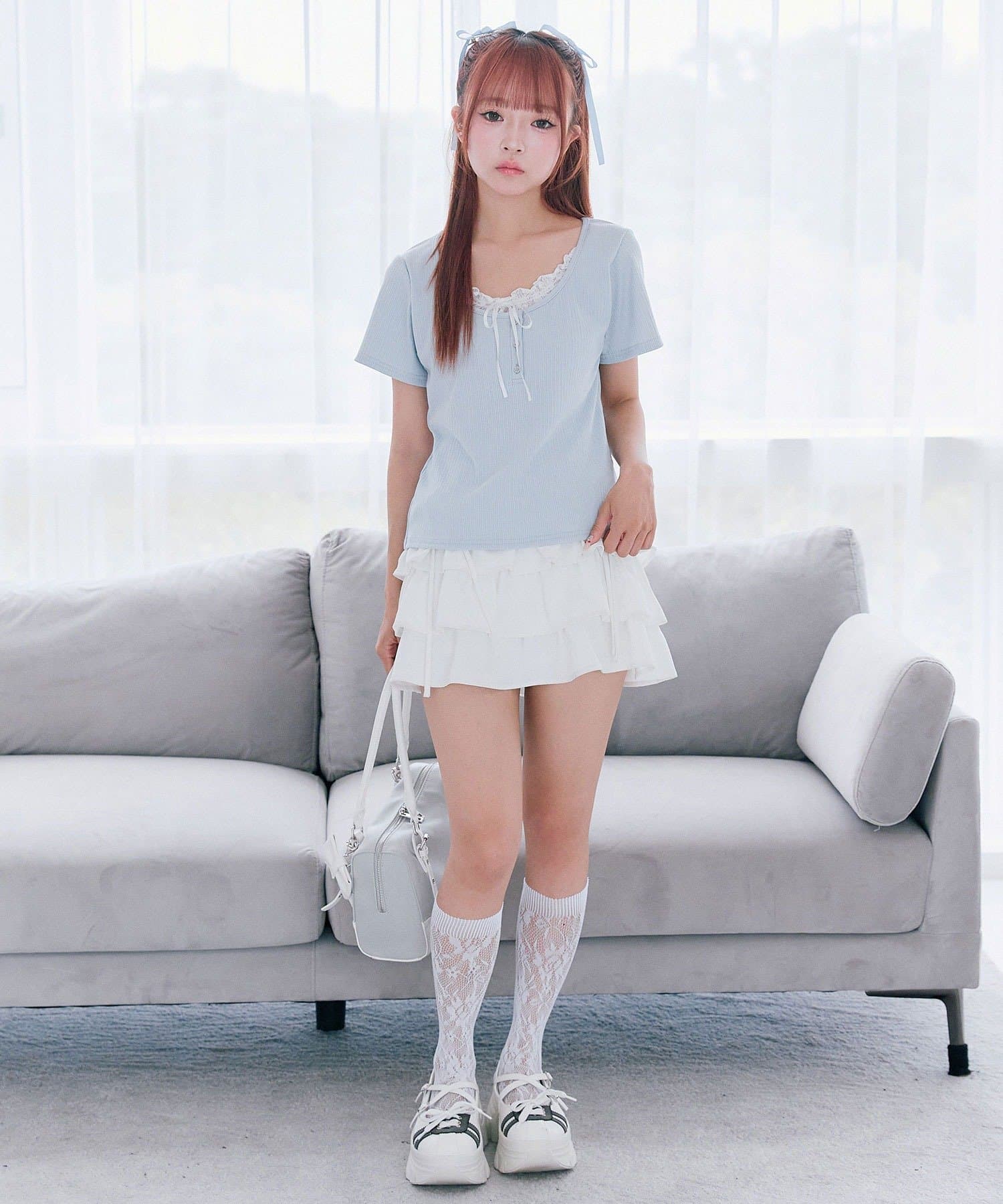 ・リボン付きのレースインナーがくっついたデザインで、1枚でレイヤードコーデが完成します。