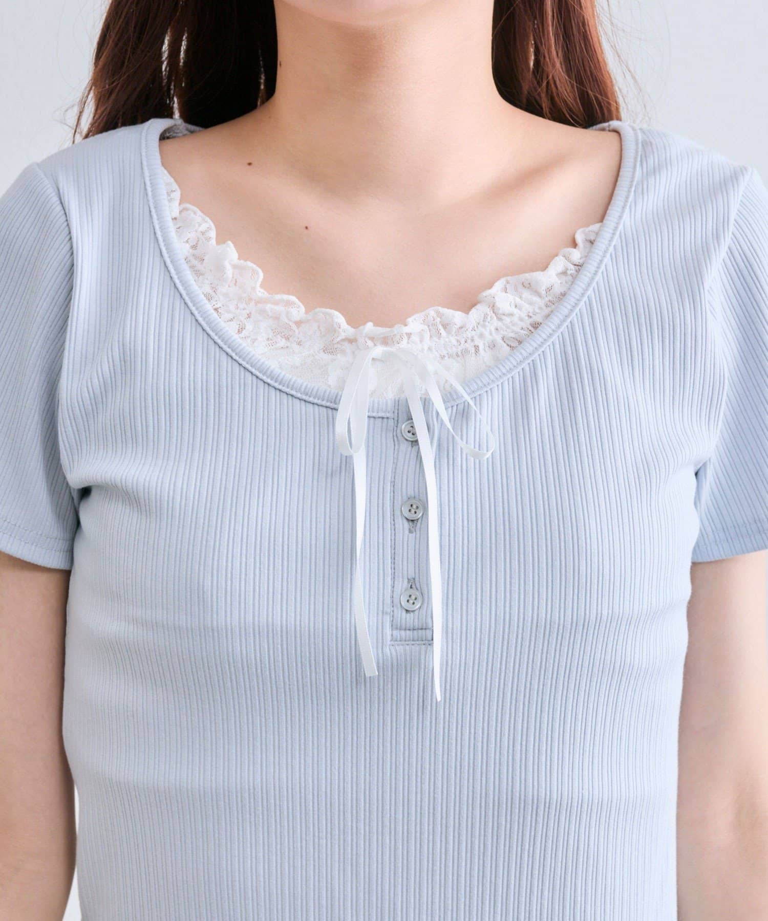 品番 1051060660 素材 【本体】[オフ]綿94%, ポリウレタン6% [サックス・ネイビー]ポリエステル65%, レーヨン28%, ポリウレタン7% [チャコール]ポリエステル87%, レーヨン10%, ポリウレタン3% 【レース部分】ナイロン90%, ポリウレタン10% 【リボン】ポリエステル100% 原産国 中国 サイズ FREE カテゴリ トップス > Tシャツ/カットソー タイプ レディース ギフト ラッピング 可 取り扱い 本体:手洗い可能 アイテムサイズ