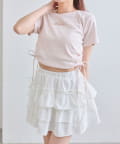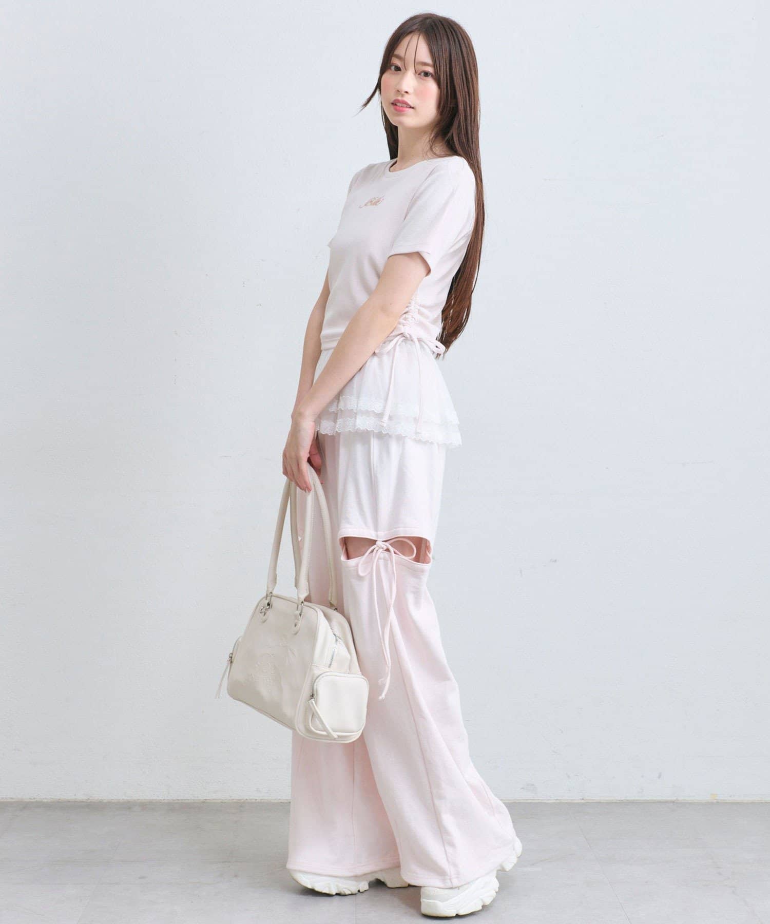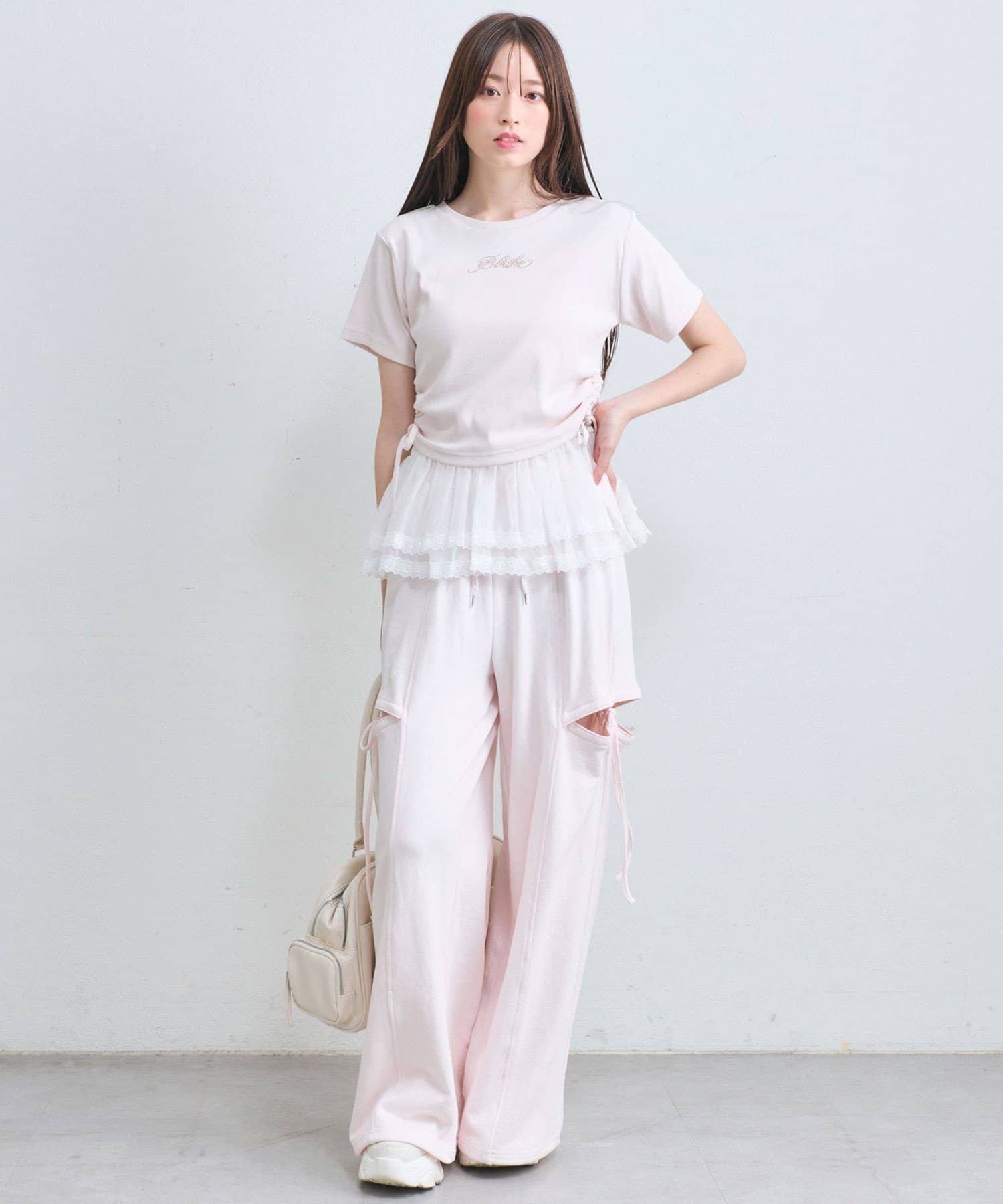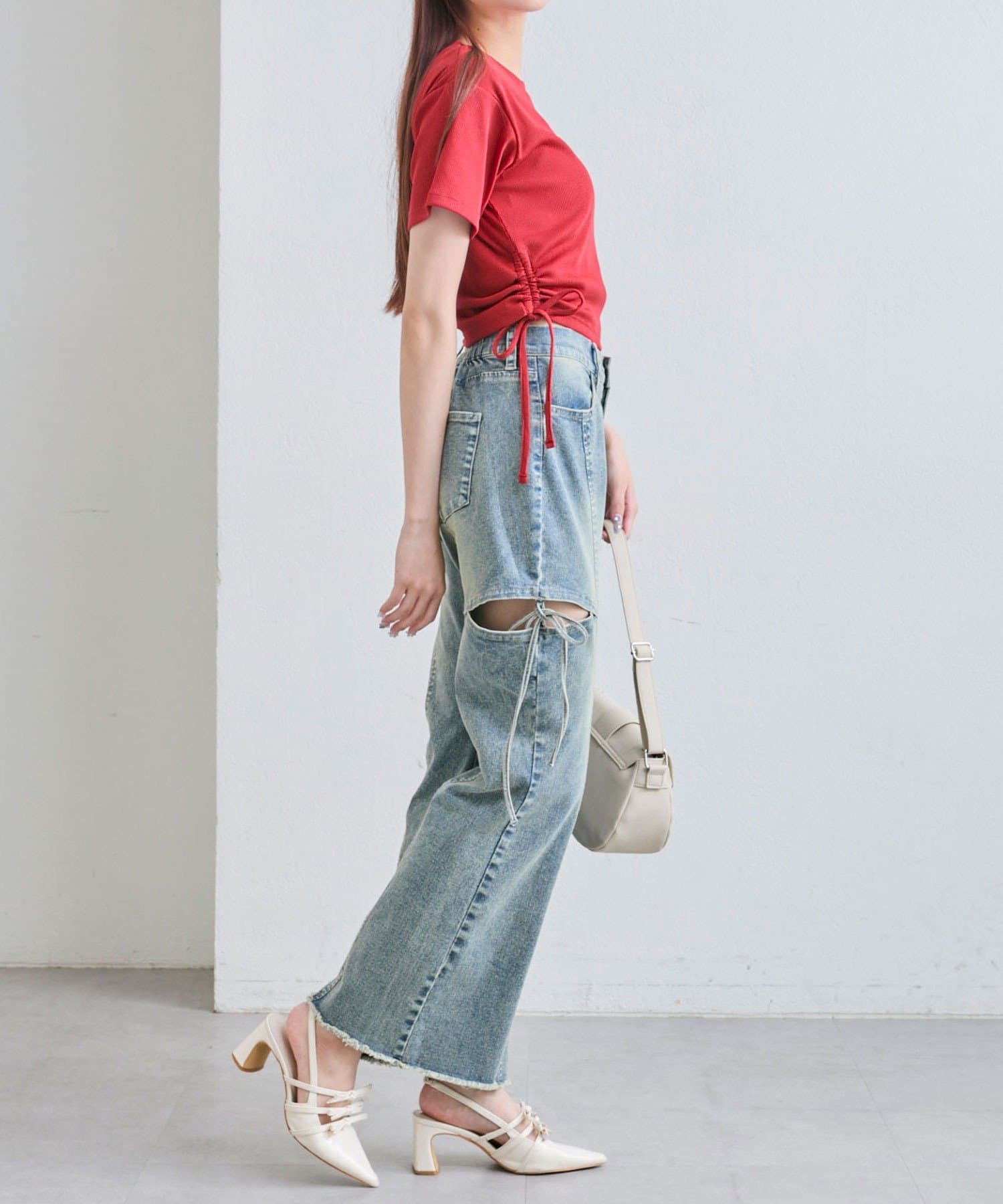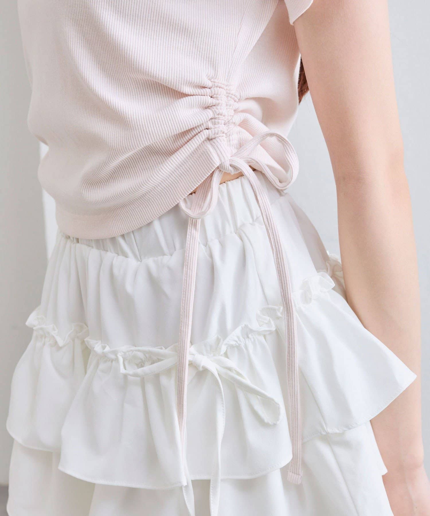 ・ウエストサイドにはドロストコードが施され、絞ることでシルエットを調整でき体型カバーも叶います。