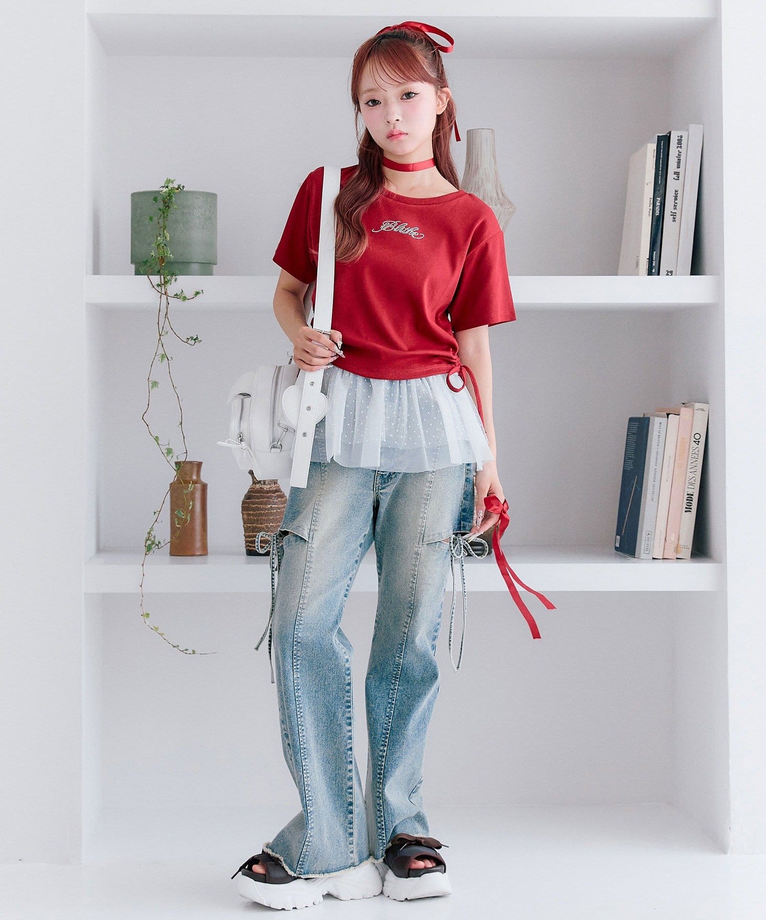 ・スカートと合わせれば、甘すぎないカジュアルガーリーな着こなしに。