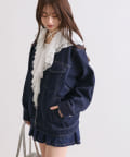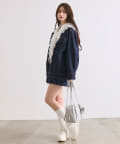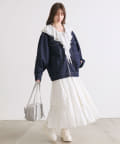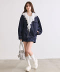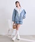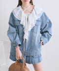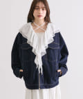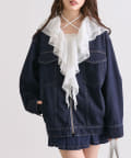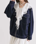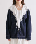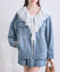 ・ふわふわのラッフル衿が目を惹くガーリーデザインのデニムジャケット。
