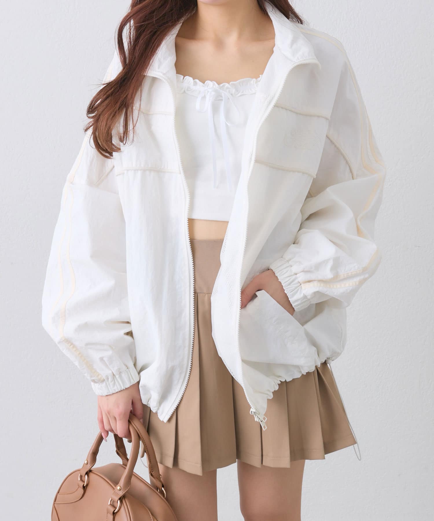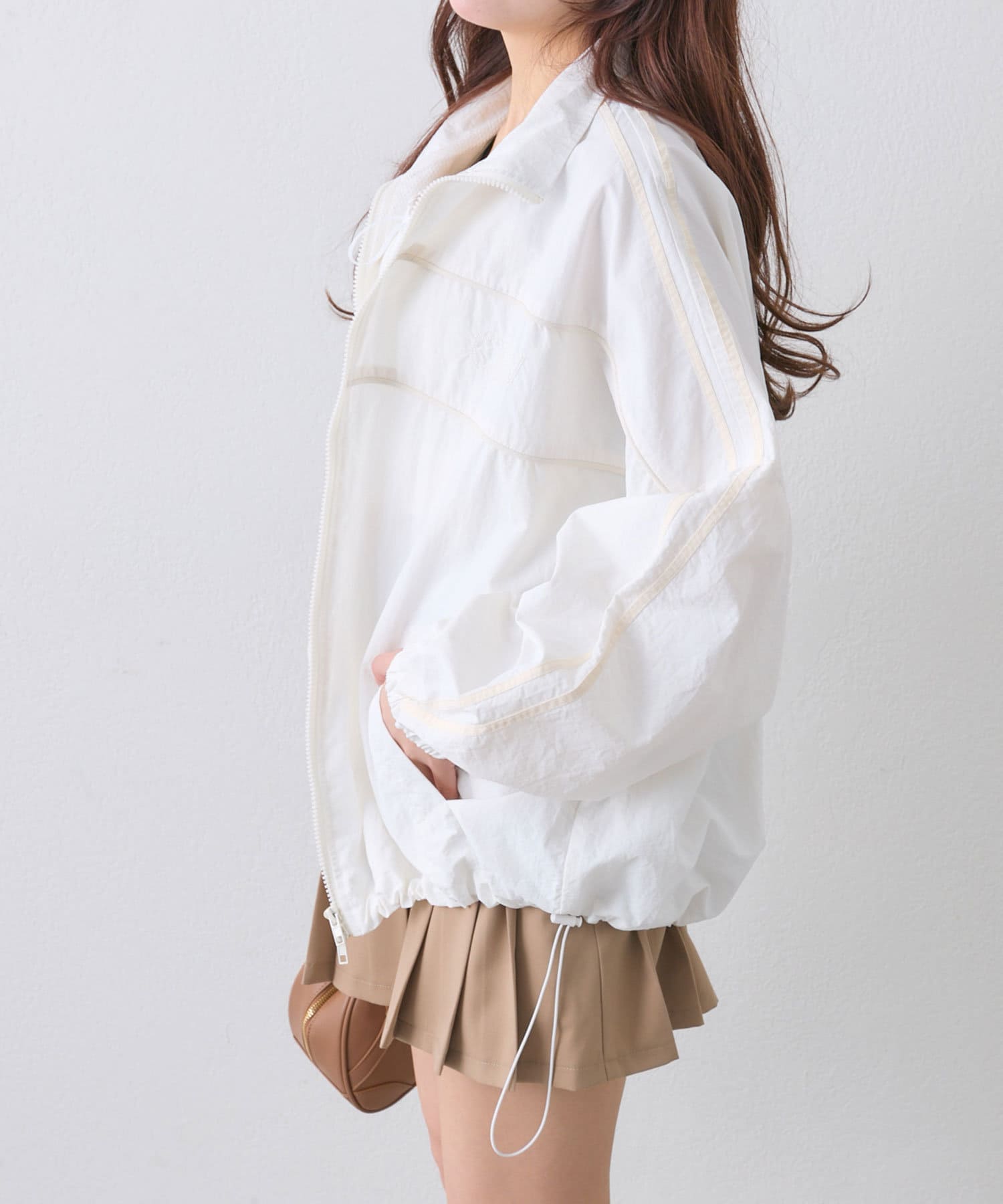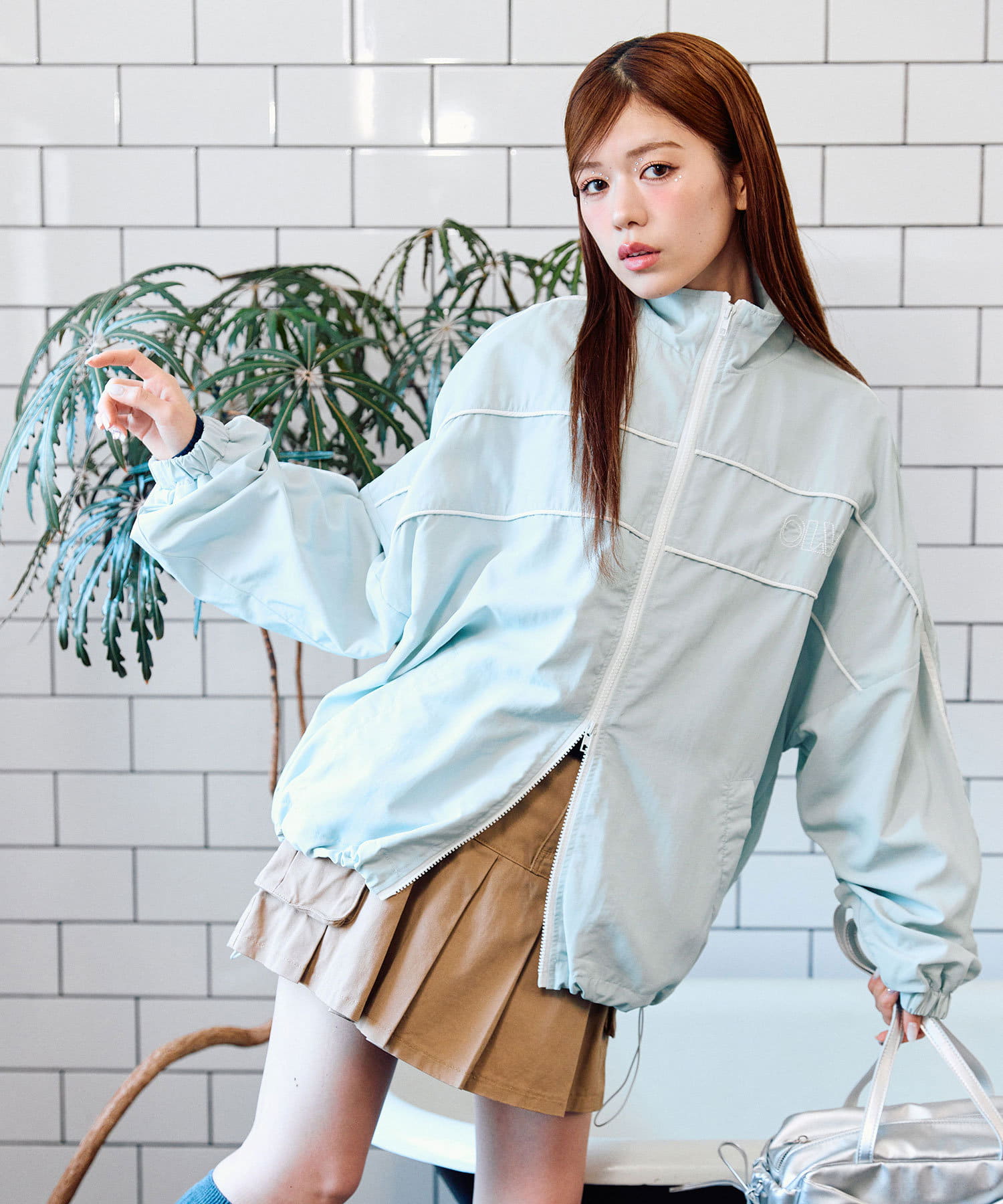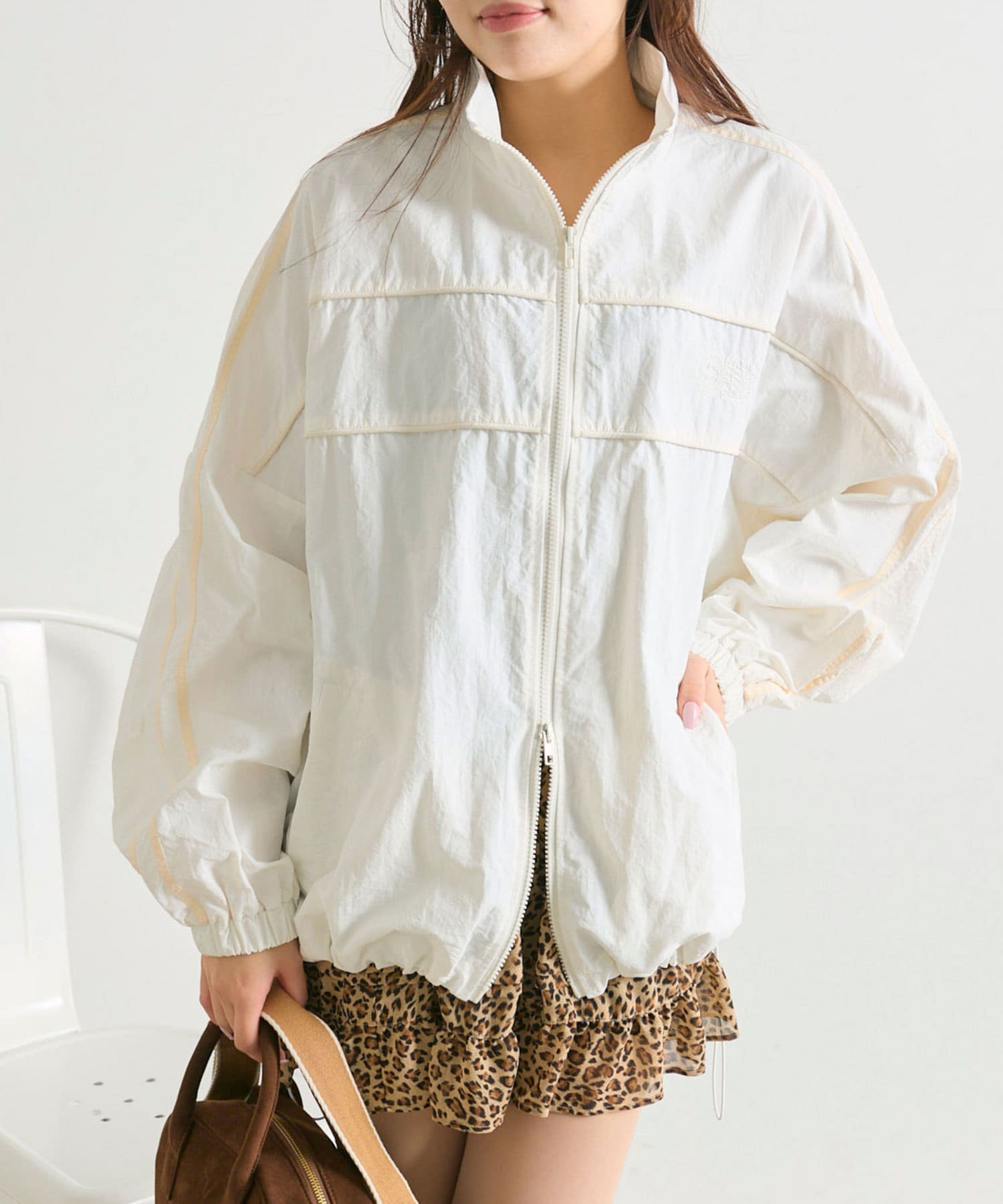・ダブルジップで開く具合を調節すれば、子供っぽくならず抜け感をプラスできます。