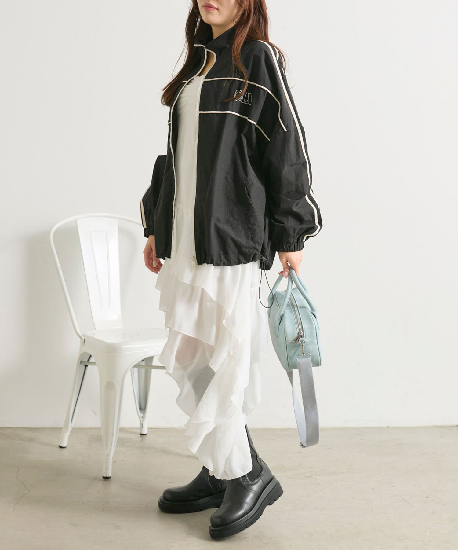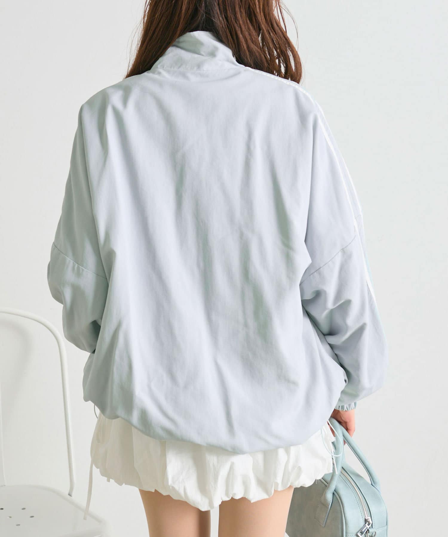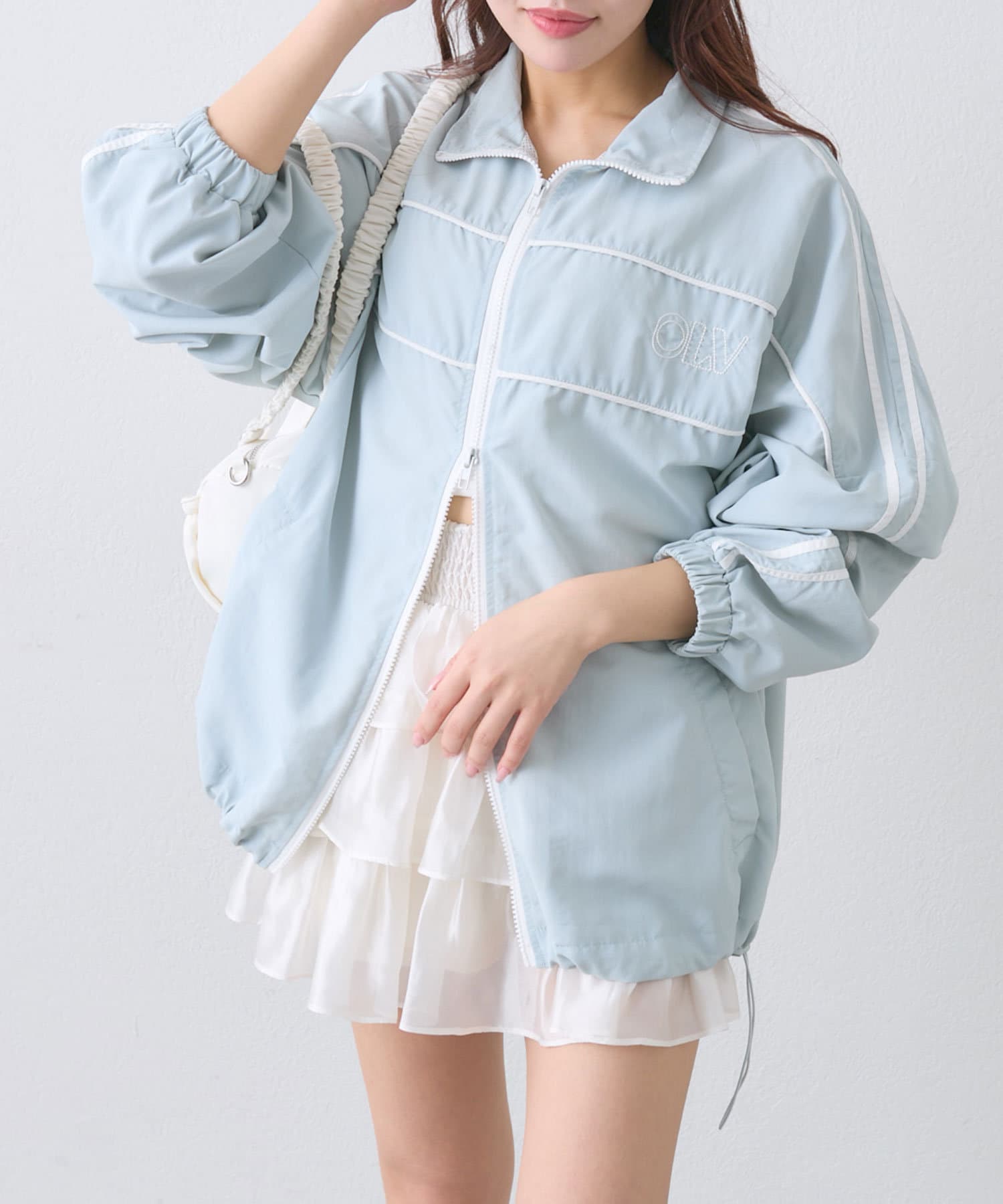 ・ダブルジップで開く具合を調節すれば、子供っぽくならず抜け感をプラスできます。
