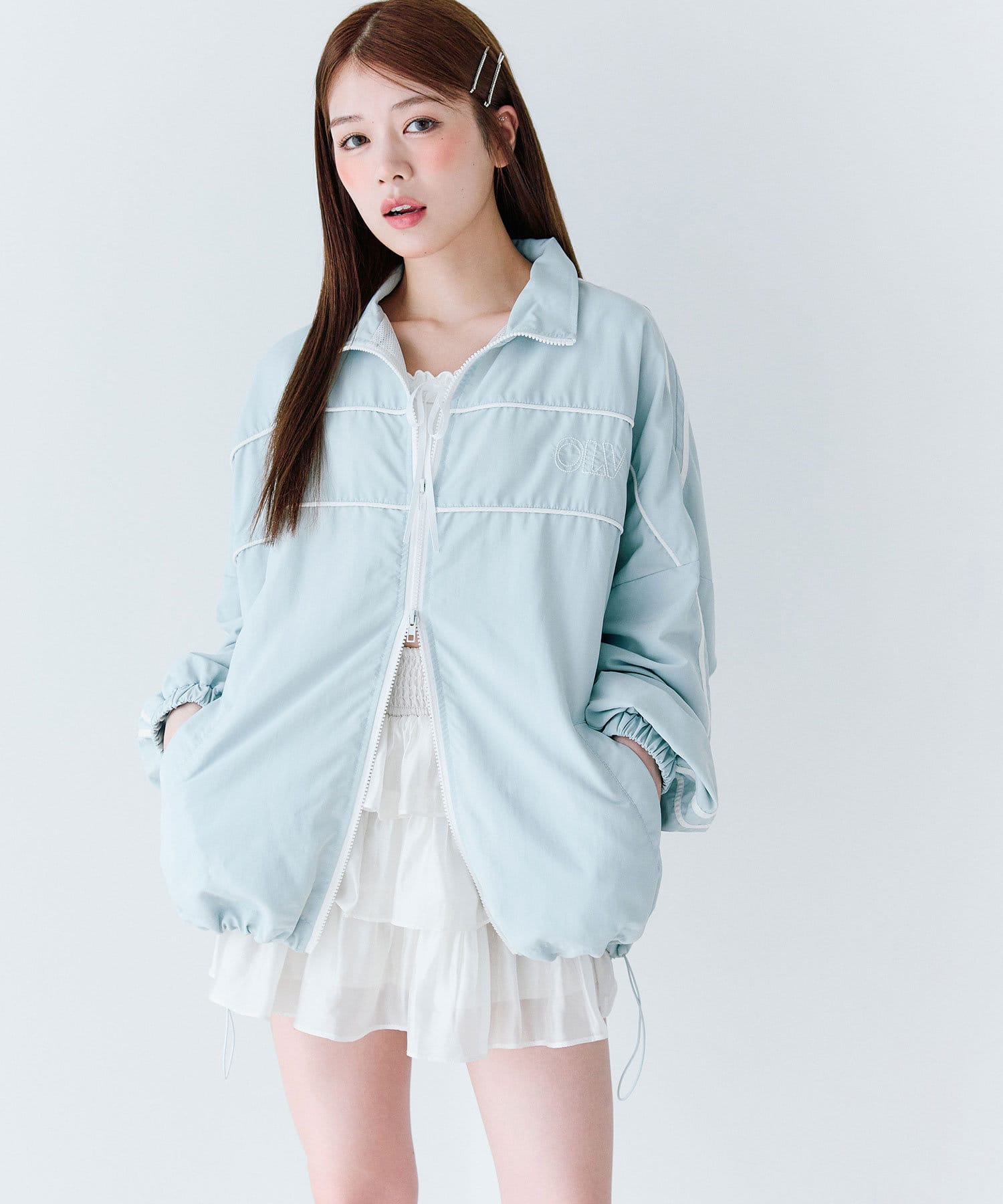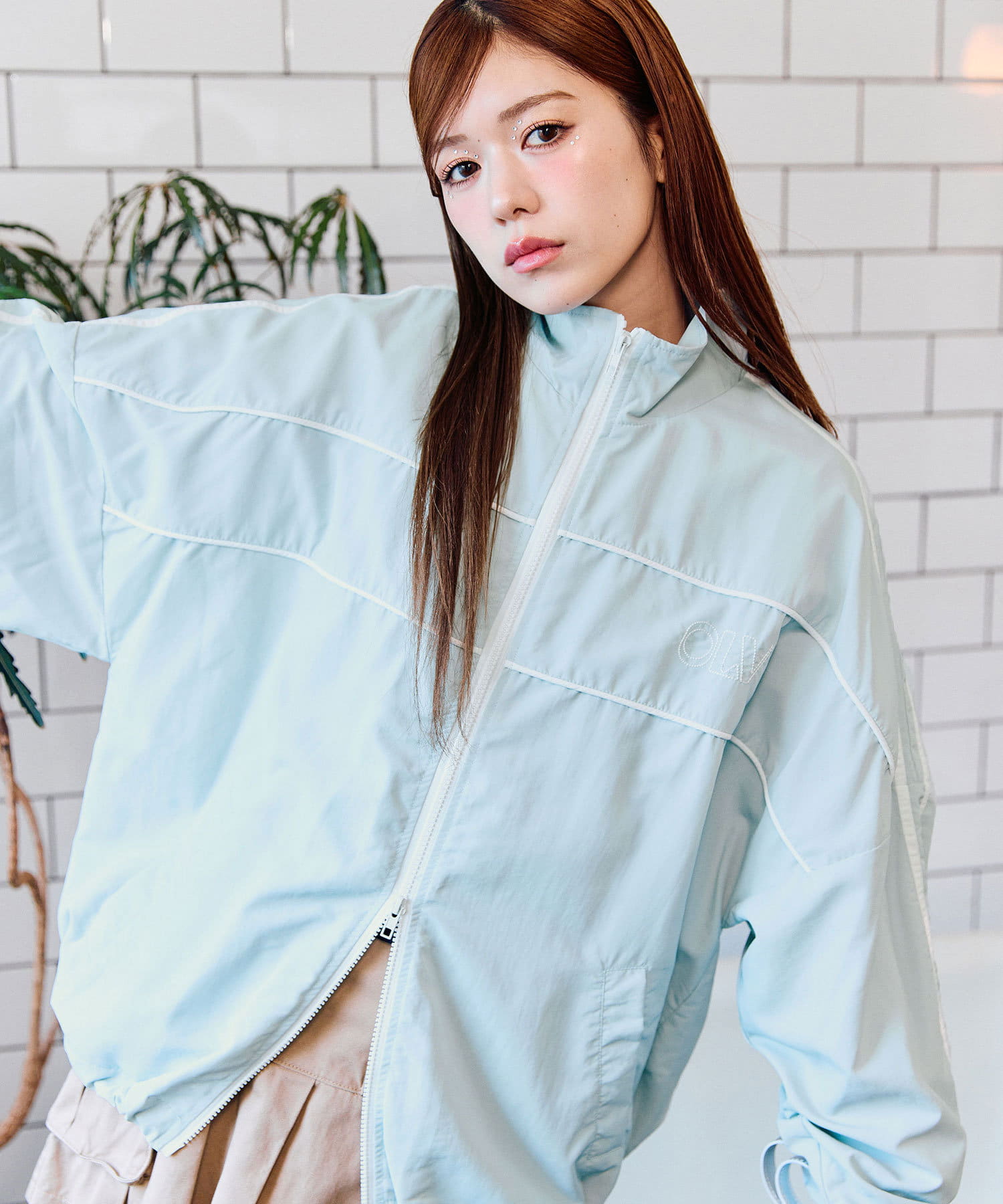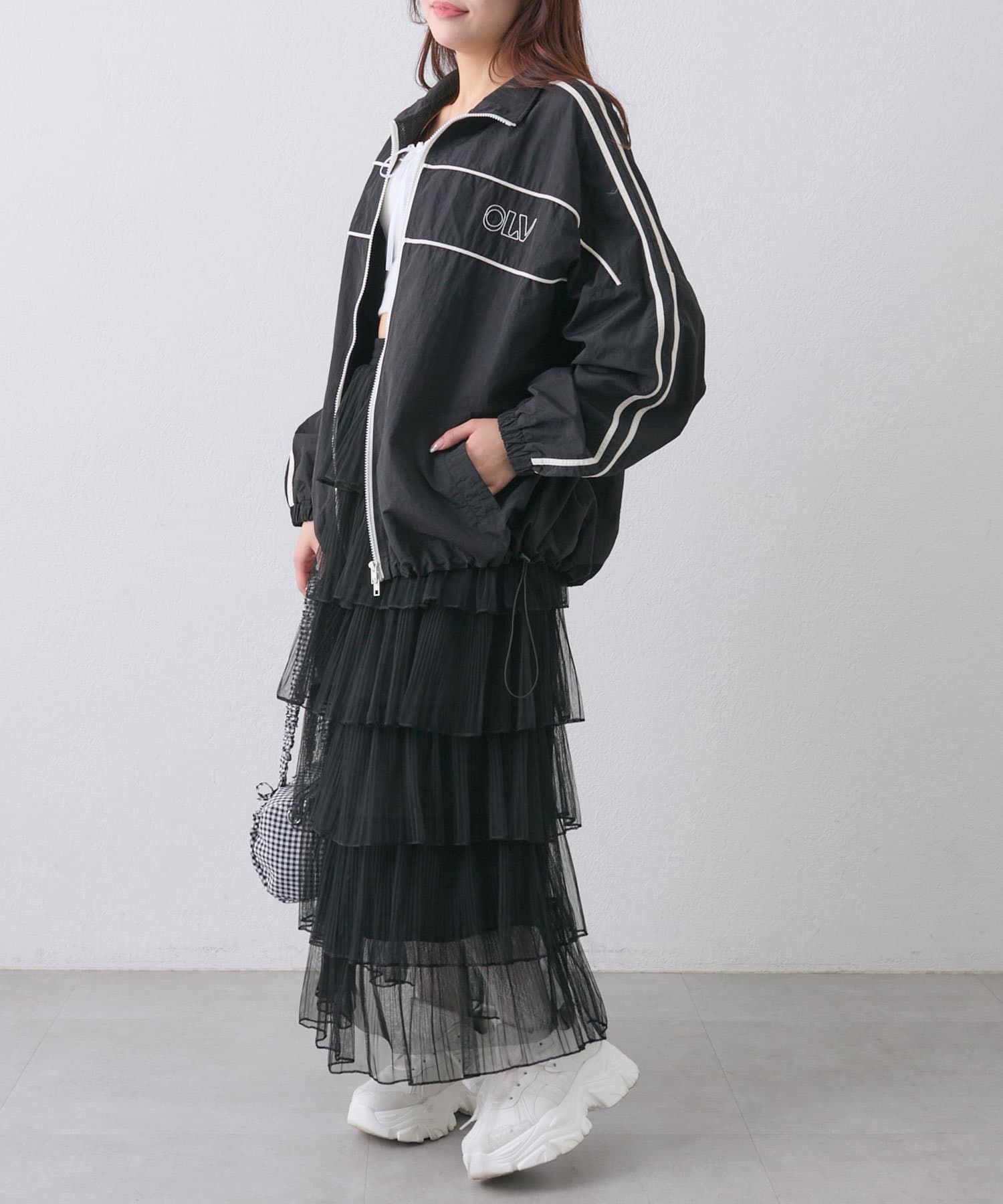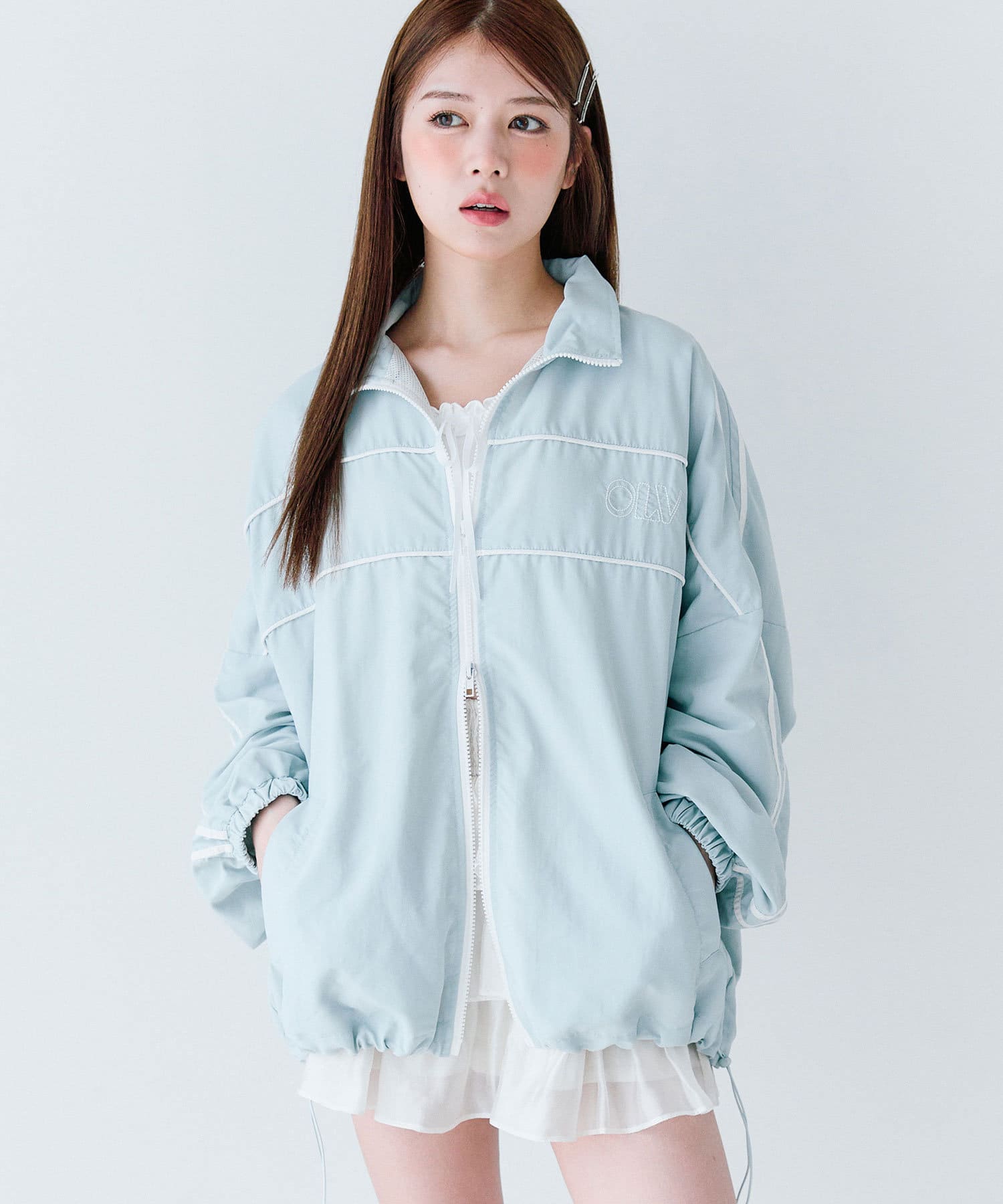 ・ダブルジップで開く具合を調節すれば、子供っぽくならず抜け感をプラスできます。