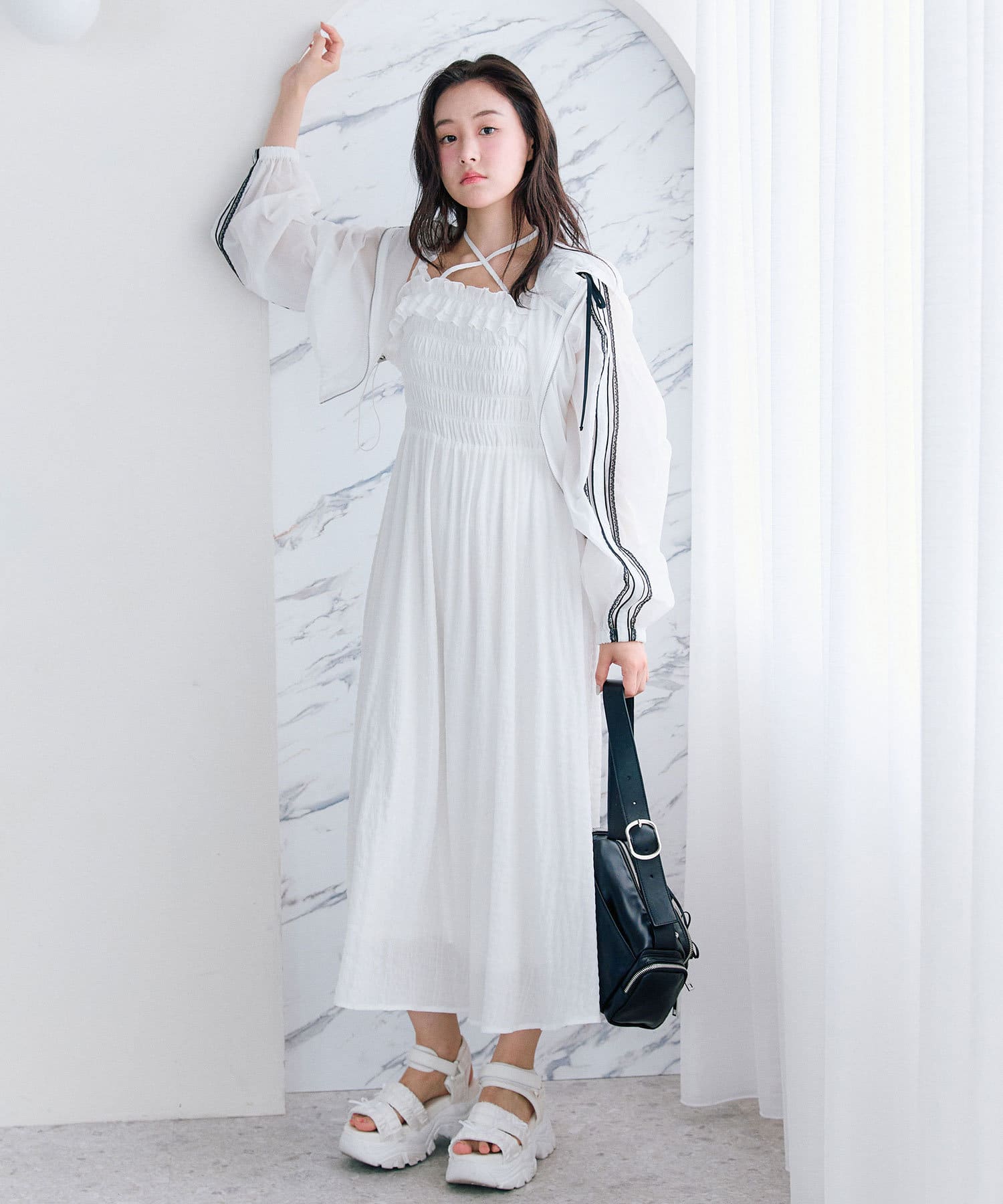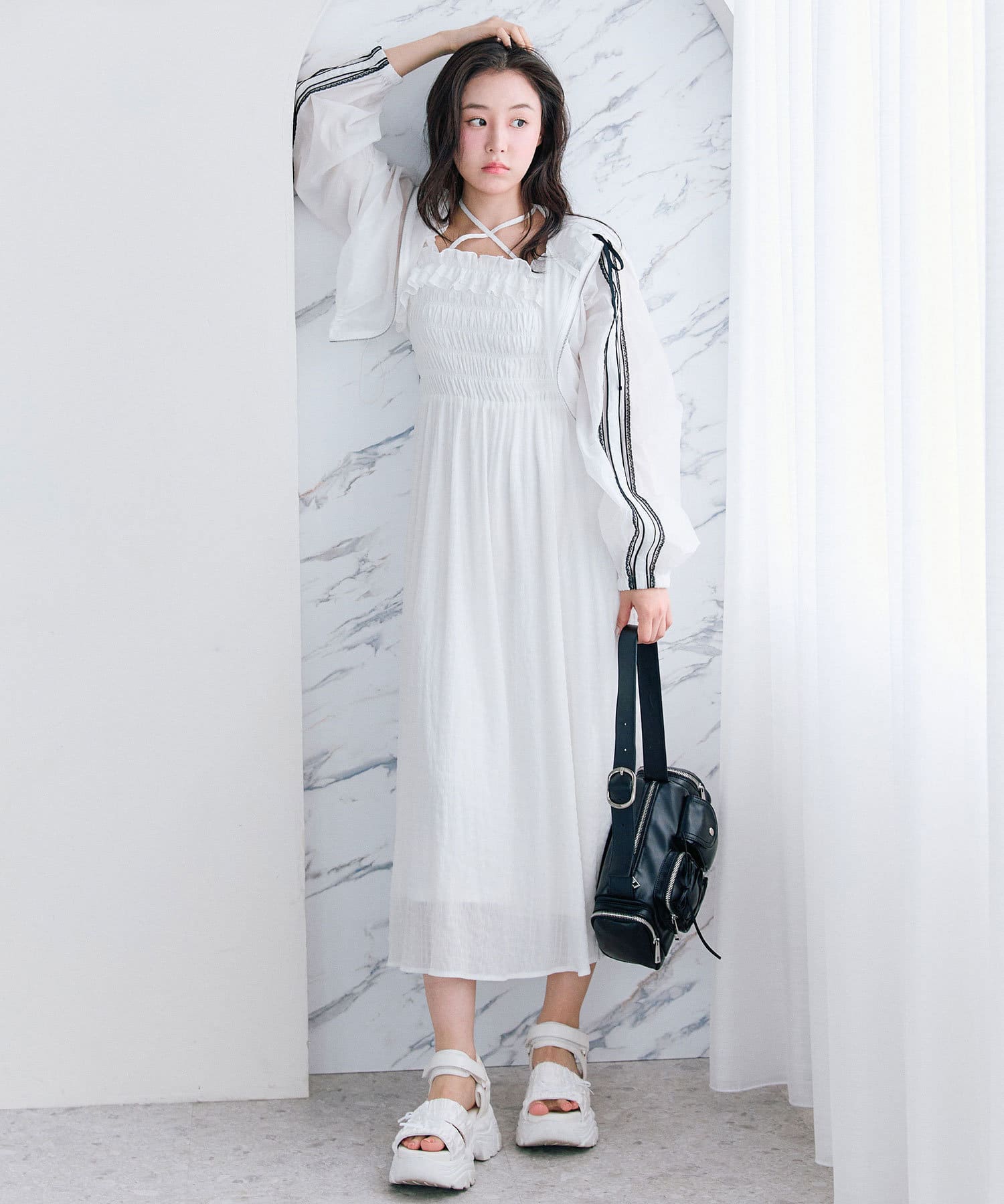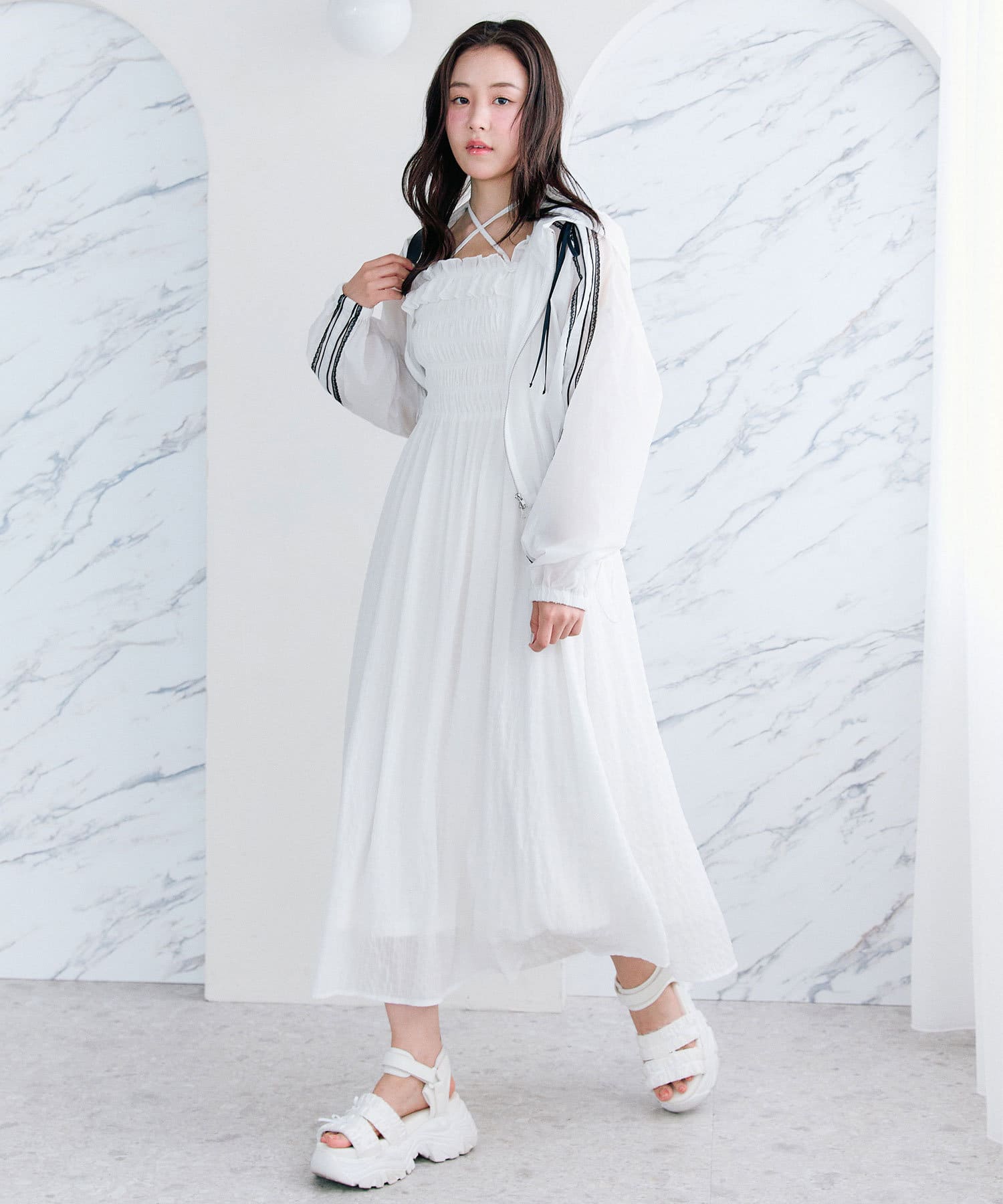 ・ワンピースやスカートに合わせてカジュアルガーリーなコーデがおすすめ。