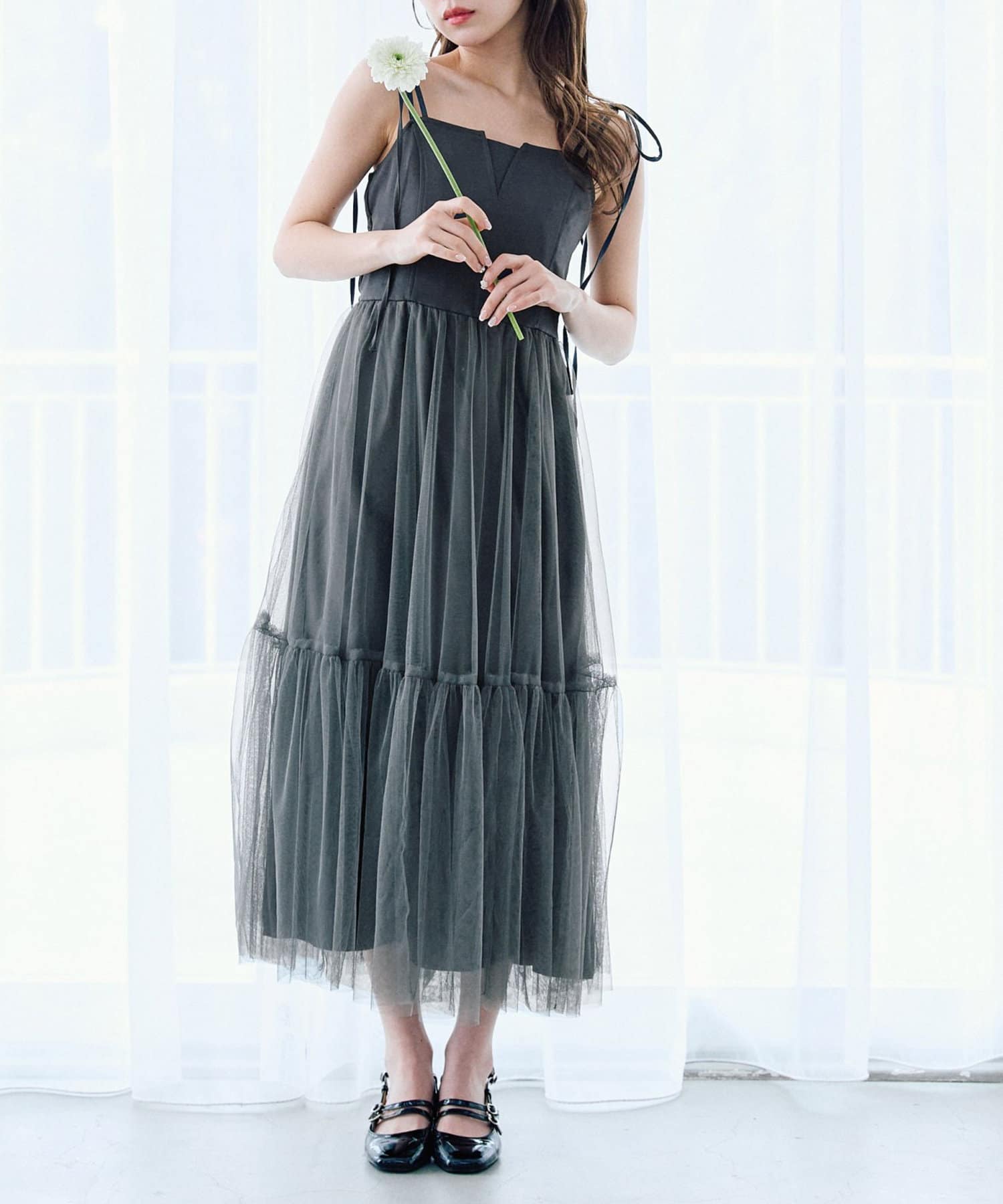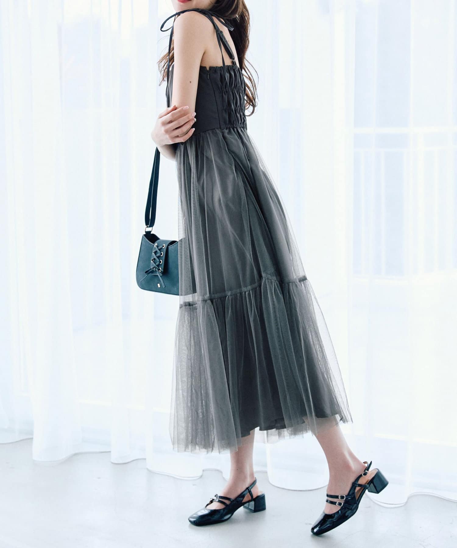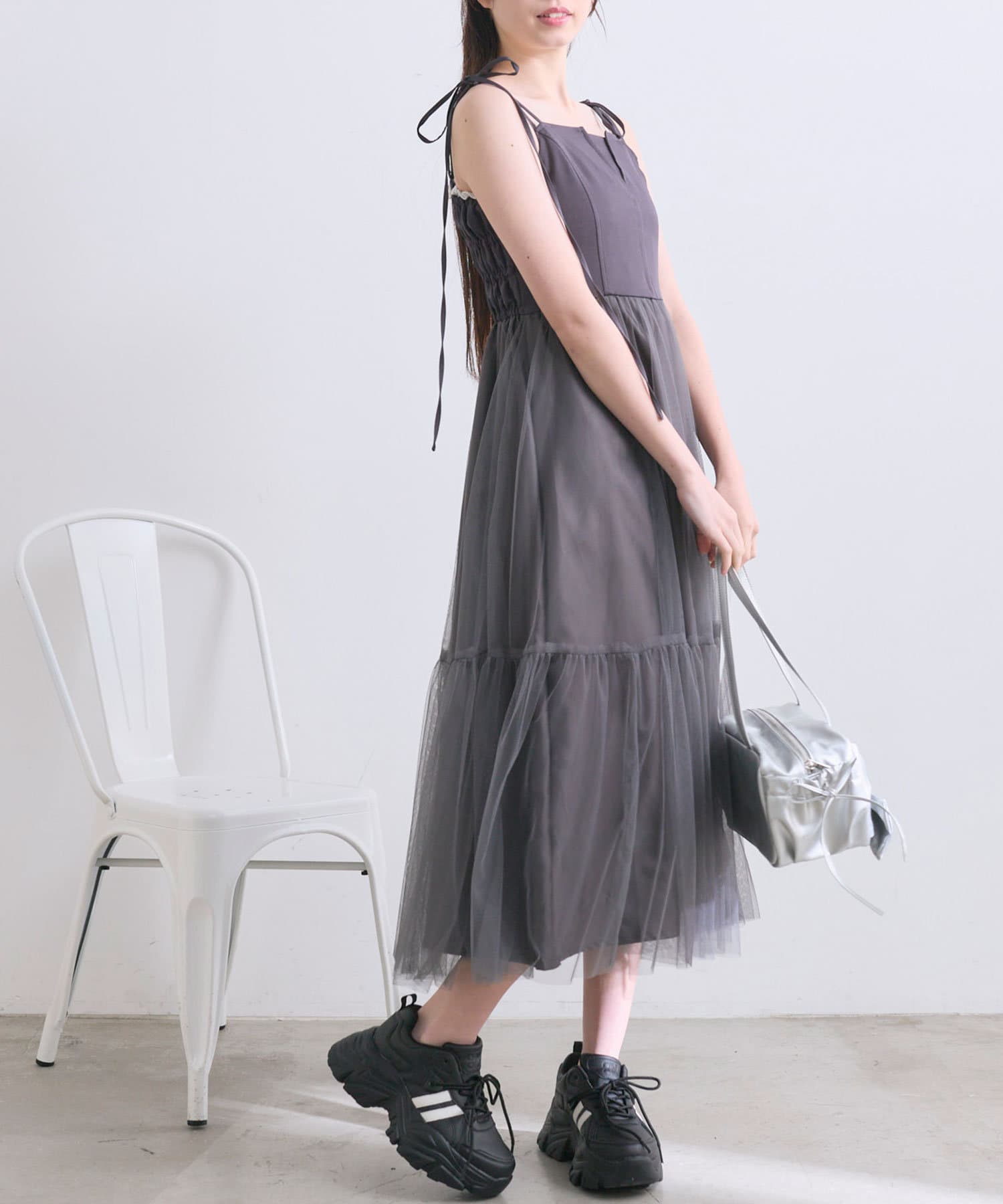 チュールでコーデが華やぐキャミワンピース