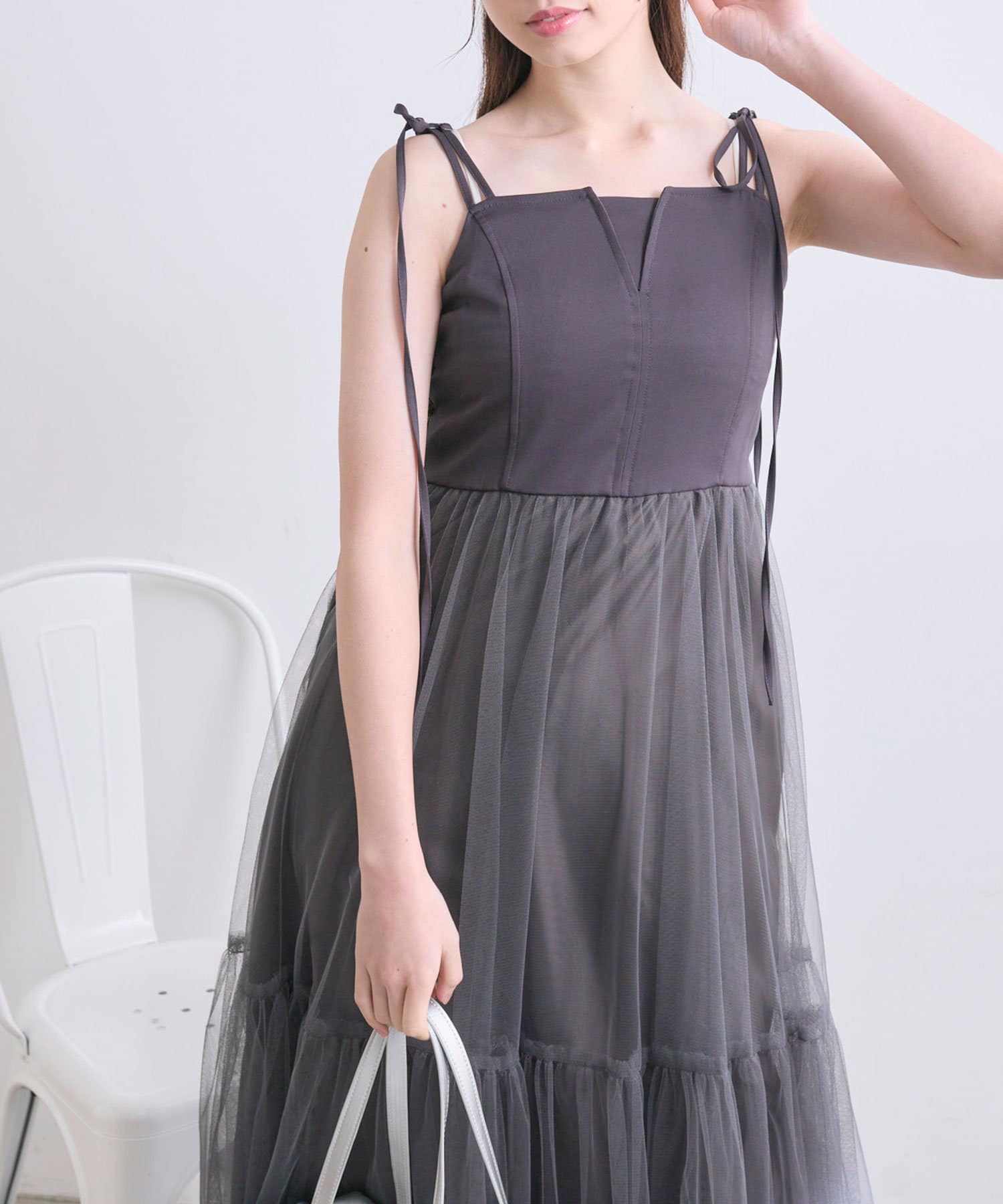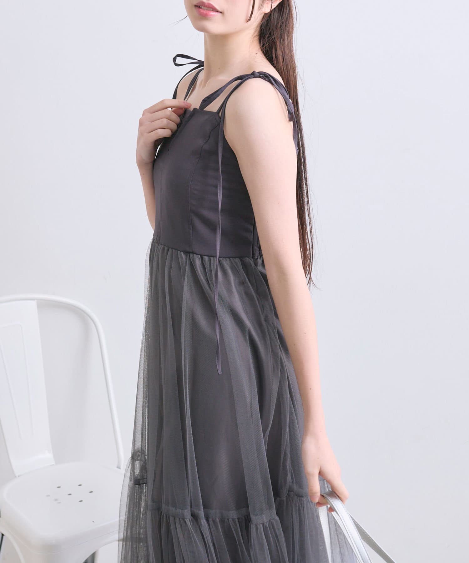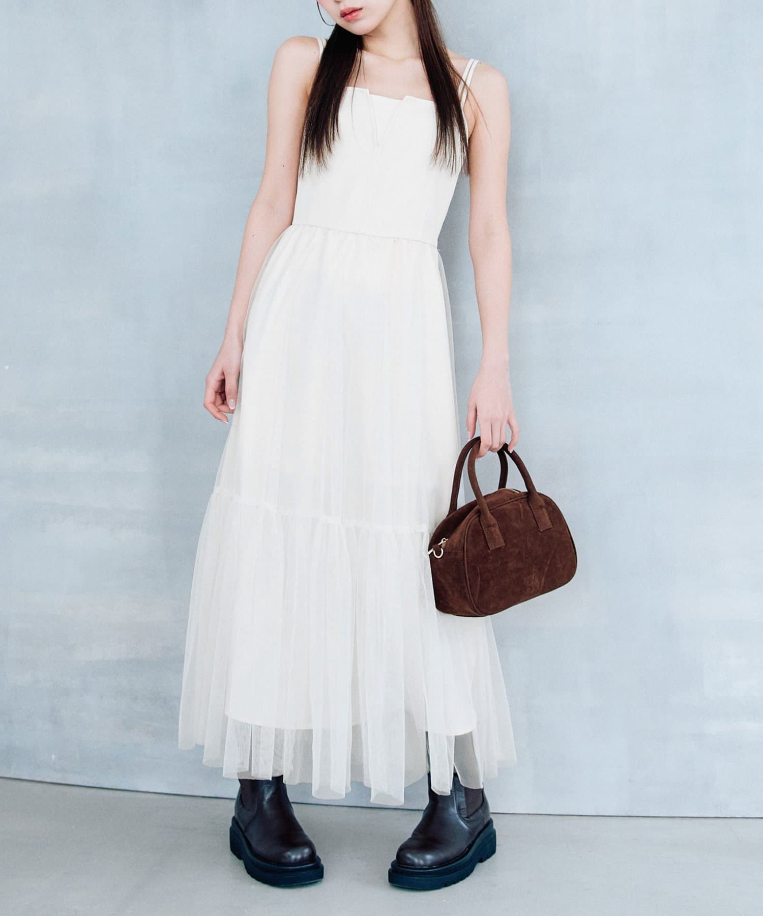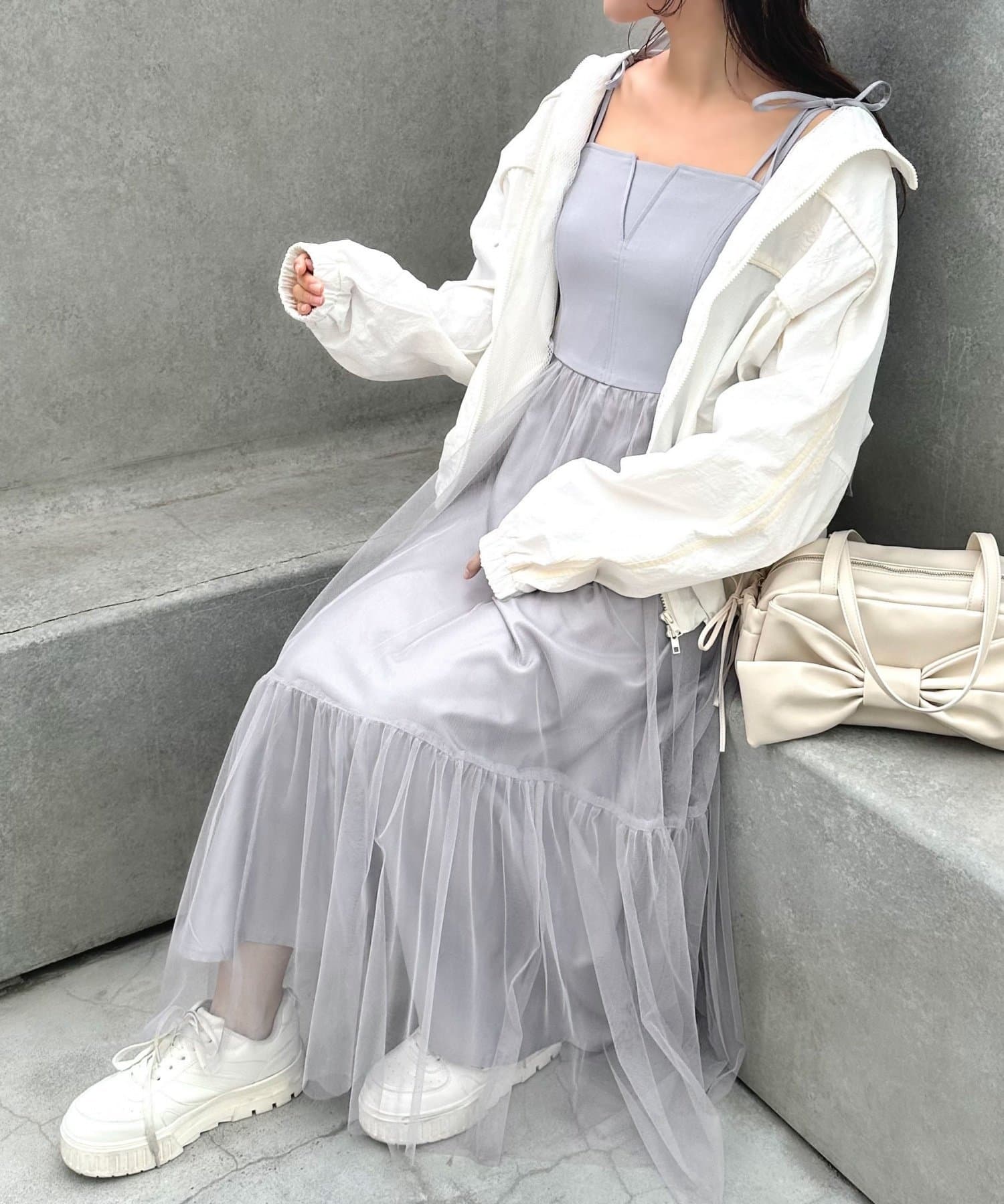チュールでコーデが華やぐキャミワンピース