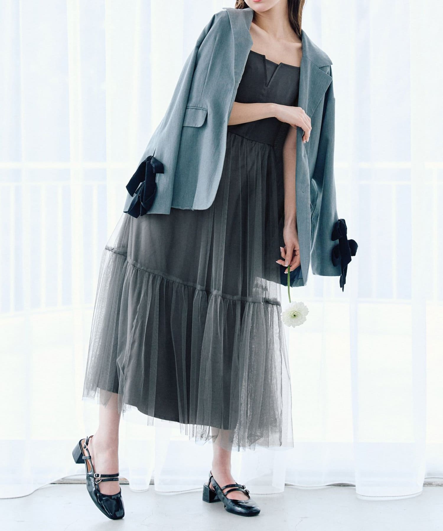 ・スカート部分はチュールになっており、トレンド要素たっぷりなデザインです。