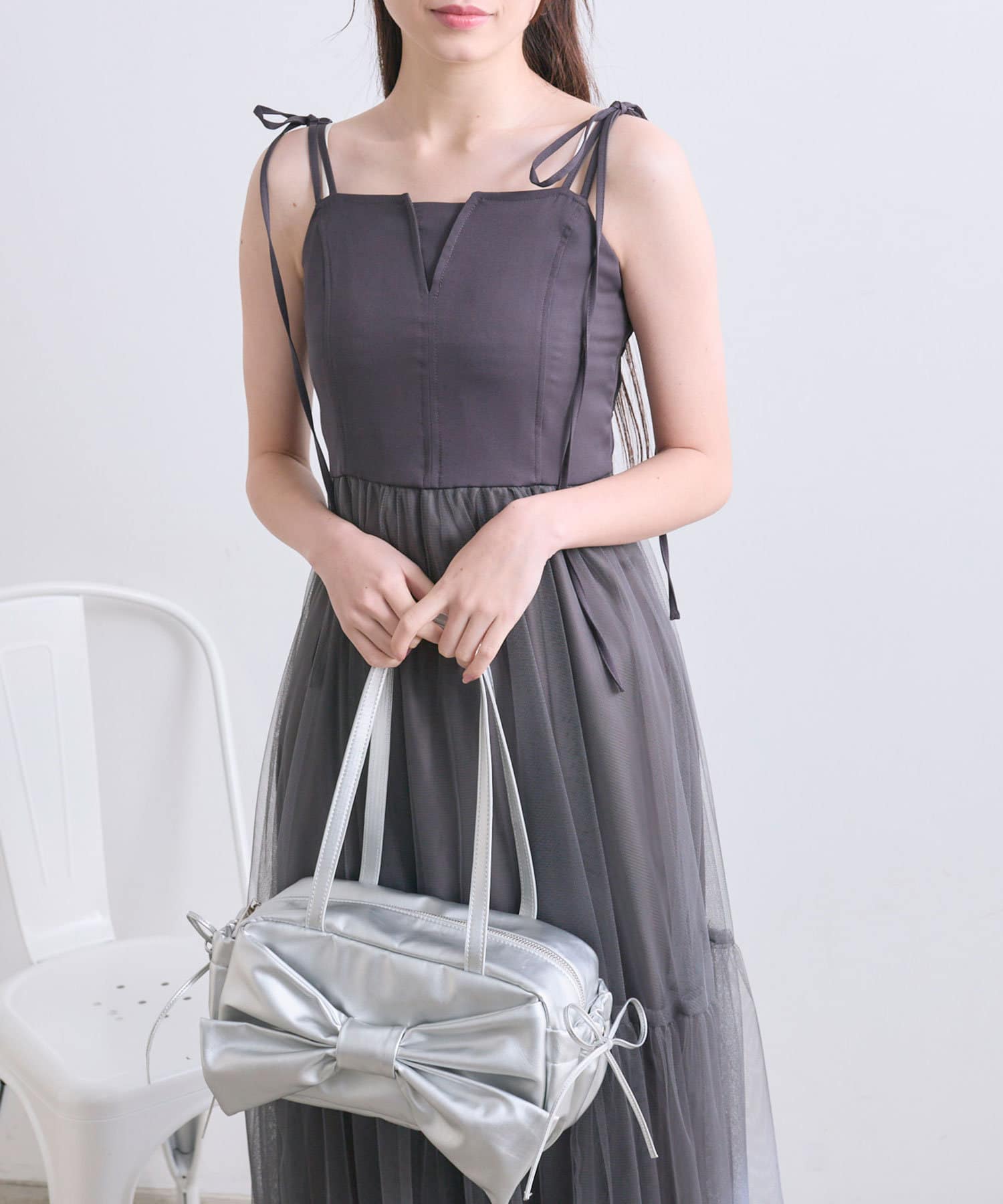 ・肩のリボンは取り外しが可能でシンプルデザインでも着用していただけます。