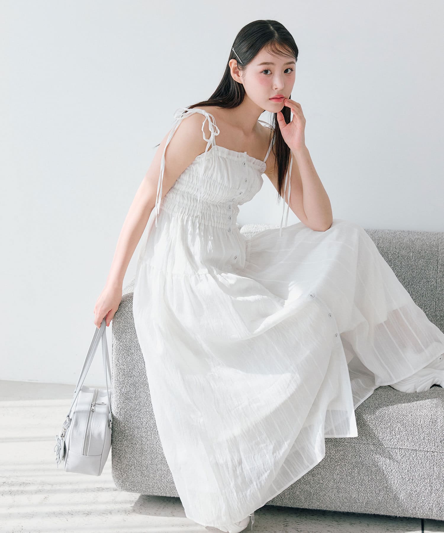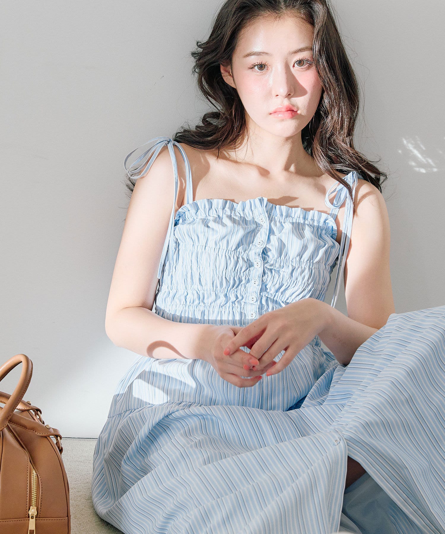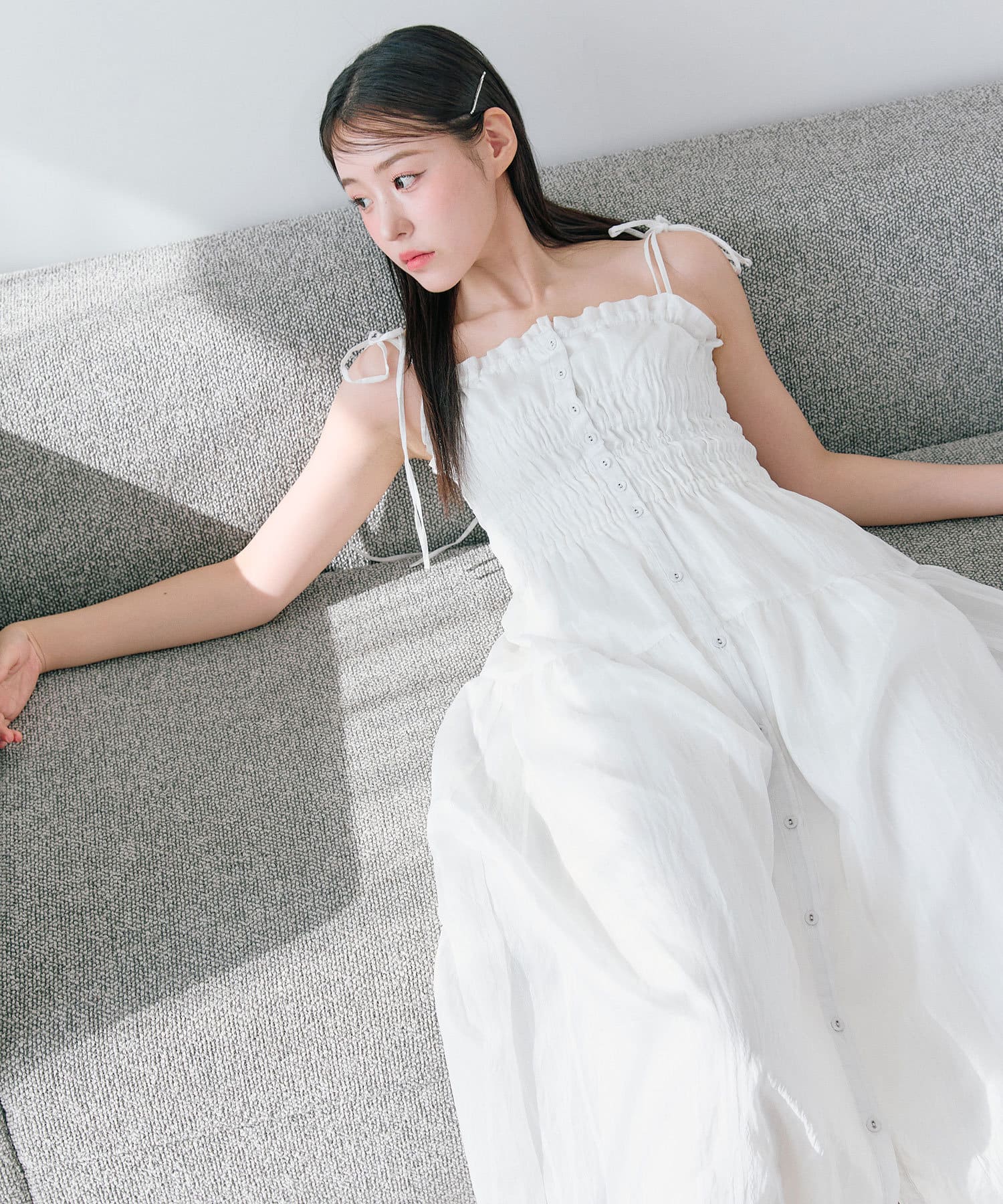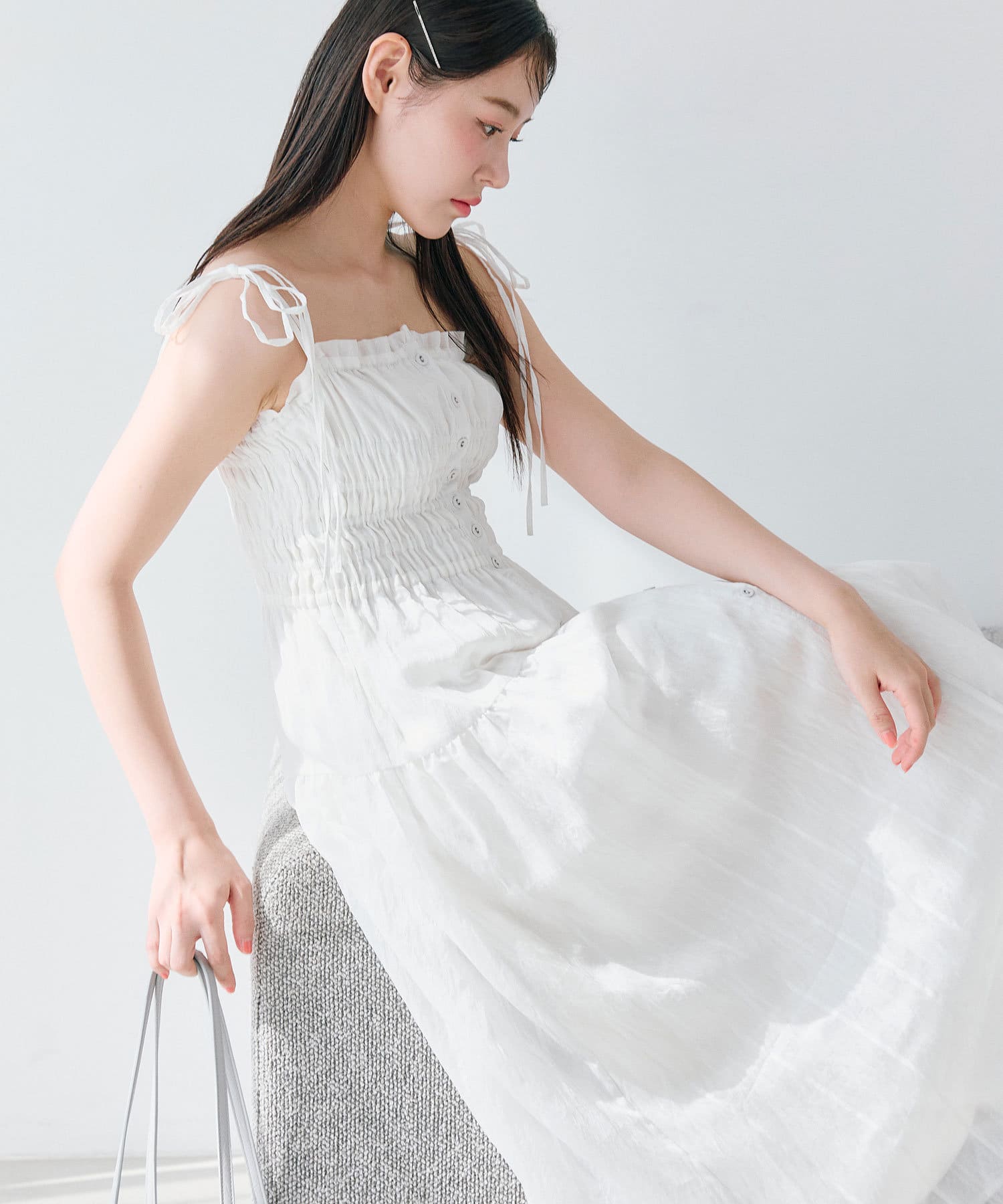 ・着回し力抜群で、華奢見えも叶うデザインのキャミワンピース。