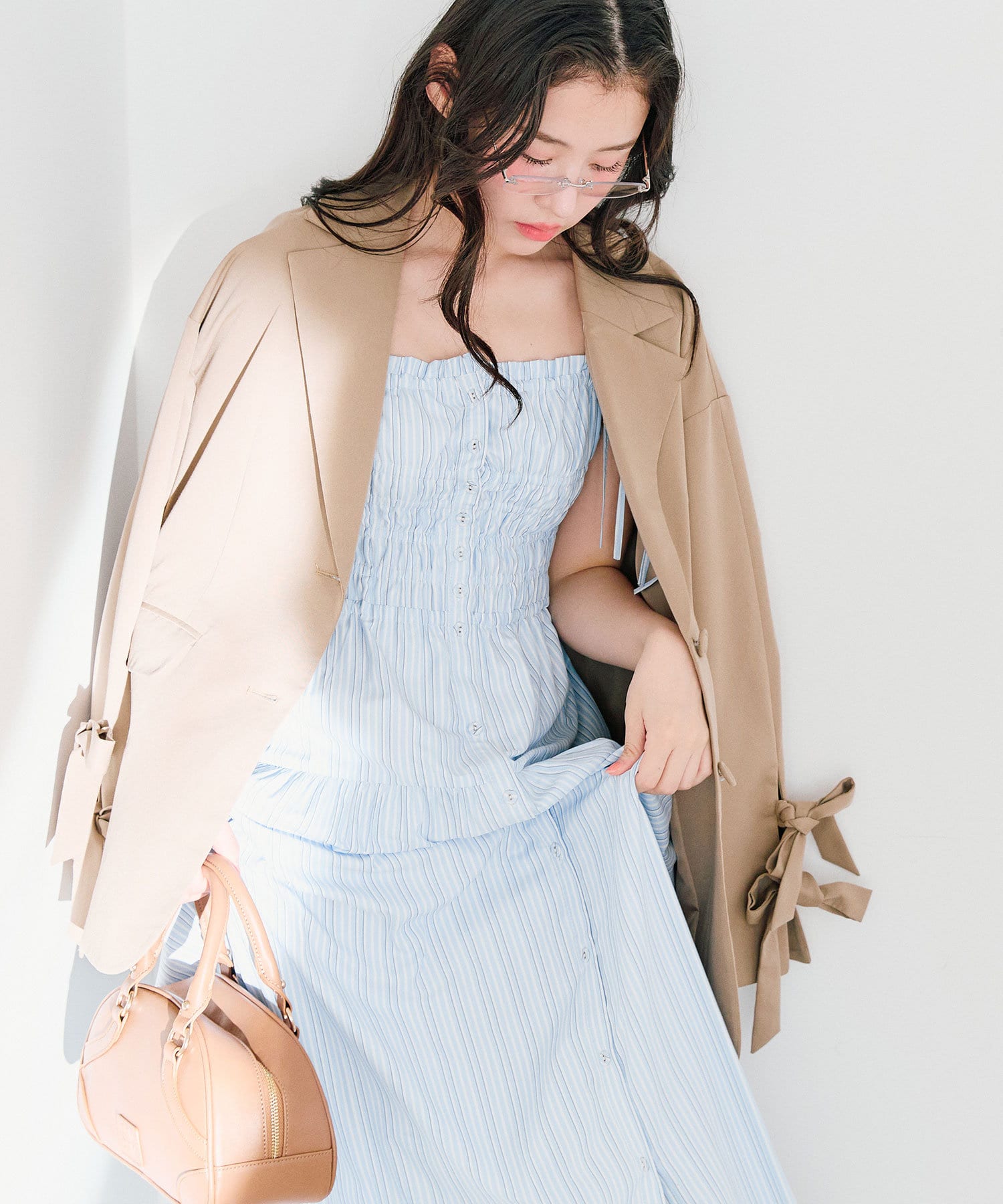 ・カーディガンやレザージャケットなど、羽織るものによって雰囲気を変えて着用していただけます。