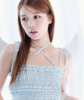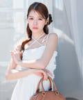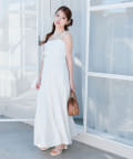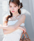 ・紐をクロスして首の後ろで結ぶことで、デコルテラインを華やかに演出します。