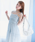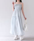 【S/Mサイズ展開】フリルシャーリングキャミワンピ