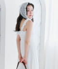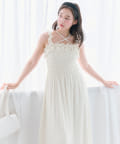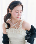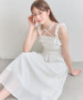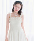 ・肩紐やふわふわのフリルやクロスストラップで、顔周りが華やかな印象になるデザインです。