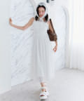 ・肌寒いときは短丈のカーディガンなどを合わせるのがおすすめ。