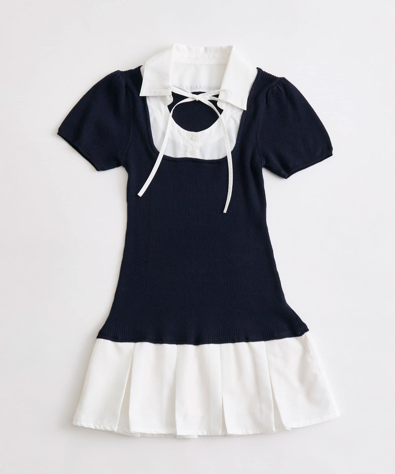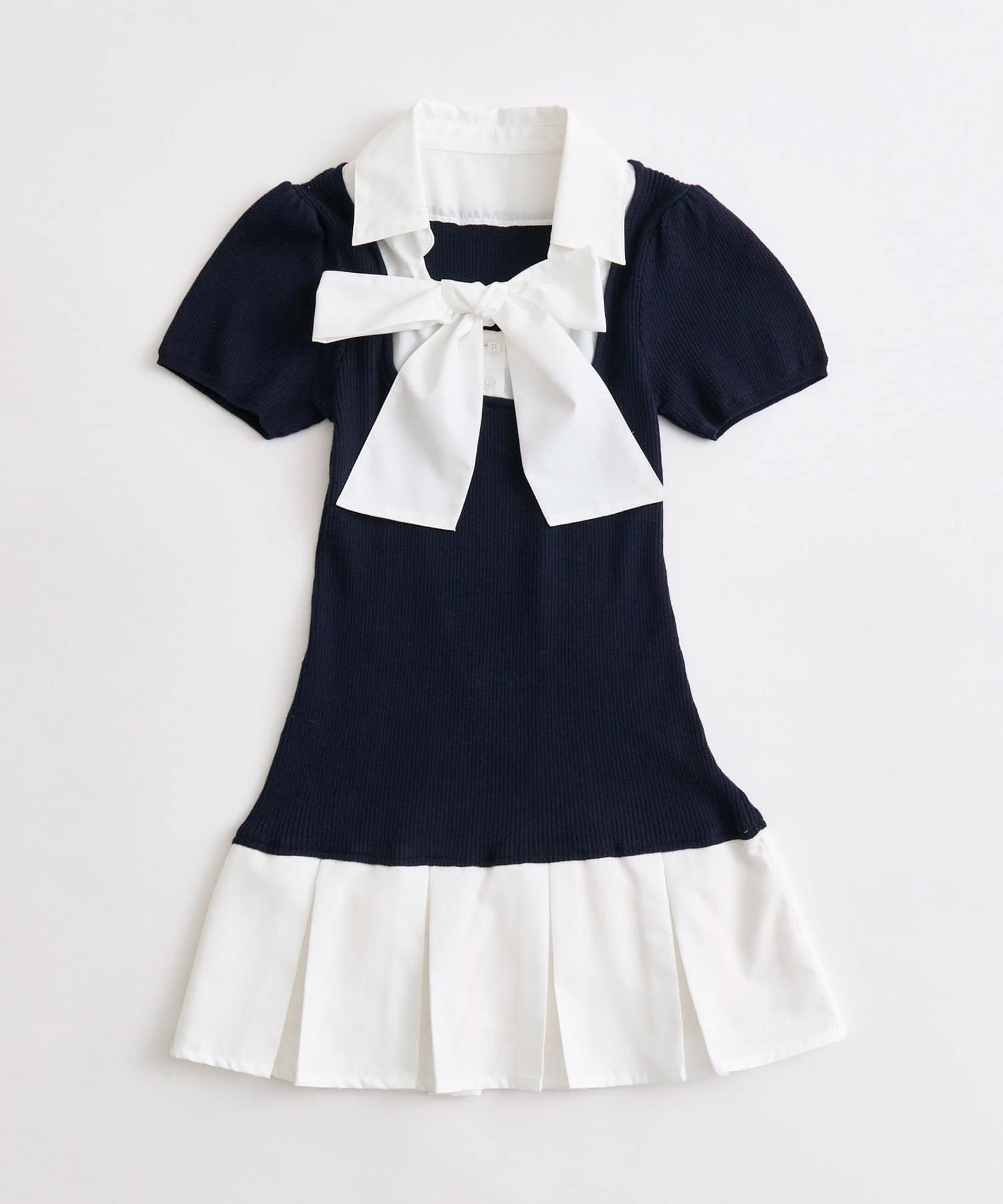 【3WAY/着痩せ◎】ボウタイドッキングワンピ