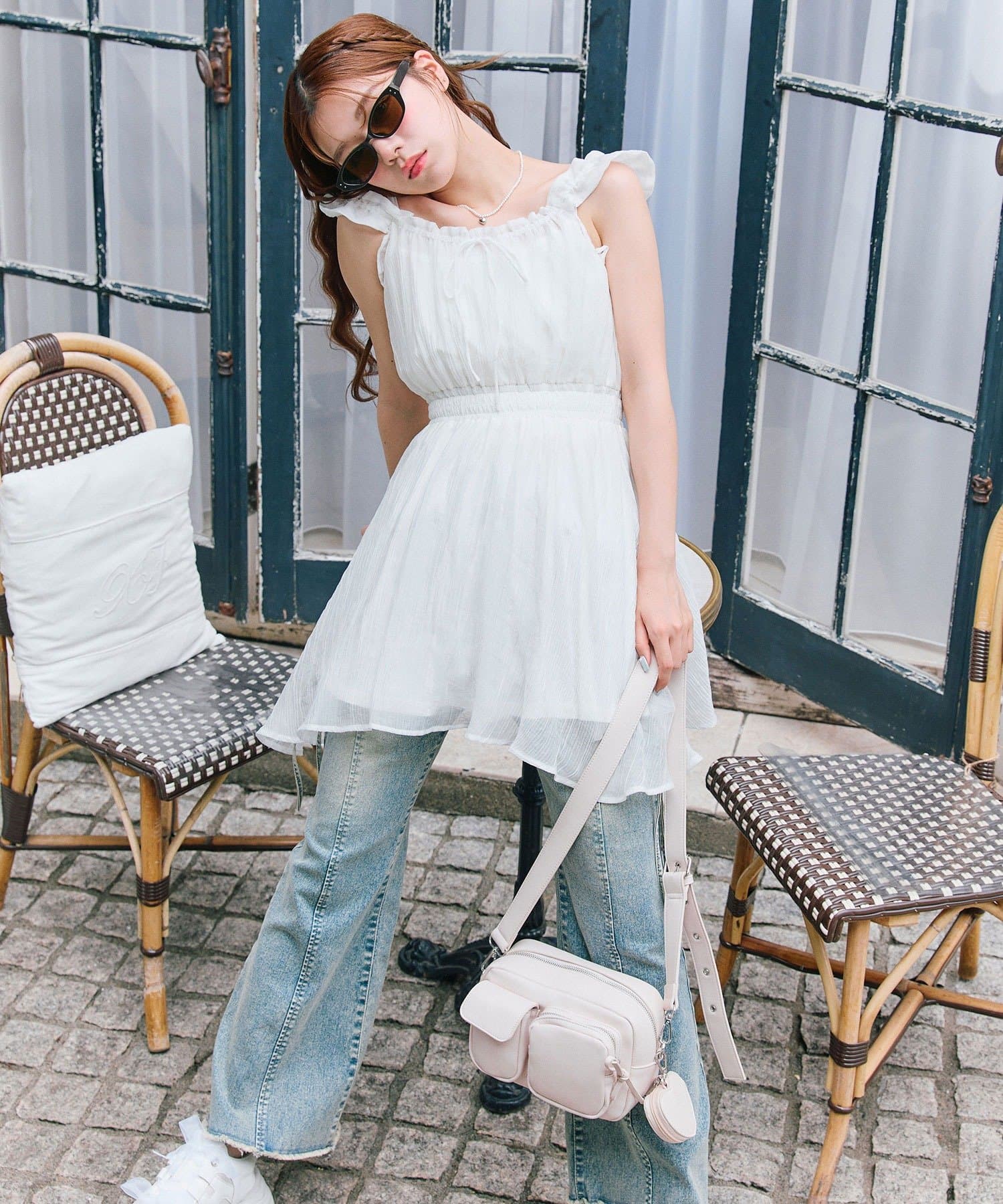 ・肩のフリルは腕に落としても着れるので、気になる二の腕をカバーしてくれます。