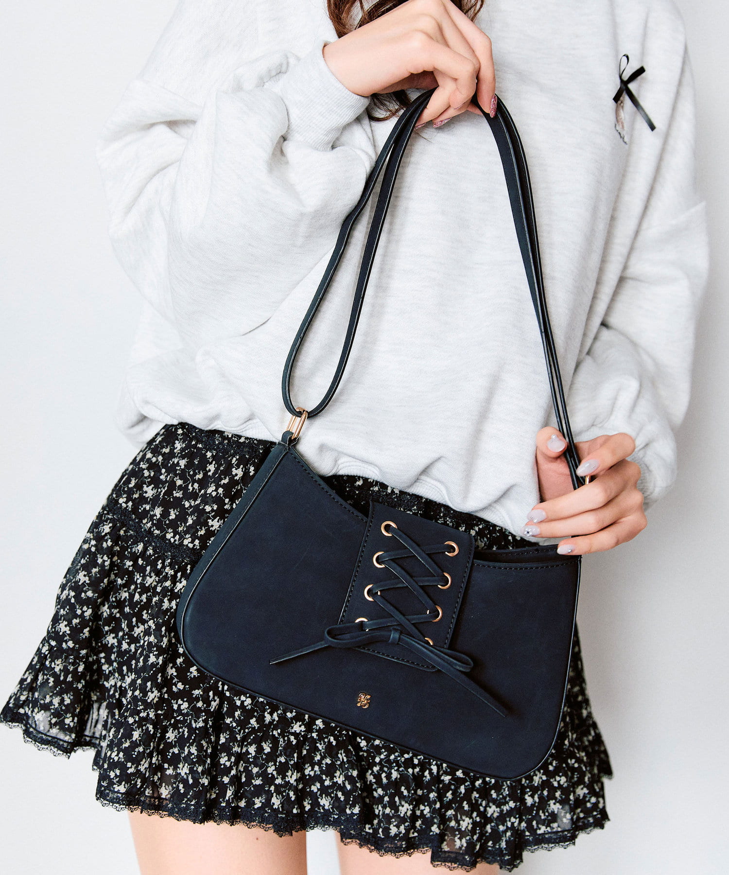 ・レースアップが目を惹くデザインで、女性らしさを演出します。
