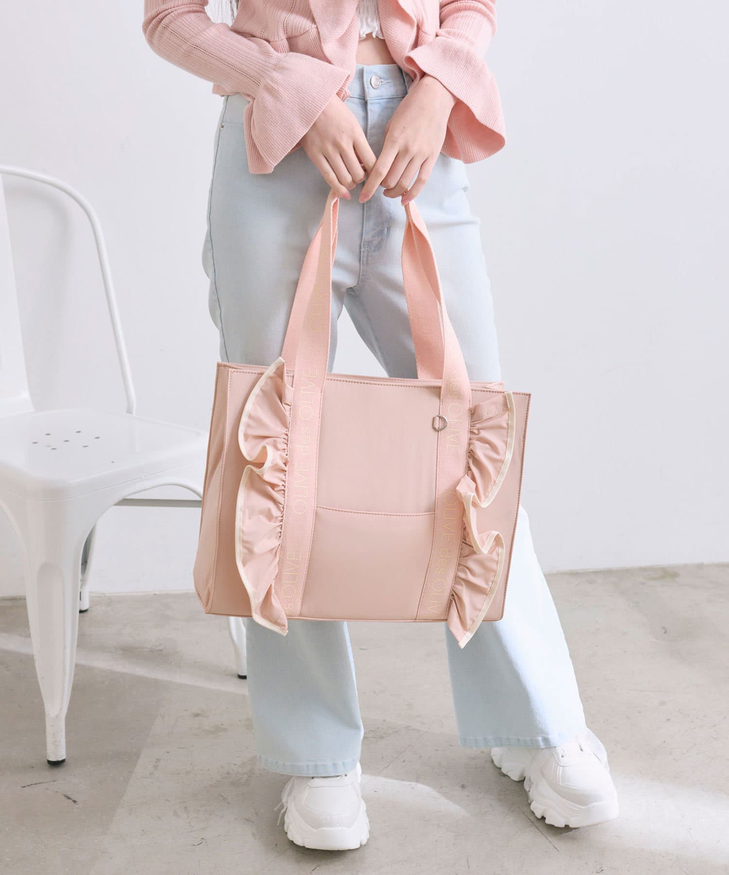 【ノートパソコンも入る!/通学におすすめ】トリミングフリルトート