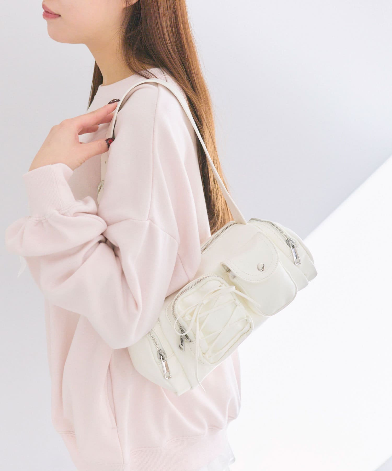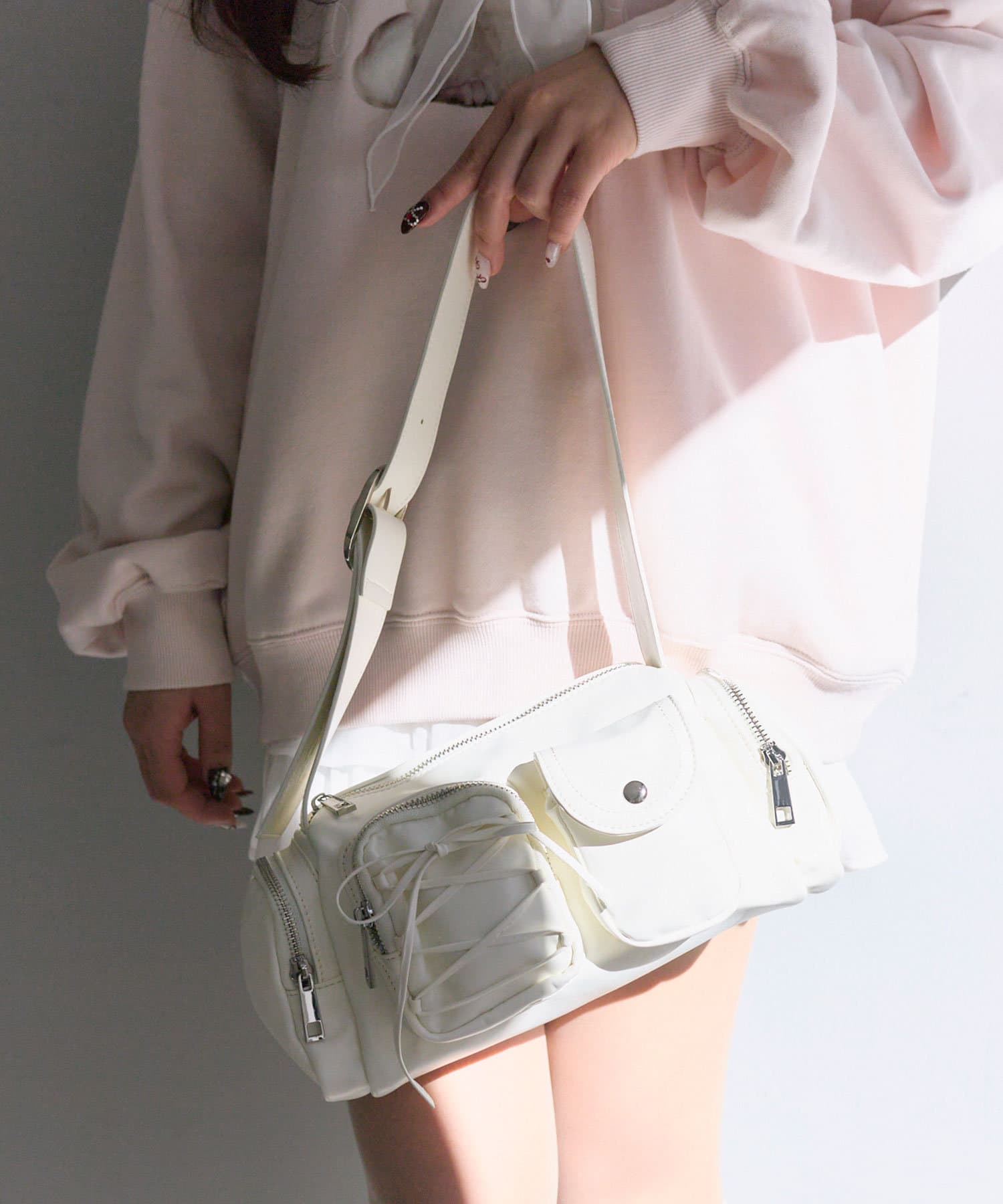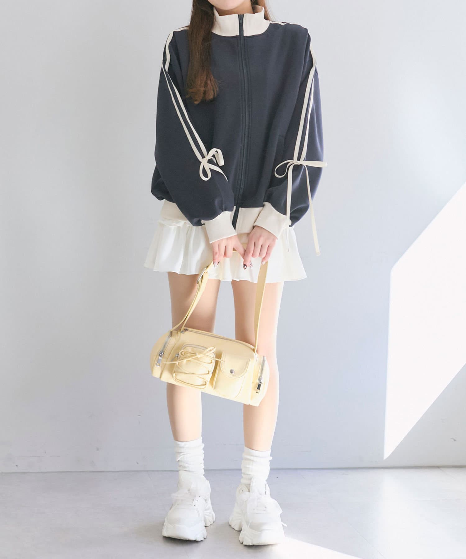 ・レースアップデザインがコーデに甘さをプラスするデザイン。