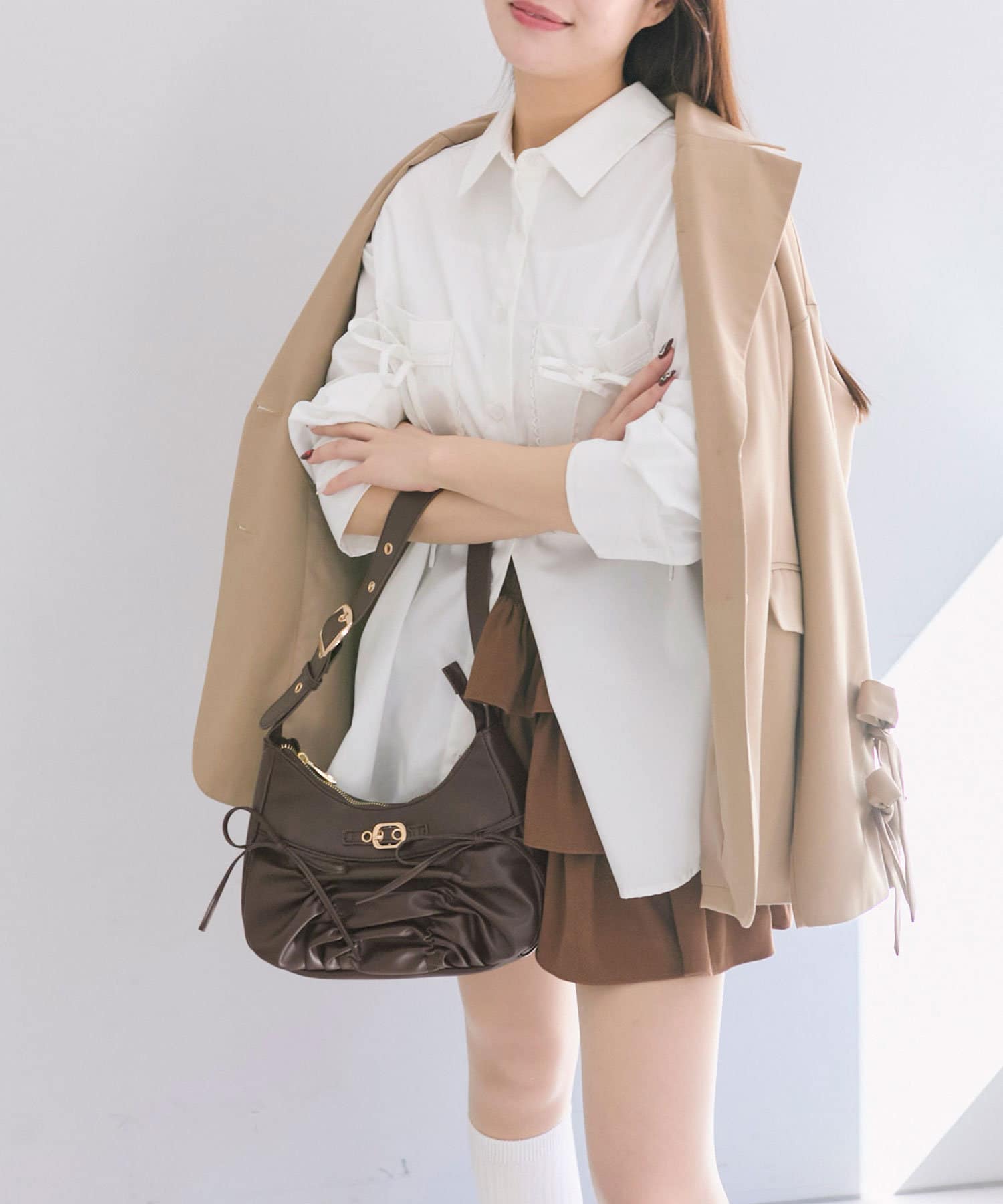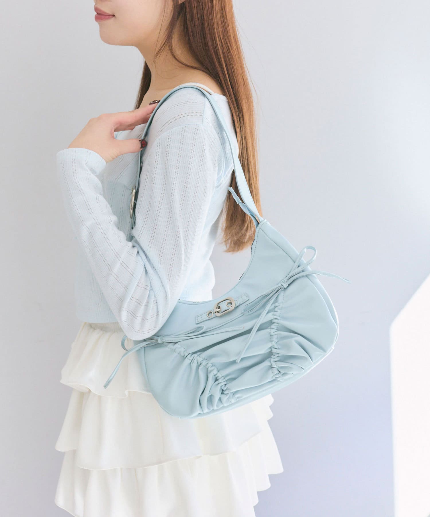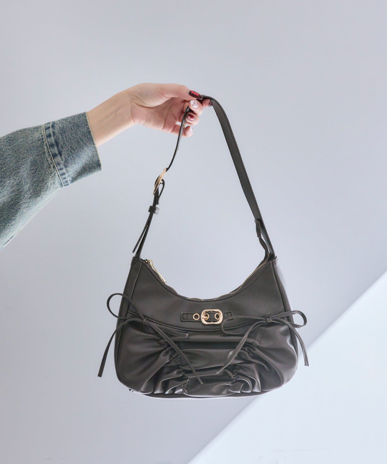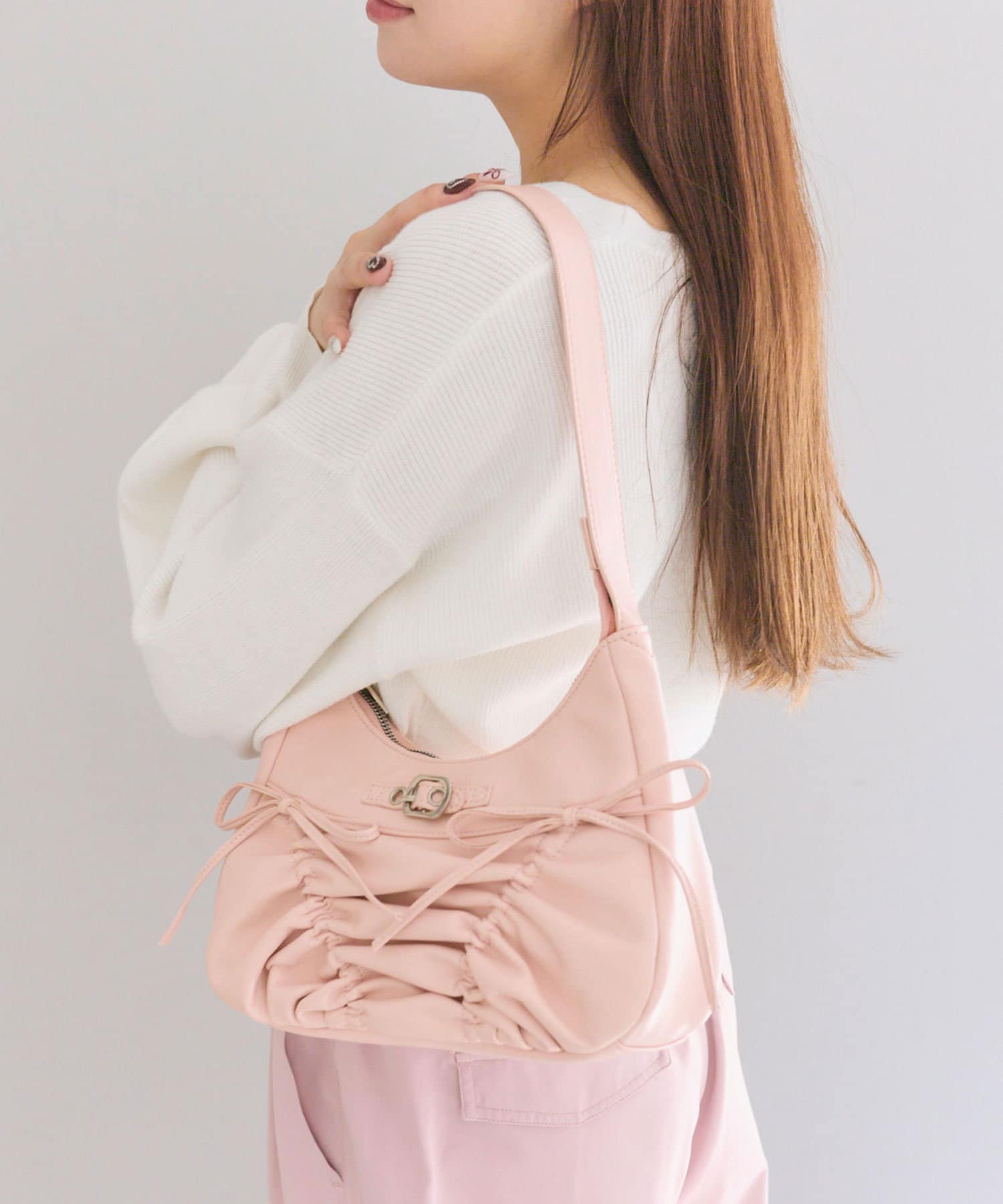 ・ドロストリボンが目を惹くデザインで、コーデにトレンド感をプラスします。
