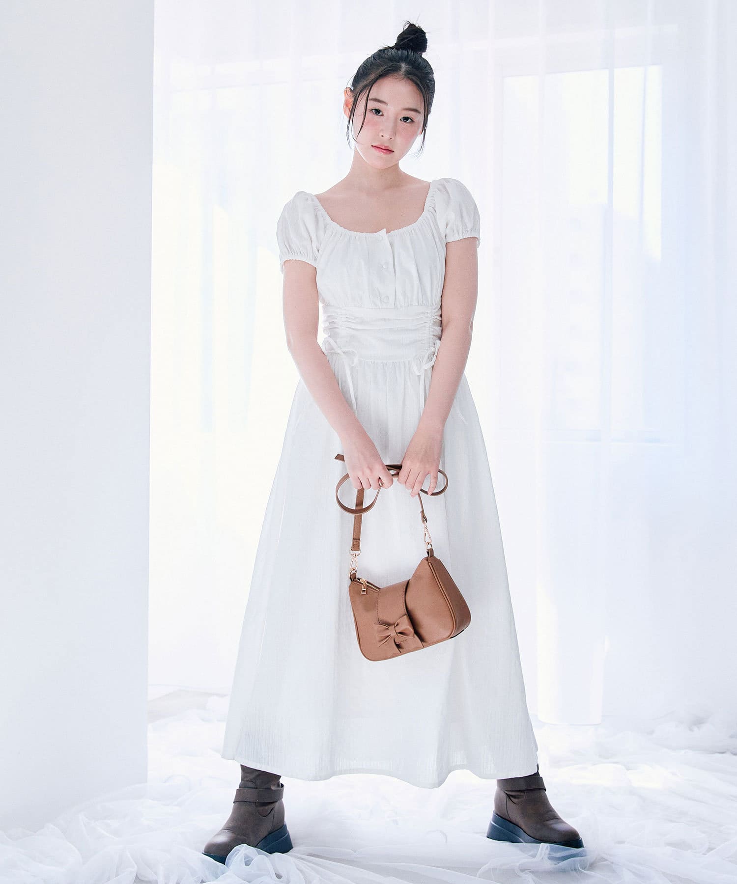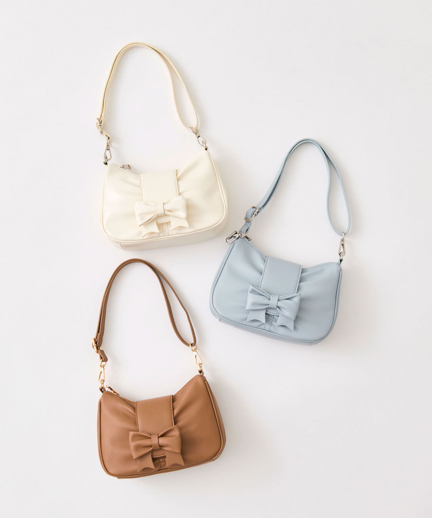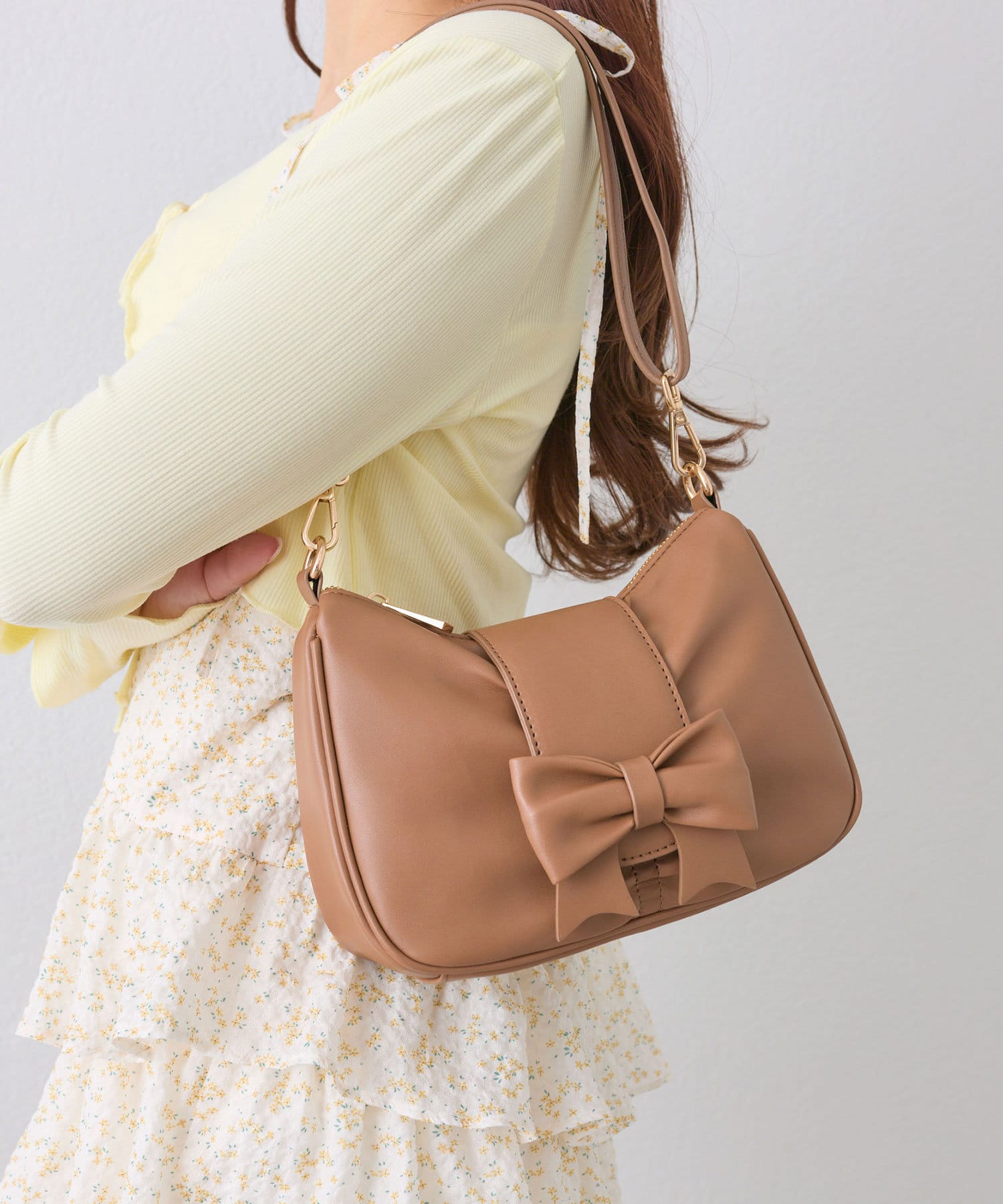・シンプルなバッグにリボンが付いたデザインで、コーデに程よく甘さをプラスします。