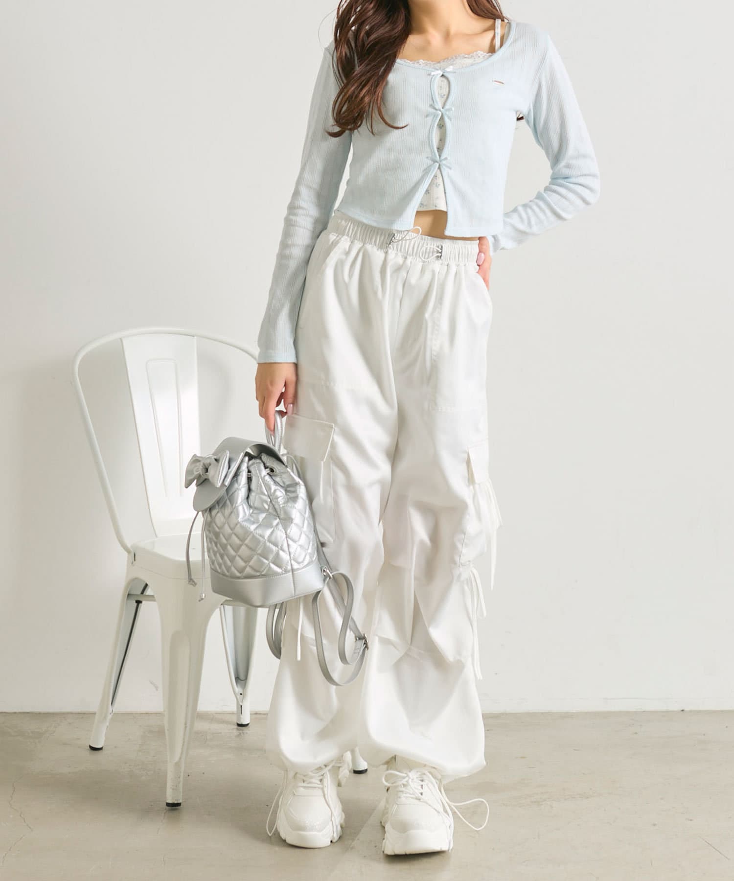 ・大きなリボンがポイントで、丸みを帯びたフォルムと小さめサイズが女の子らしいデザイン。
