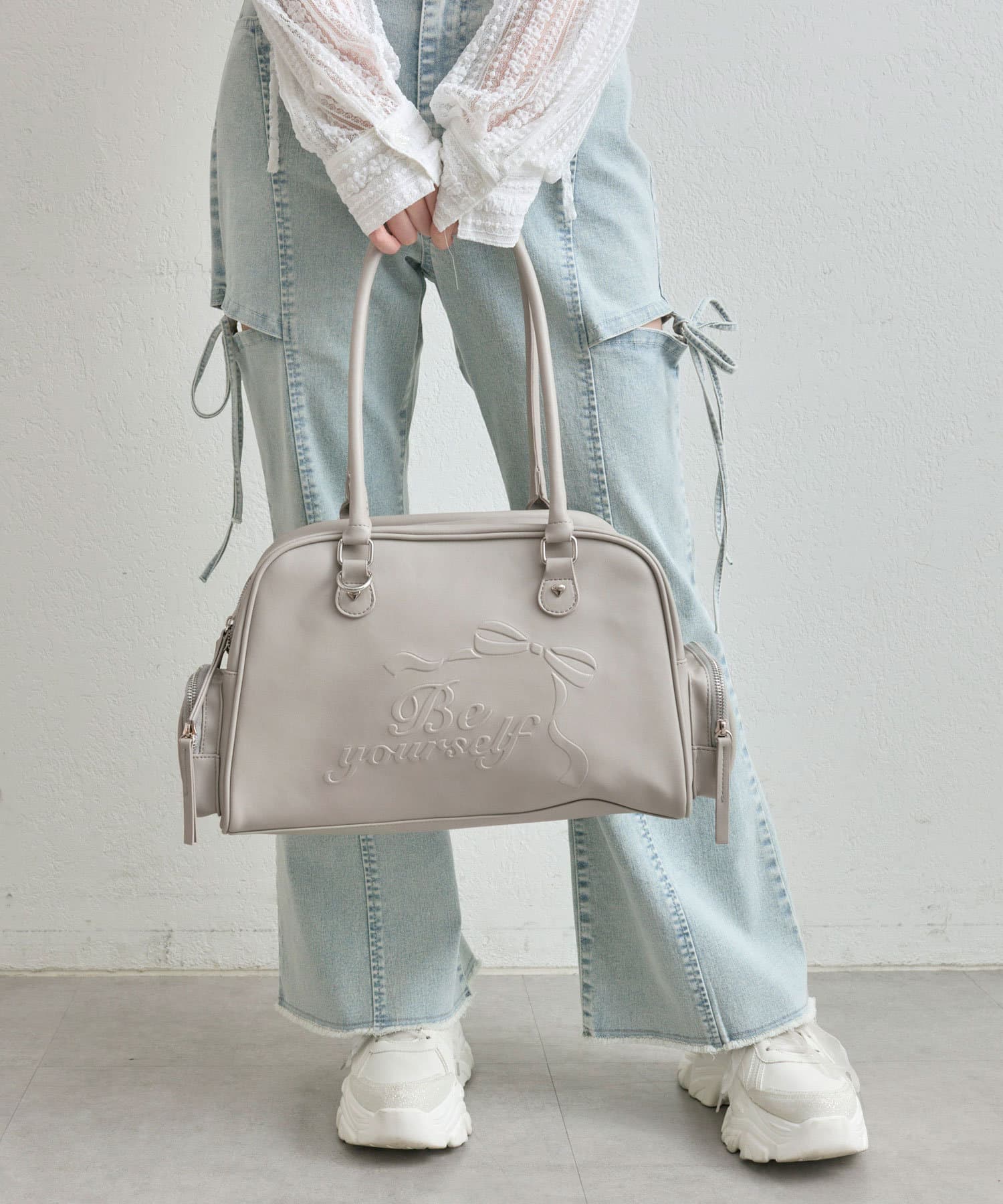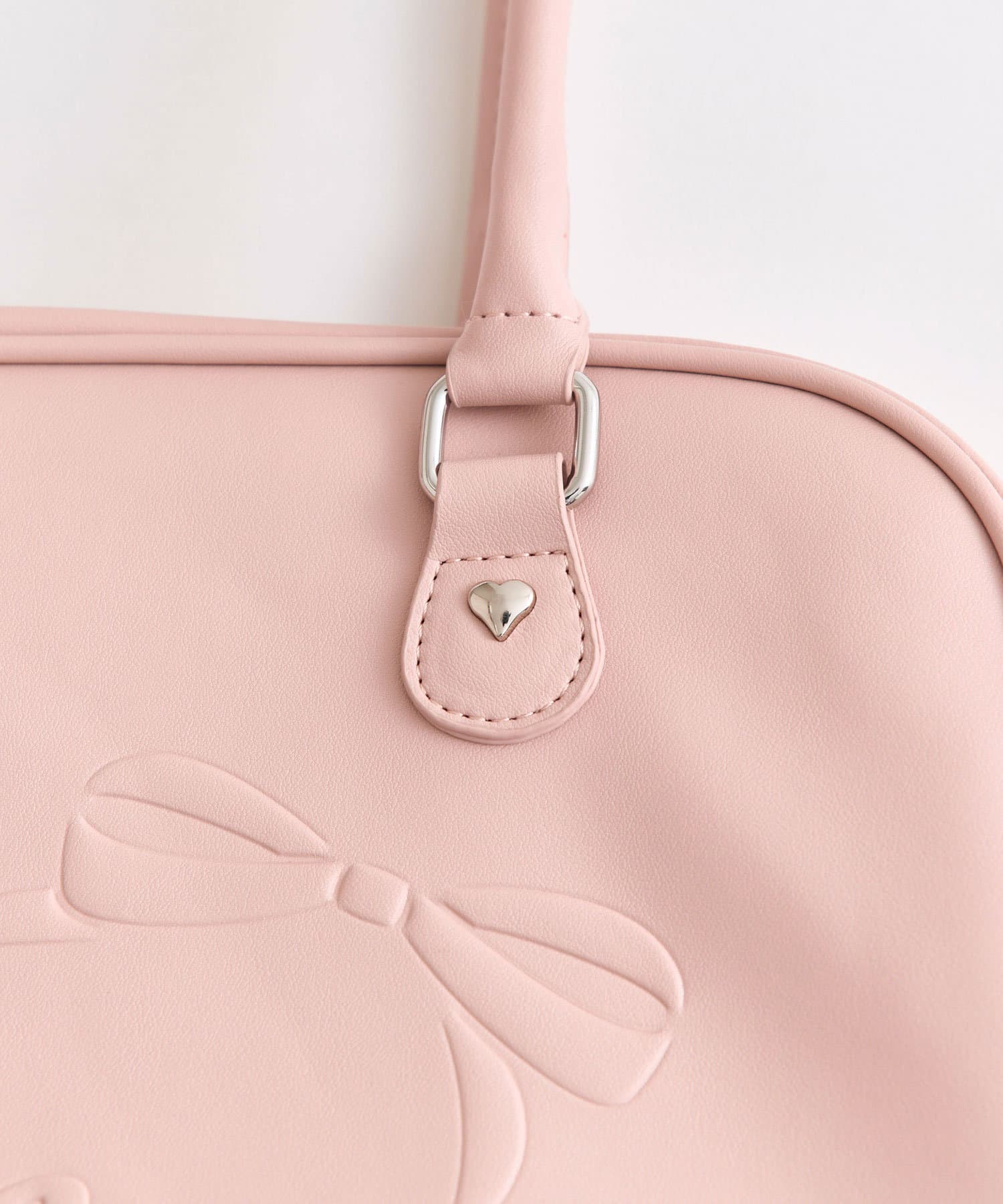 ・リボンのエンボスがポイントで、ガーリーからカジュアルまで幅広いコーデに合わせやすいデザインです。
