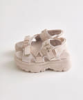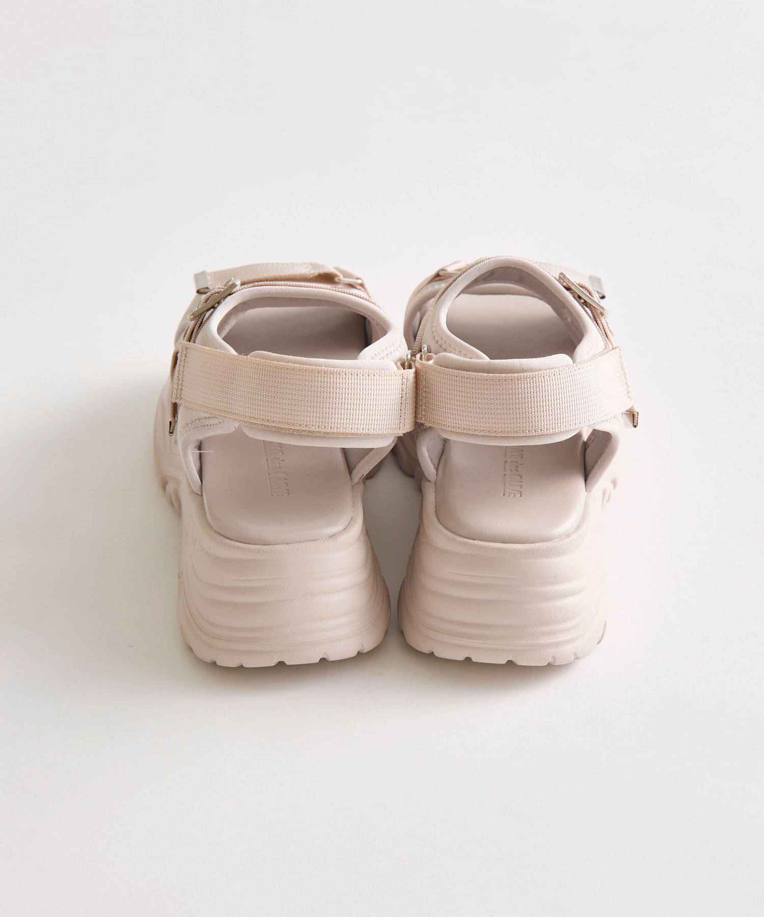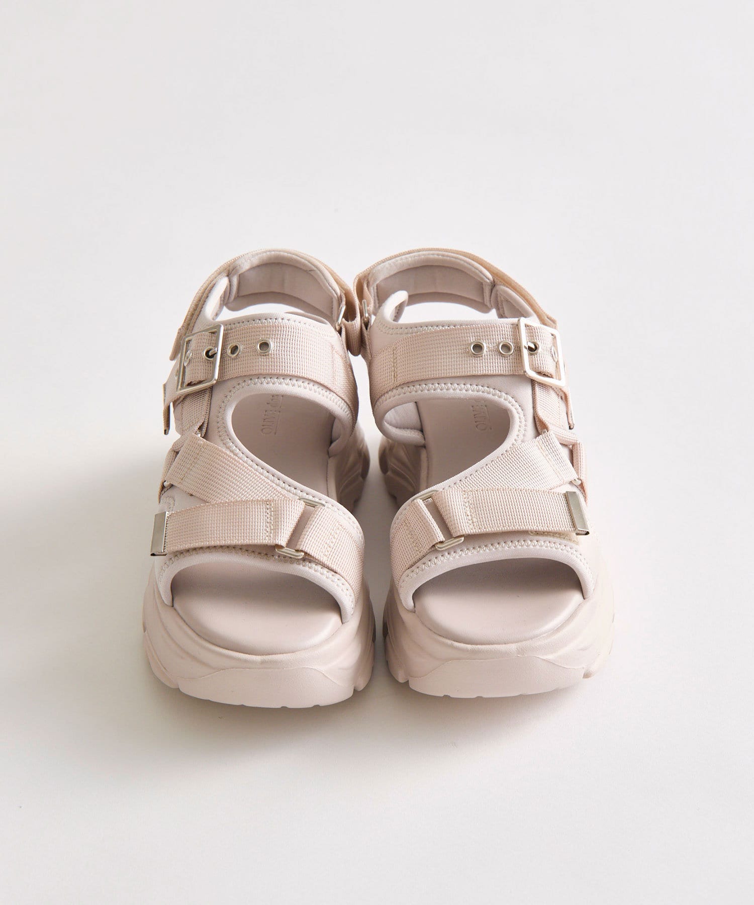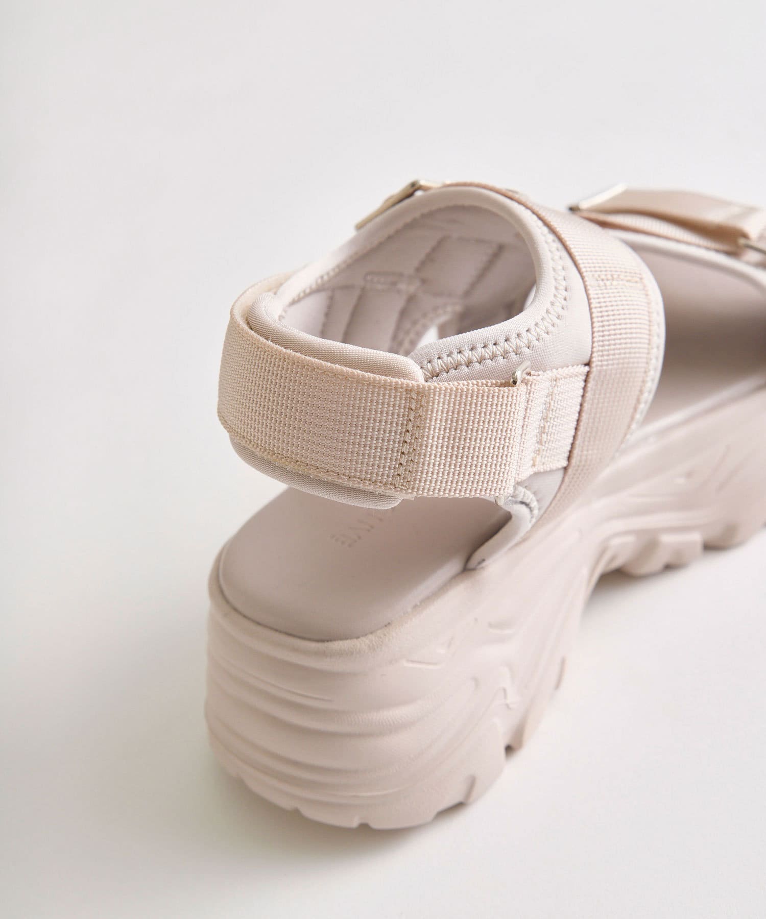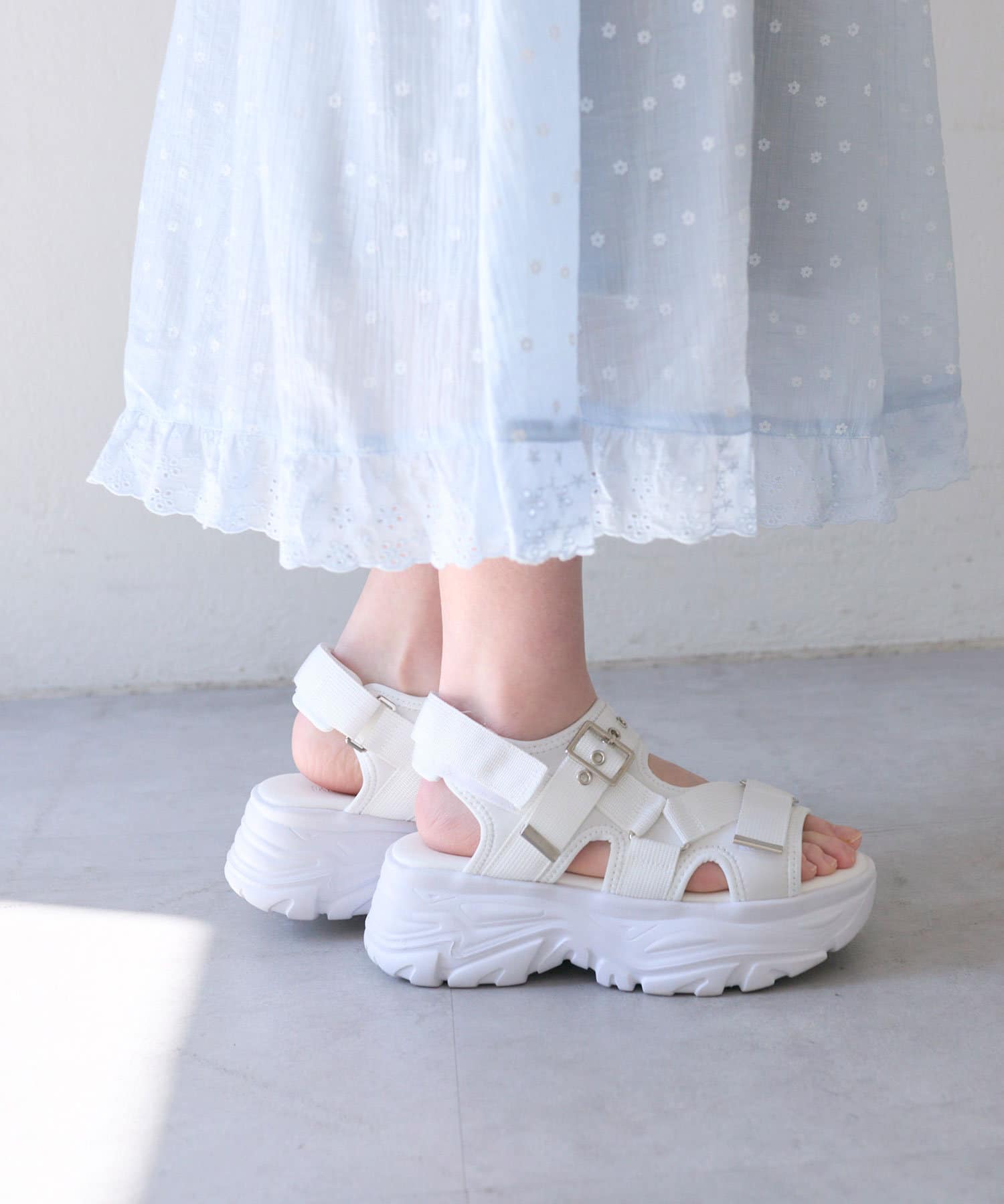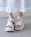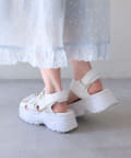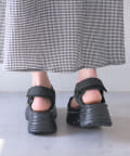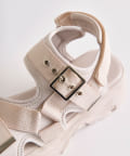目を惹くバックルがポイントの厚底サンダル