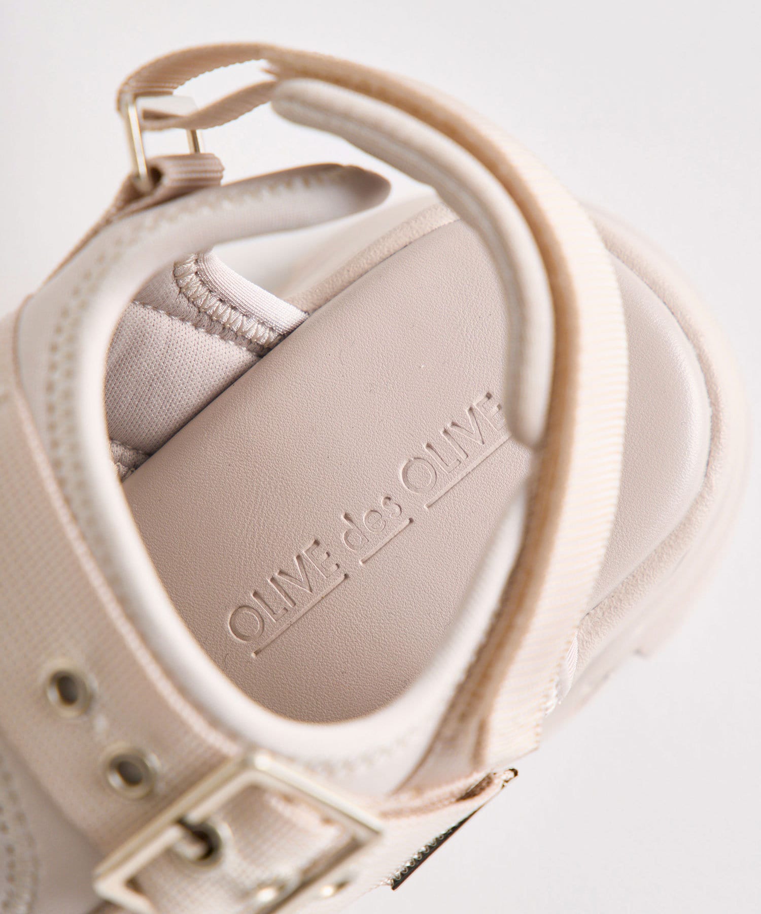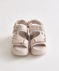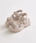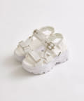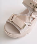目を惹くバックルがポイントの厚底サンダル