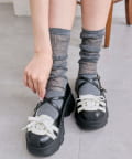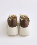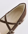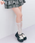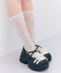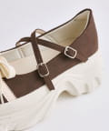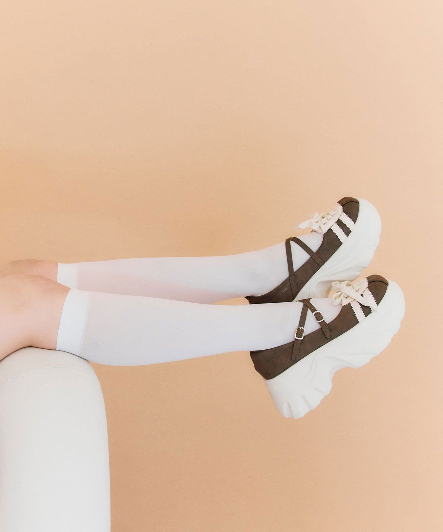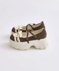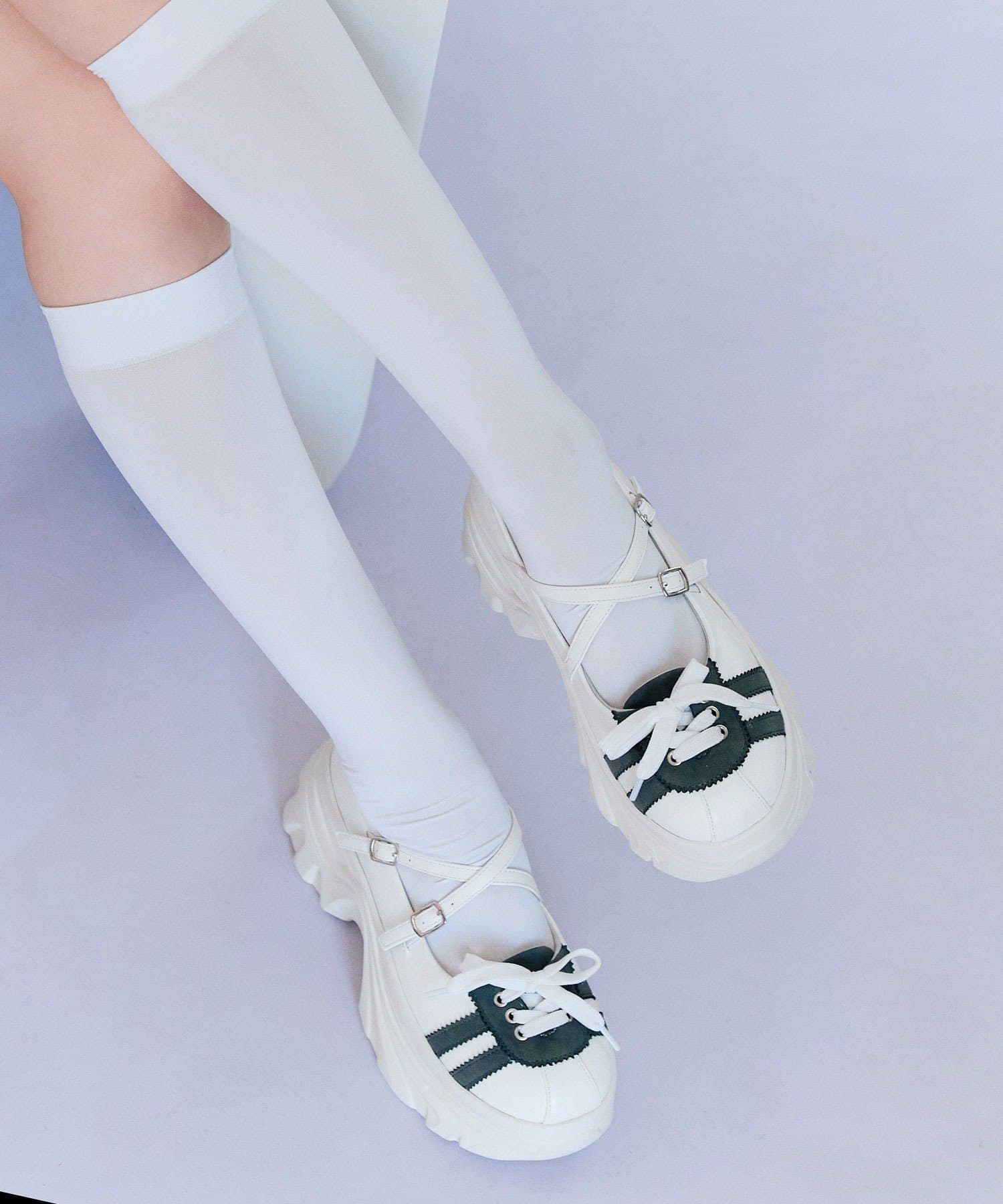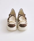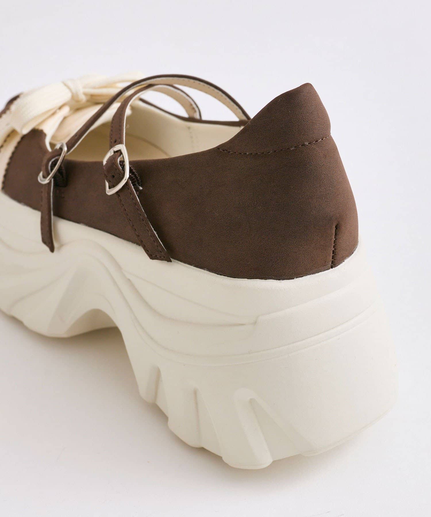 ・レースアップ風デザインと切り替え配色が、甘さを引き締めてくれます。