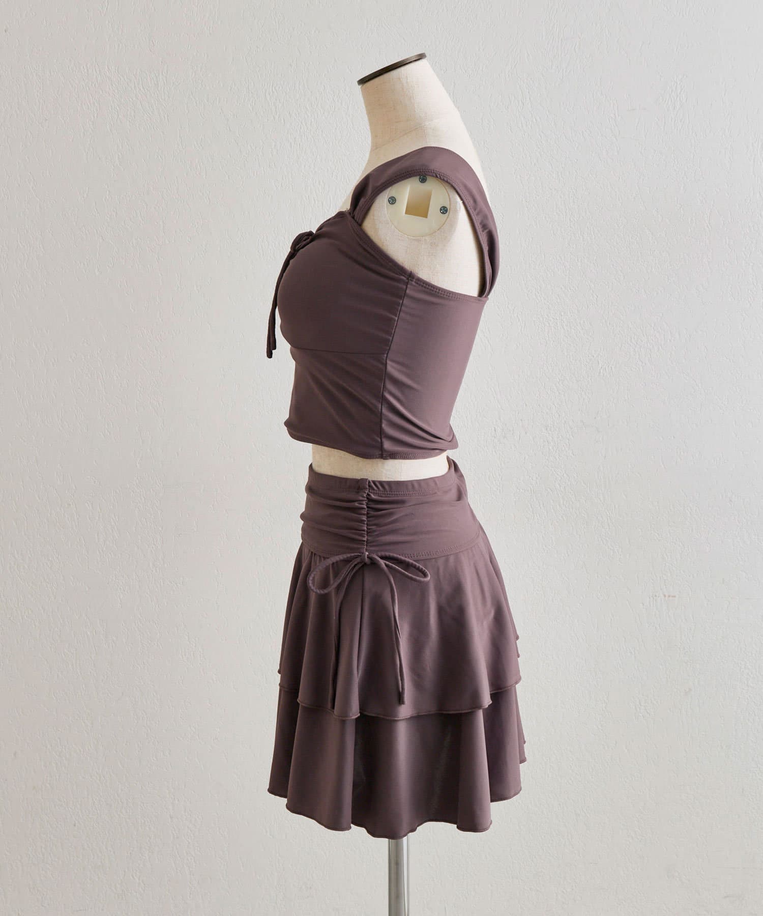 ・透け感のある羽織り付きで肌の露出を抑えつつ、体型カバーや日焼け対策にも効果的です。