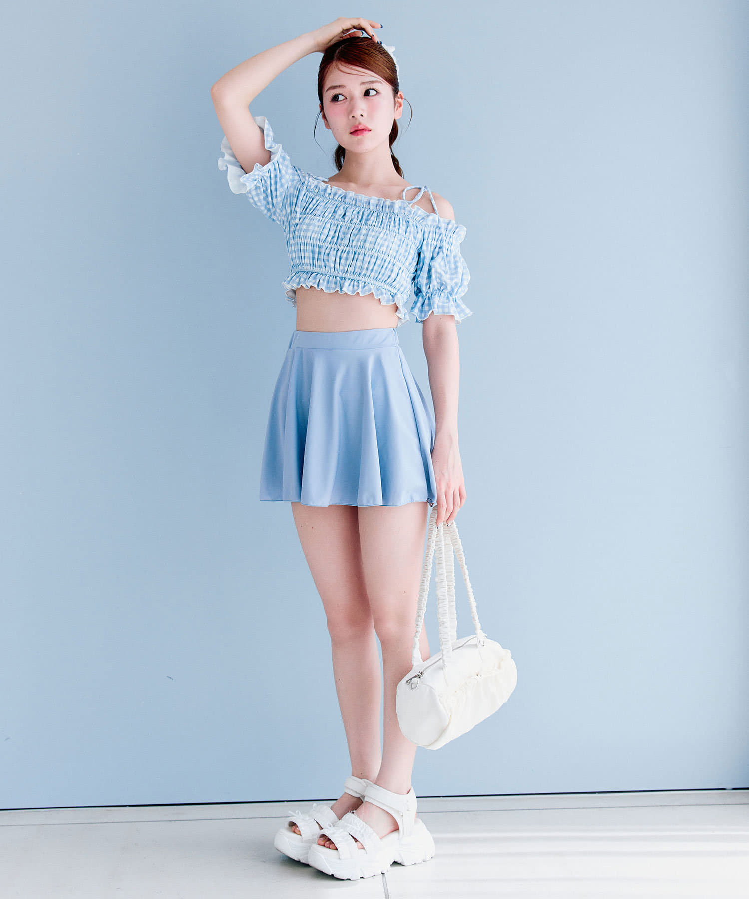 ・かわいく体型カバーでき、トレンドカラーで映えること間違いなしの水着。