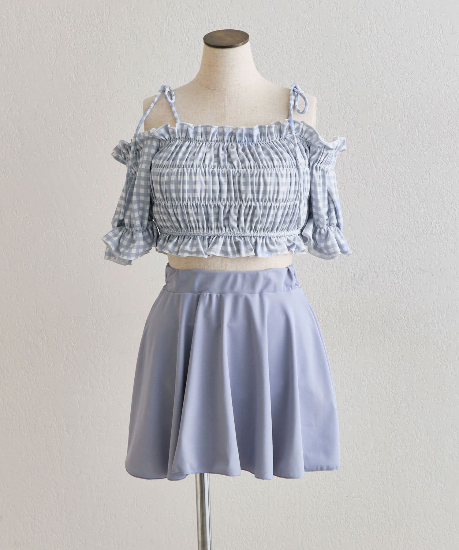 ・洋服を着ている感覚で、露出を控えたうれしい水着のセットです。