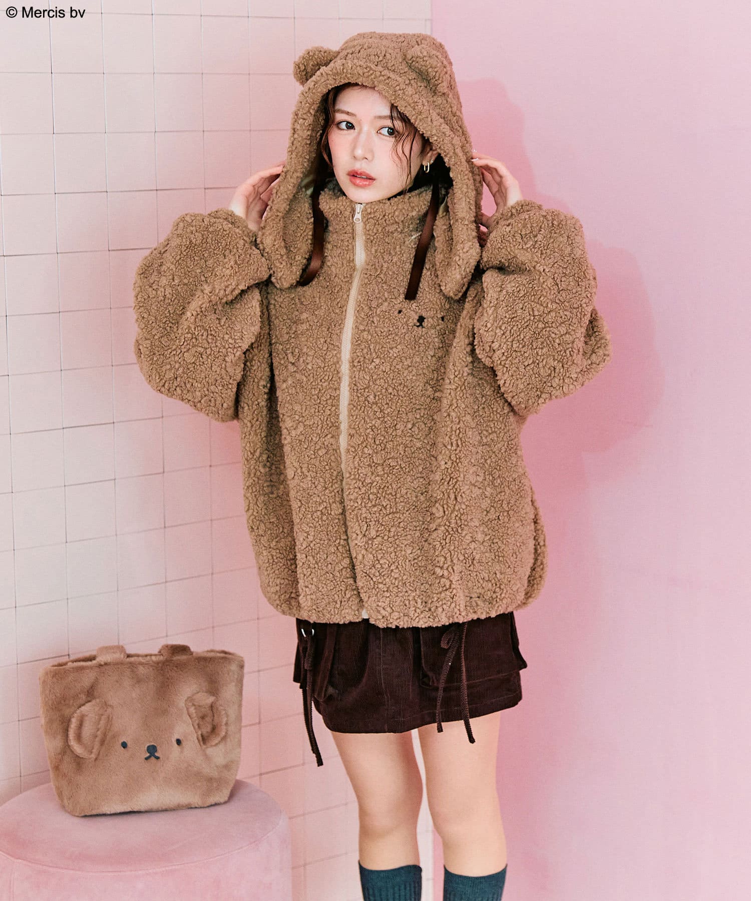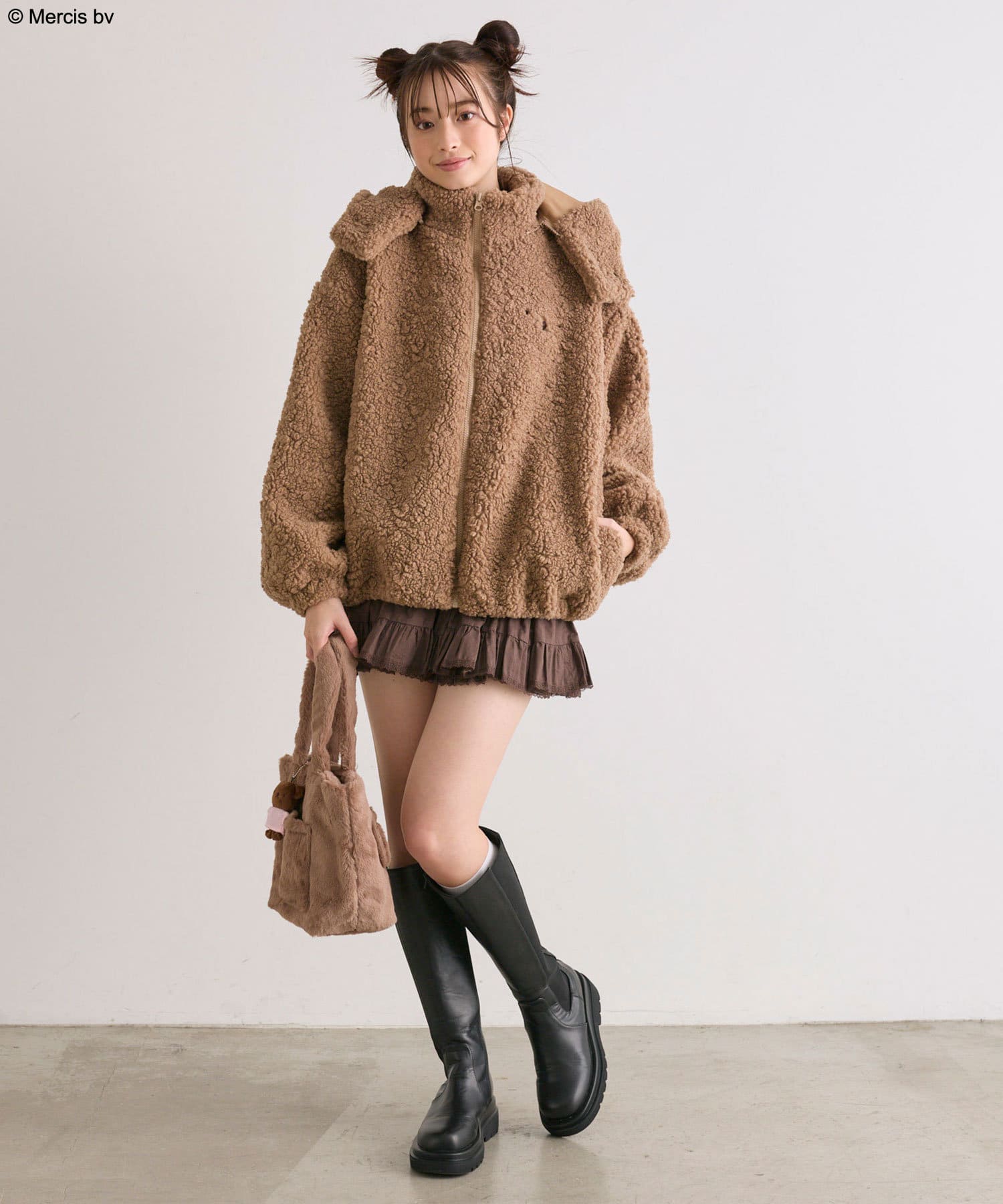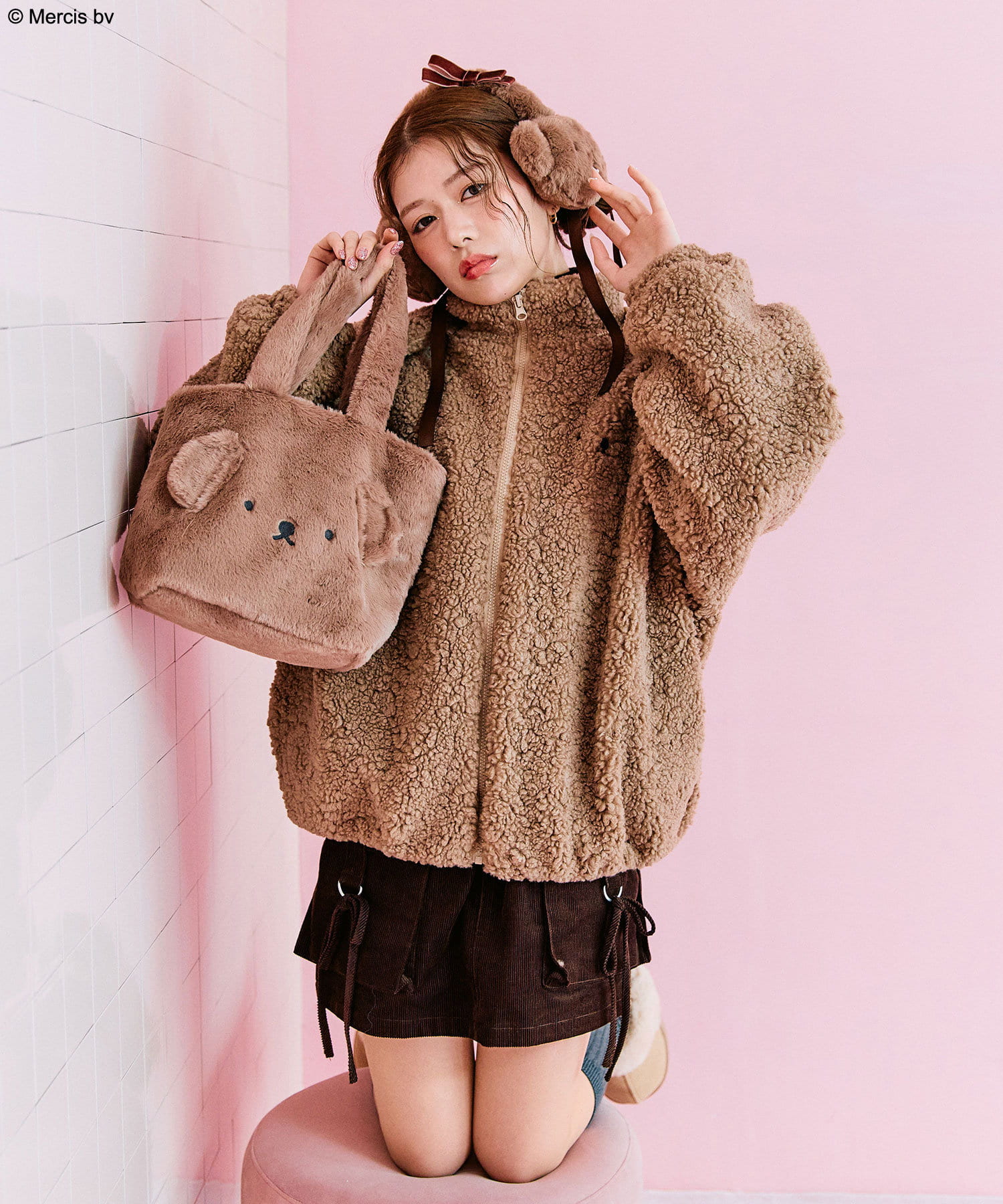 ・冬にぴったりなふわふわのファー素材で、フロントに耳と顔刺繍を施したデザインです。