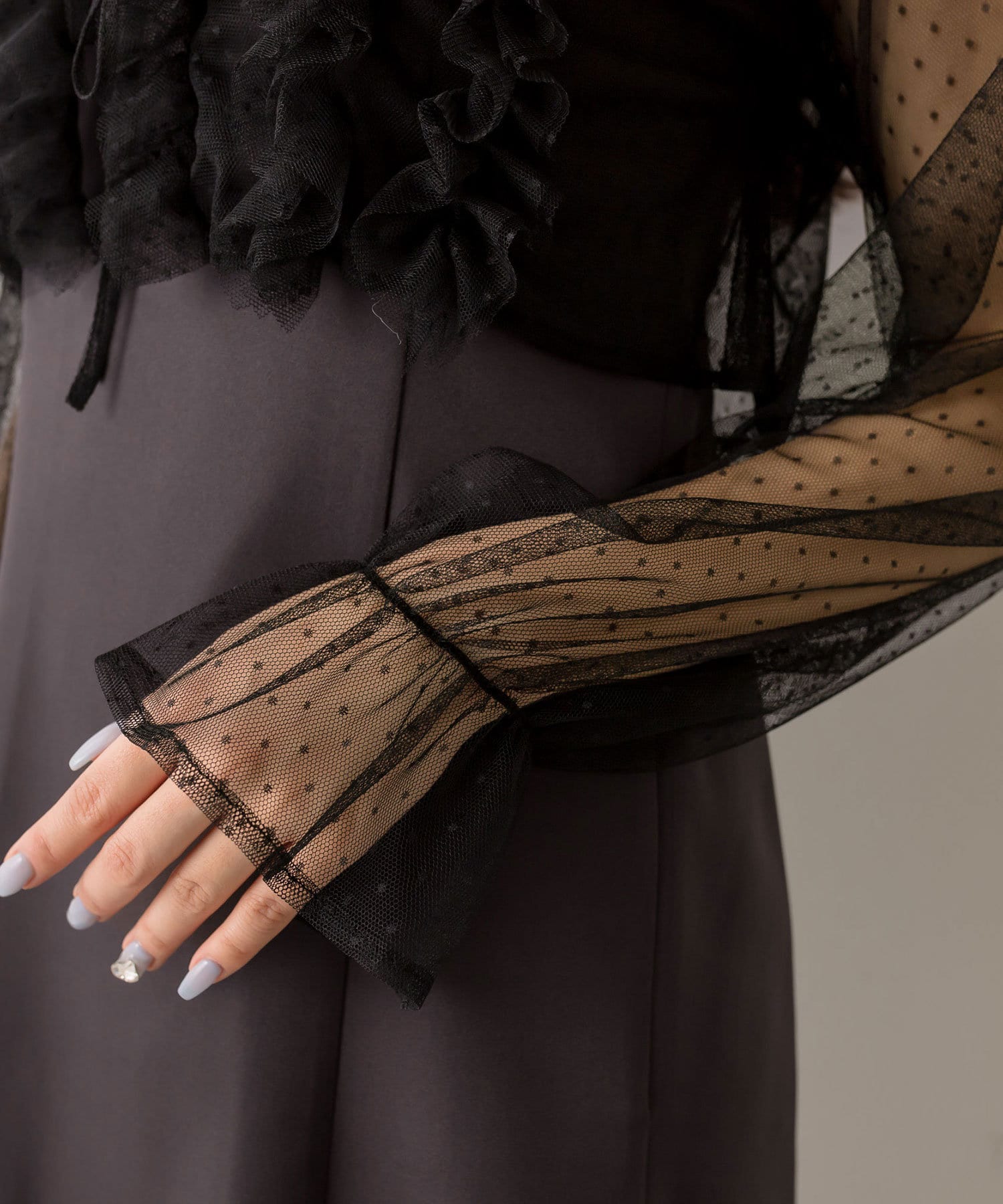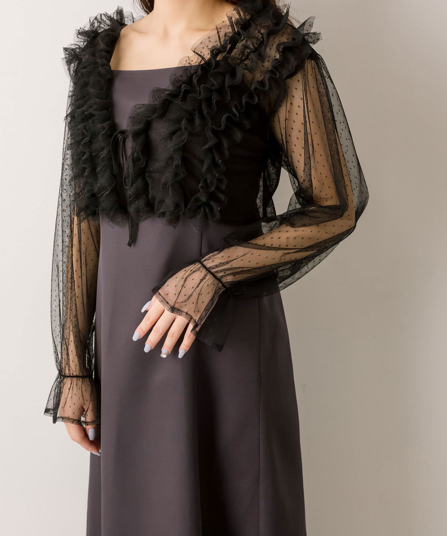 ・ボレロは透け感のあるチュール素材で程よい肌見せができて、女性らしさを演出。