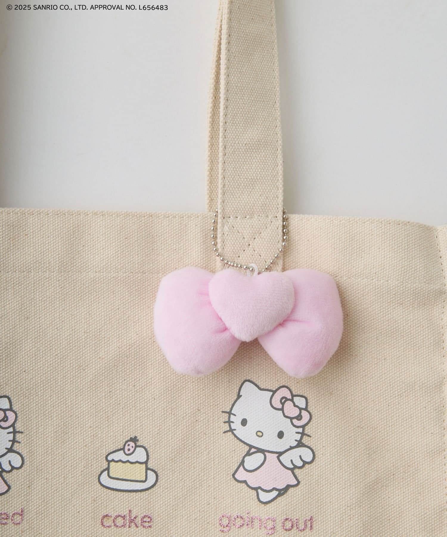 キティちゃんのプリントとリボンチャームがかわいいトートバッグ