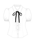 ・リボンは取り外し可能になってるので、オフィスカジュアルの方でもきれるキレイめブラウスになります。