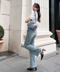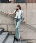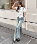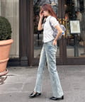 ・デニムパンツを合わせると大人カジュアルな着こなしに。