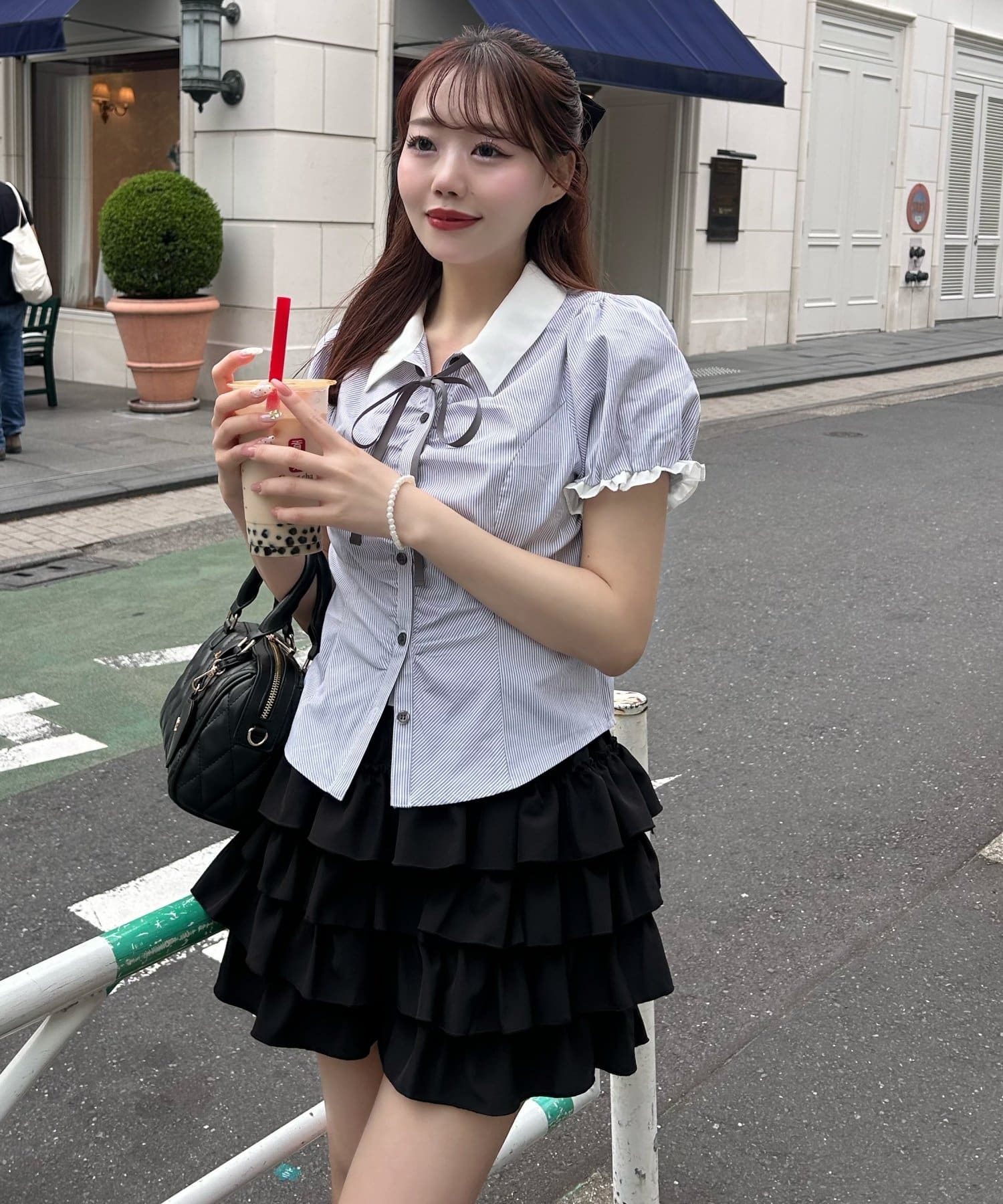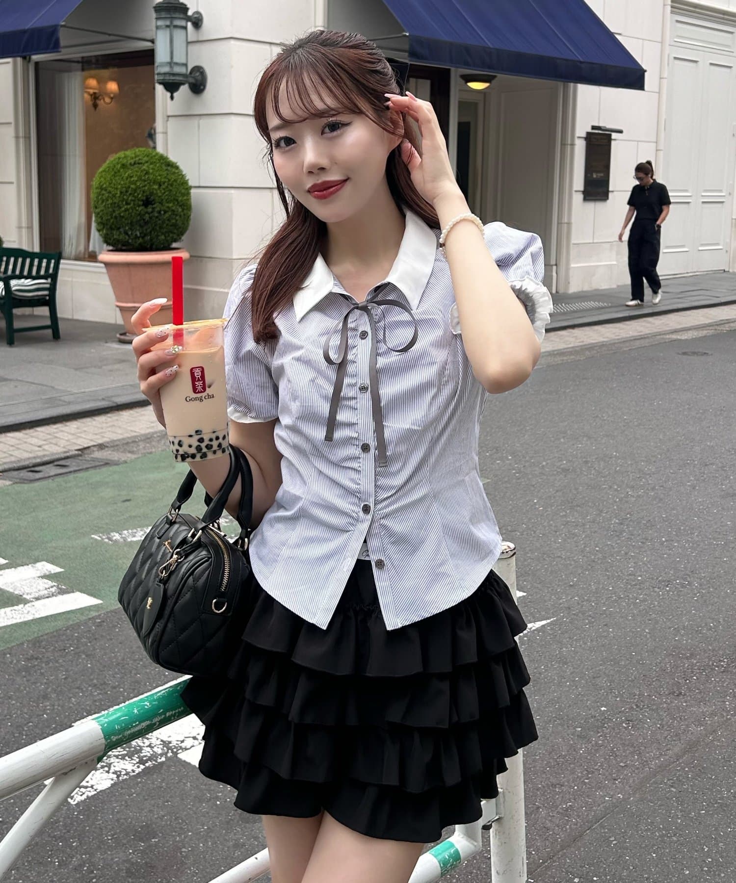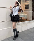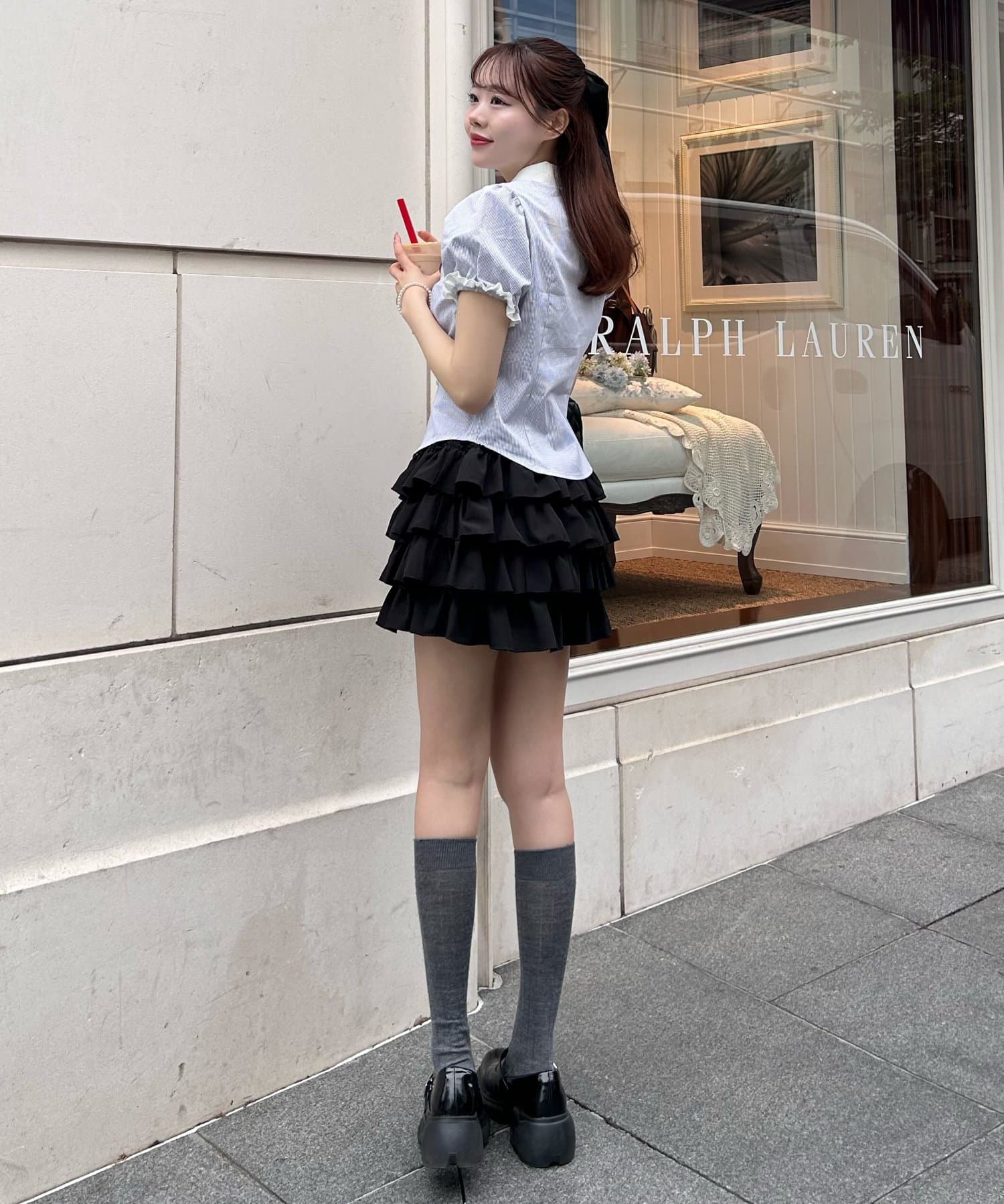 ・ティアードスカートを合わせてガーリーにまとめるのがおすすめ。