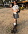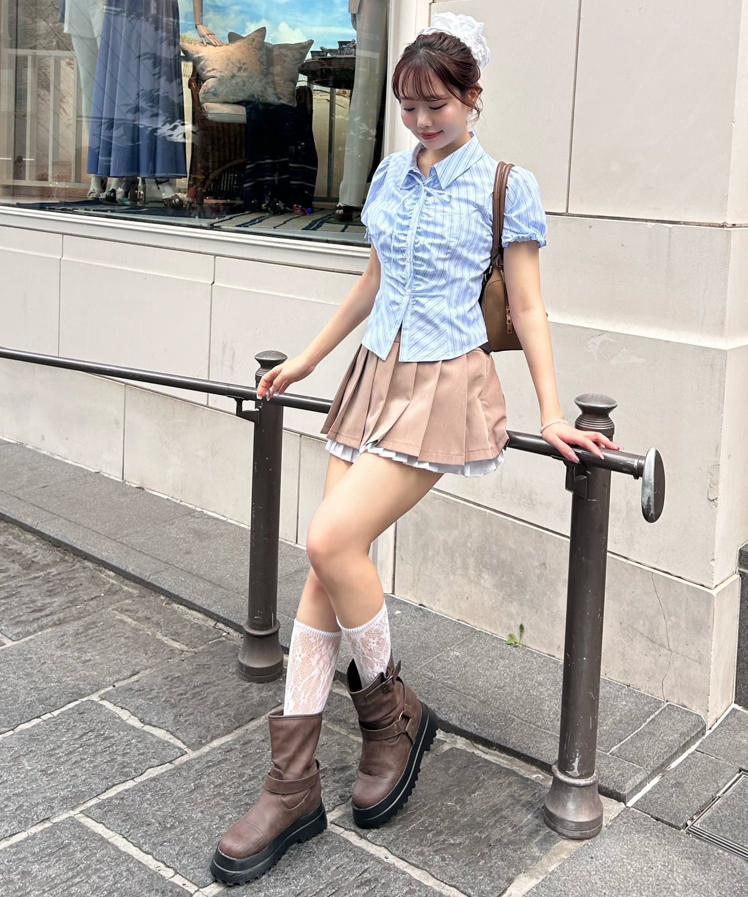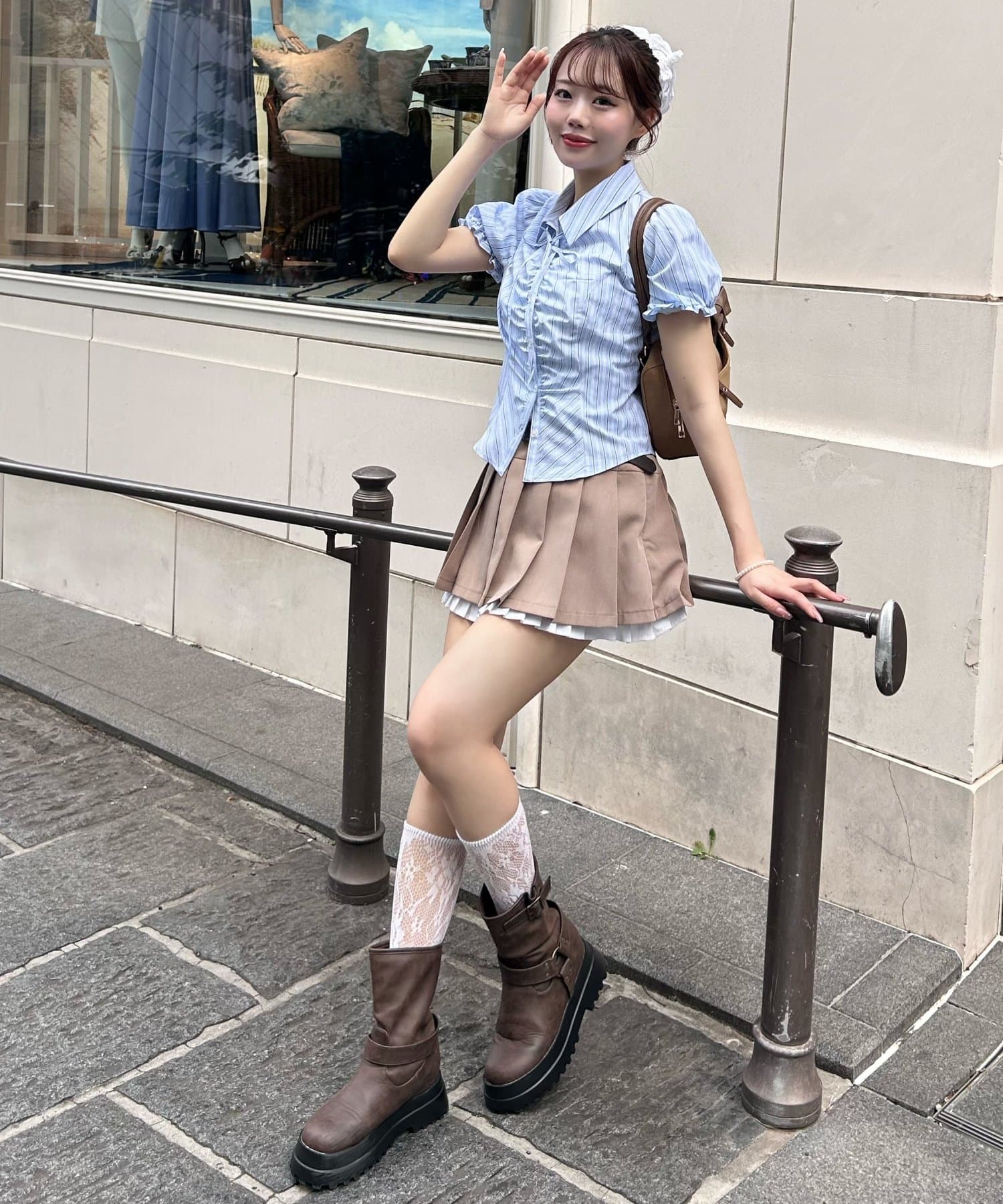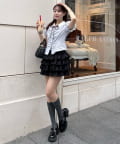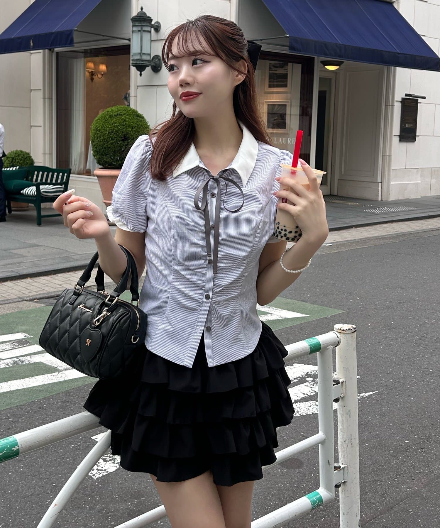 ・ティアードスカートを合わせてガーリーにまとめるのがおすすめ。