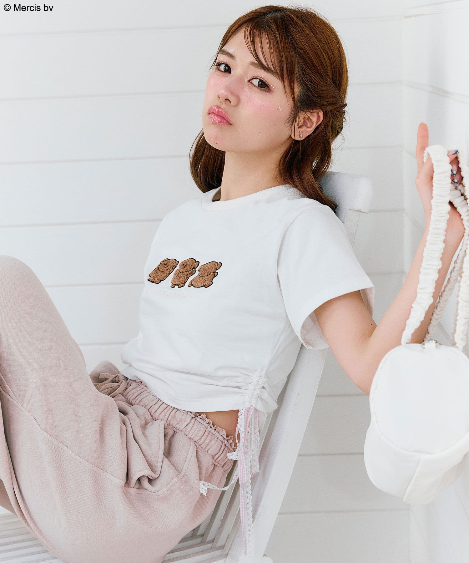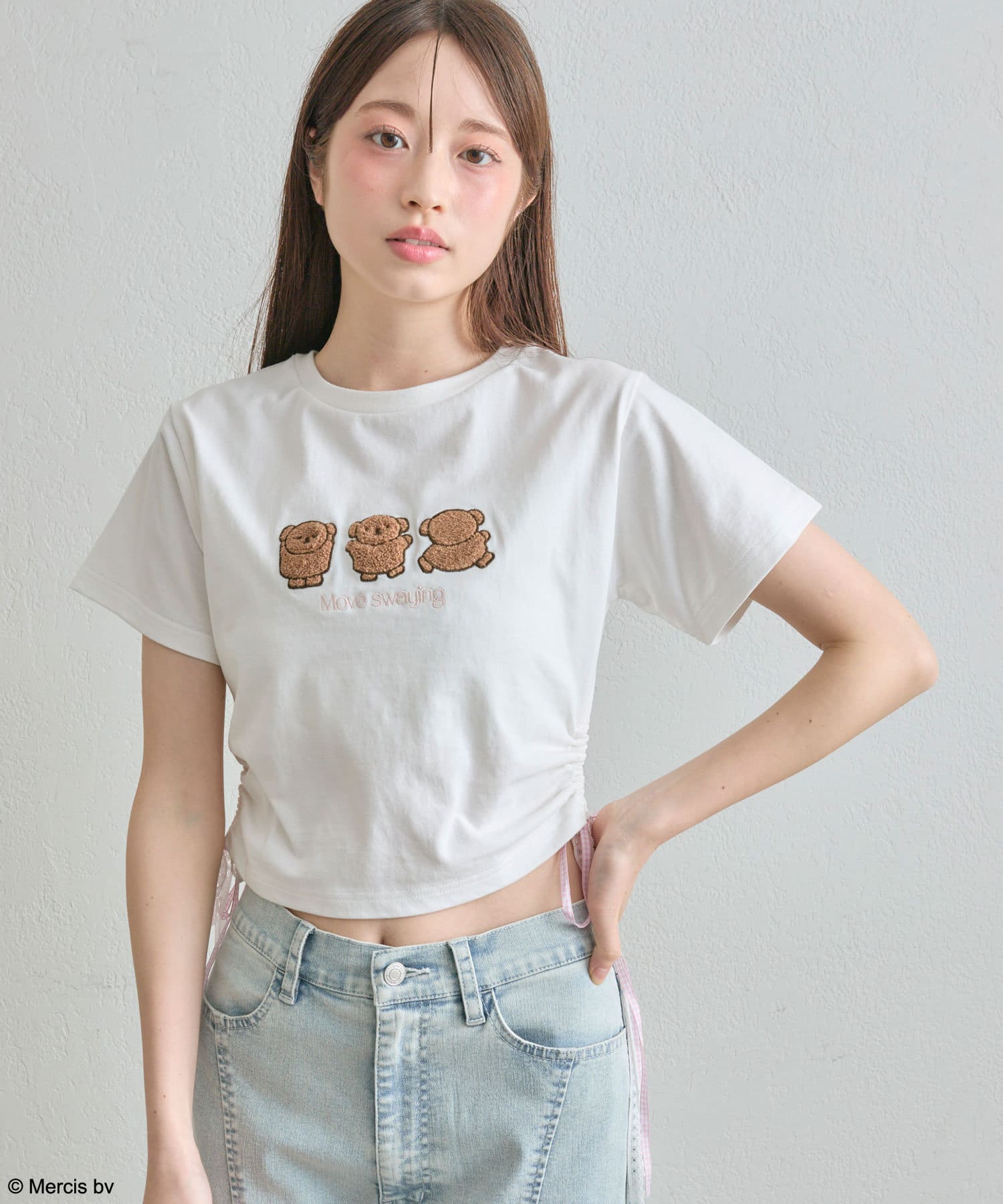 ・胸元にあるmiffyとborisのふわふわしたサガラ刺繍が、コーデのポイントになるデザイン。