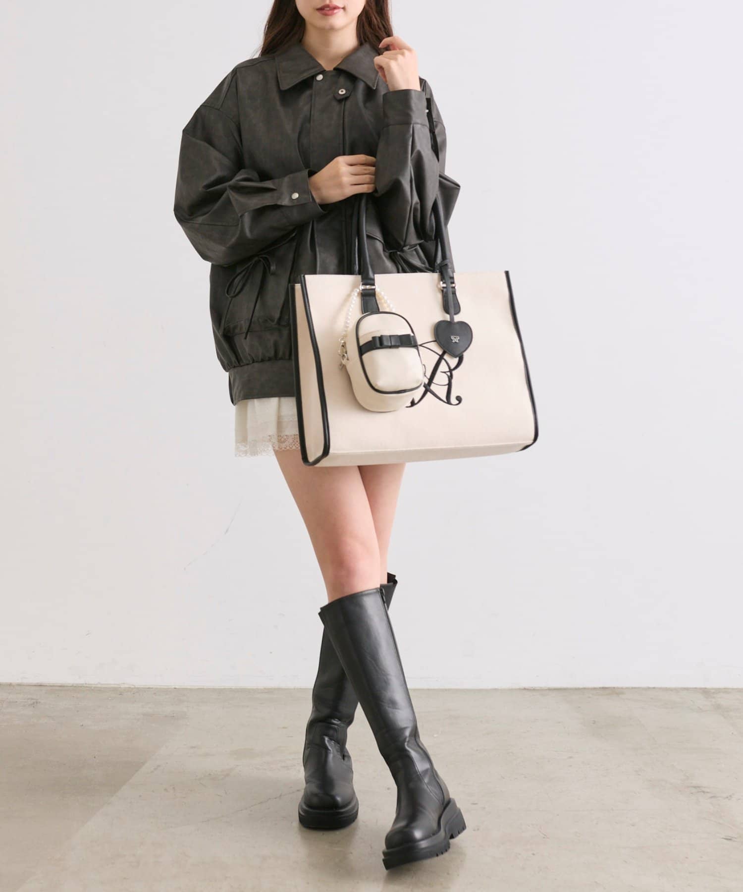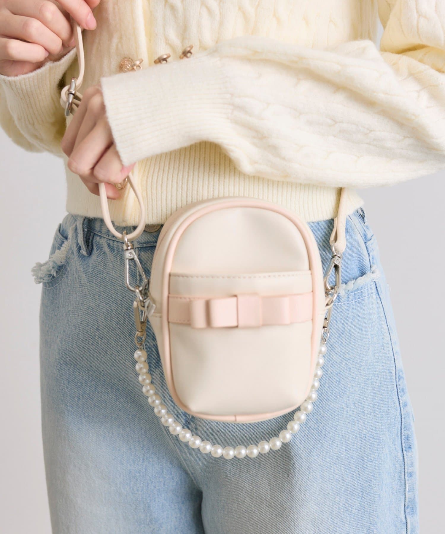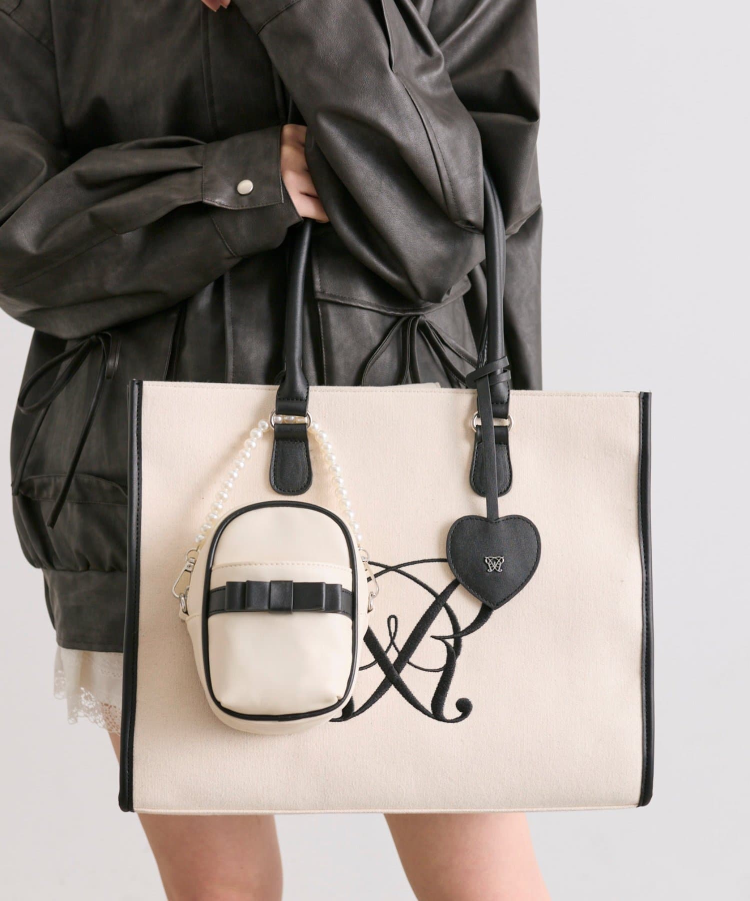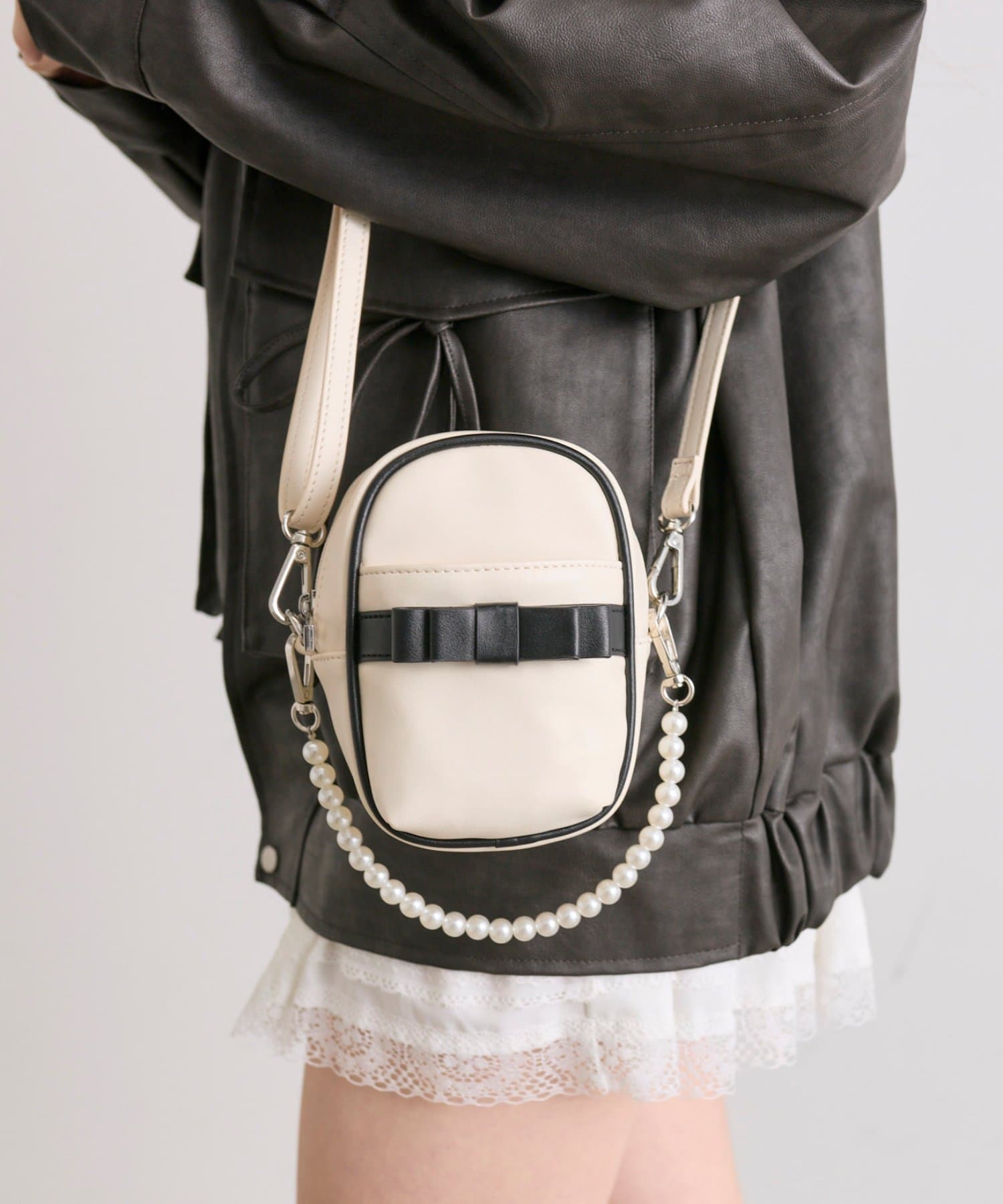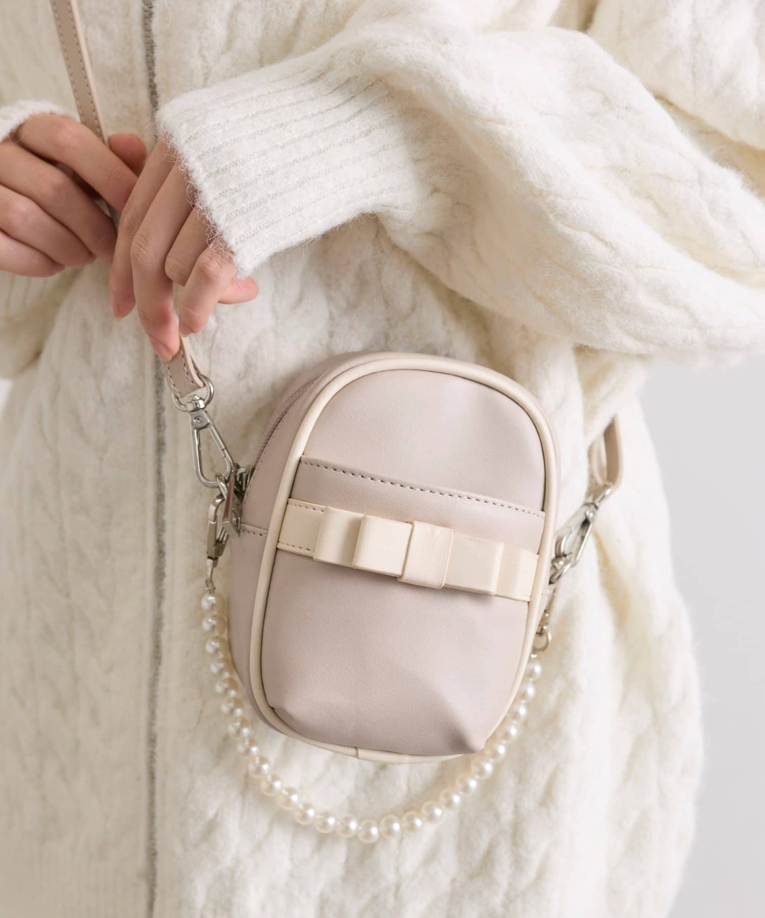 ・パールチェーンでトートバッグに付けたり、ショルダー紐でミニバッグとして持ち歩いたり、シーンによって使い分けができます。